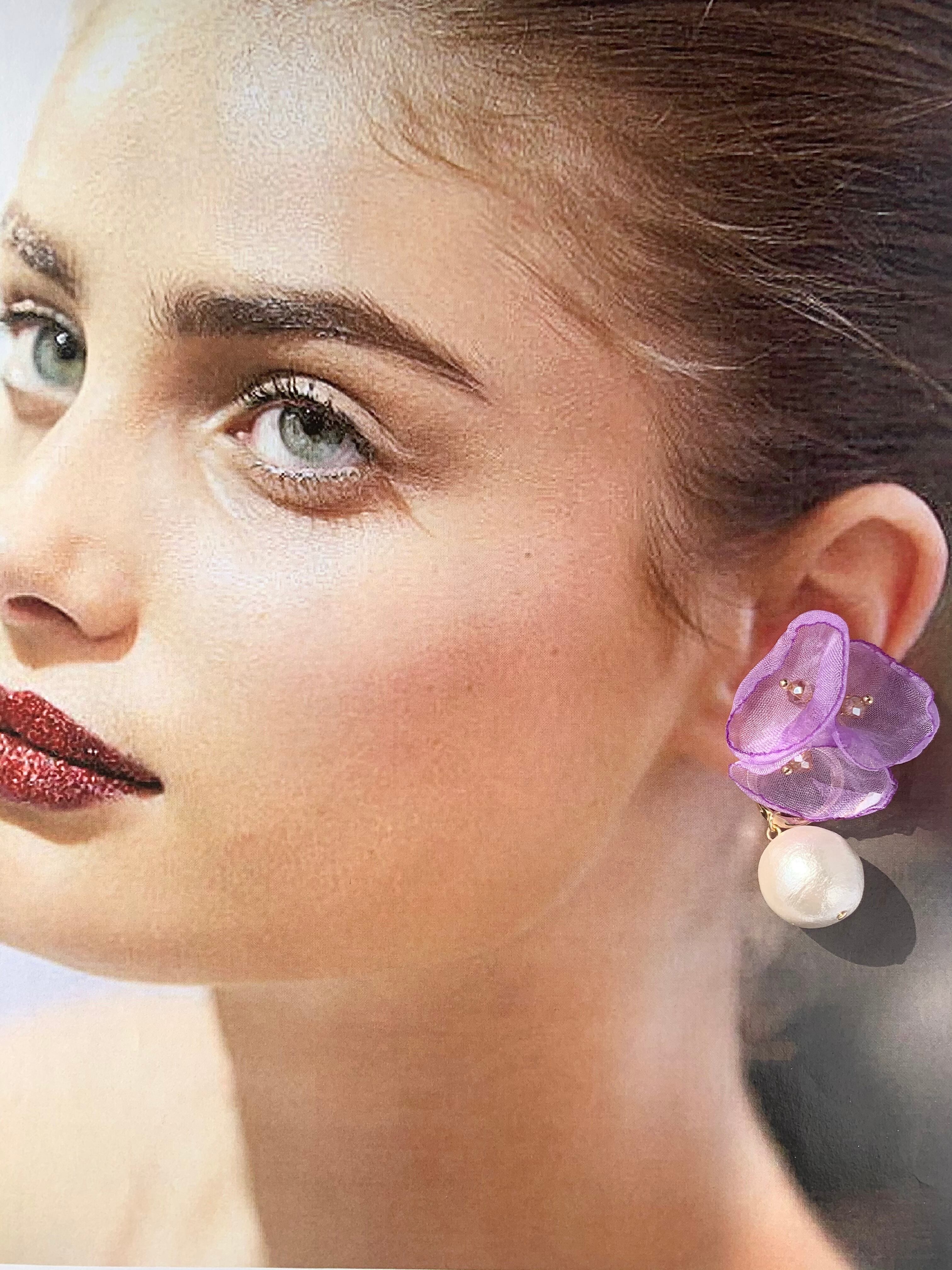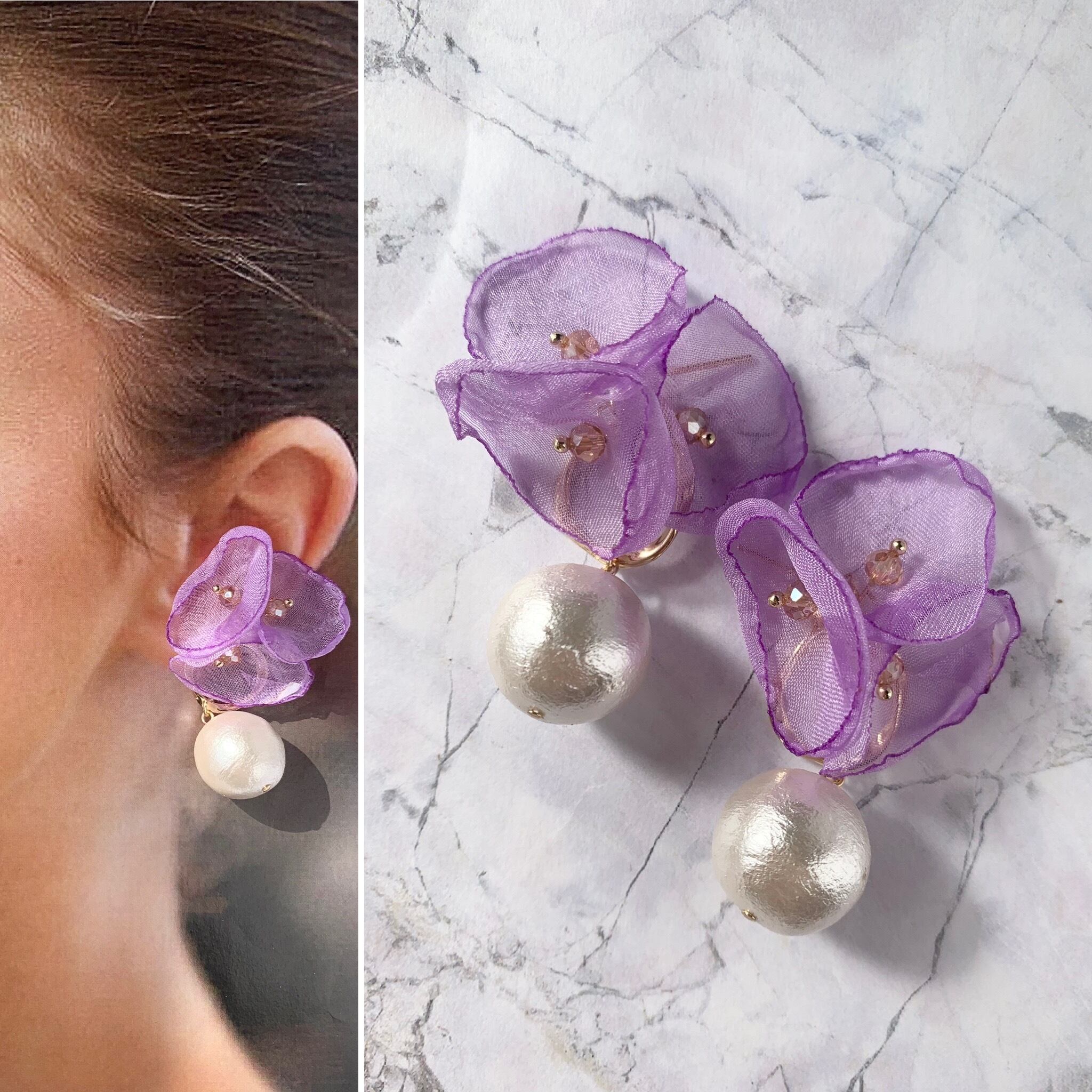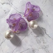 【1点物*】シフォンフラワー×高品質コットンパールピアス ラベンダー