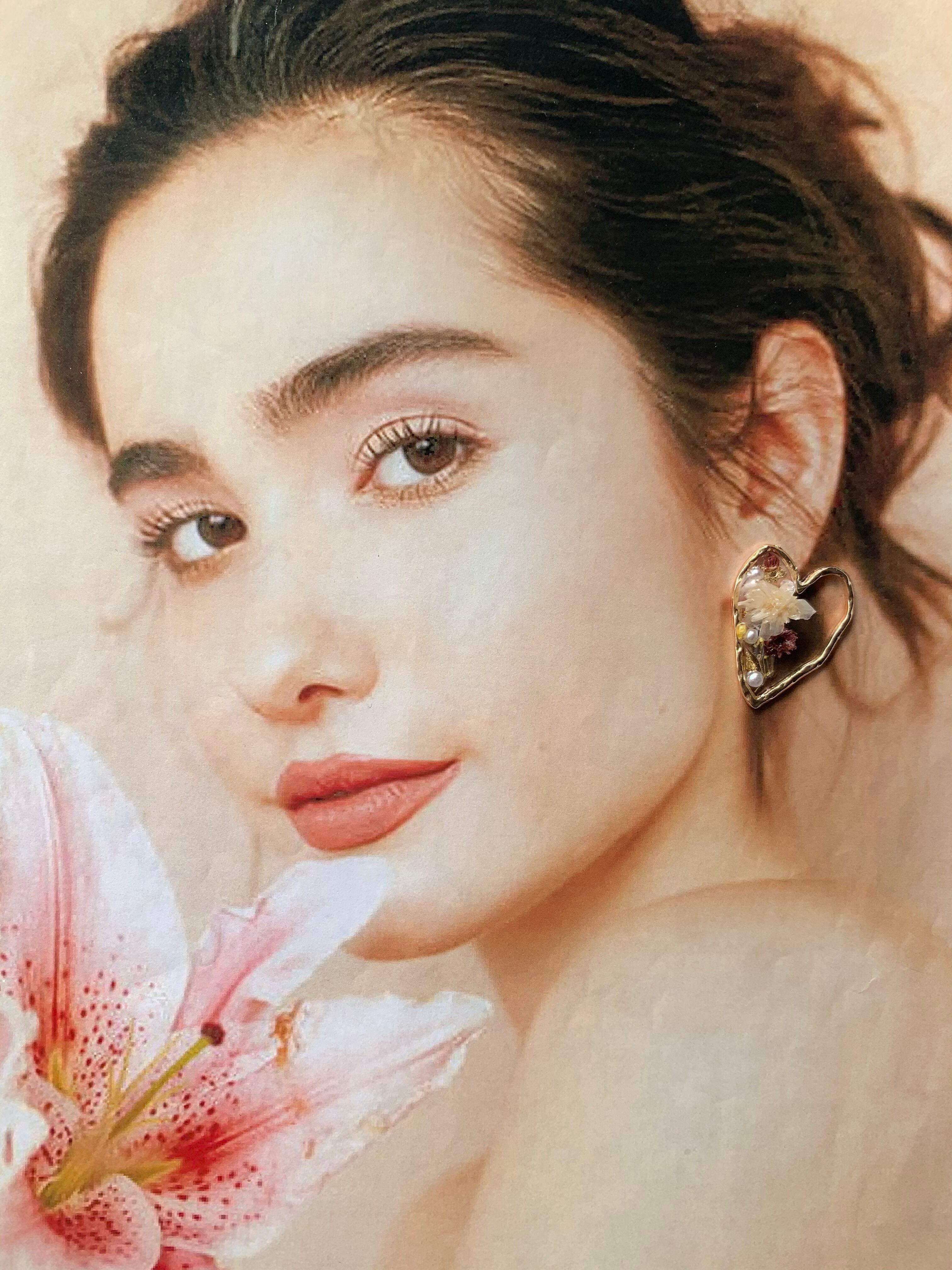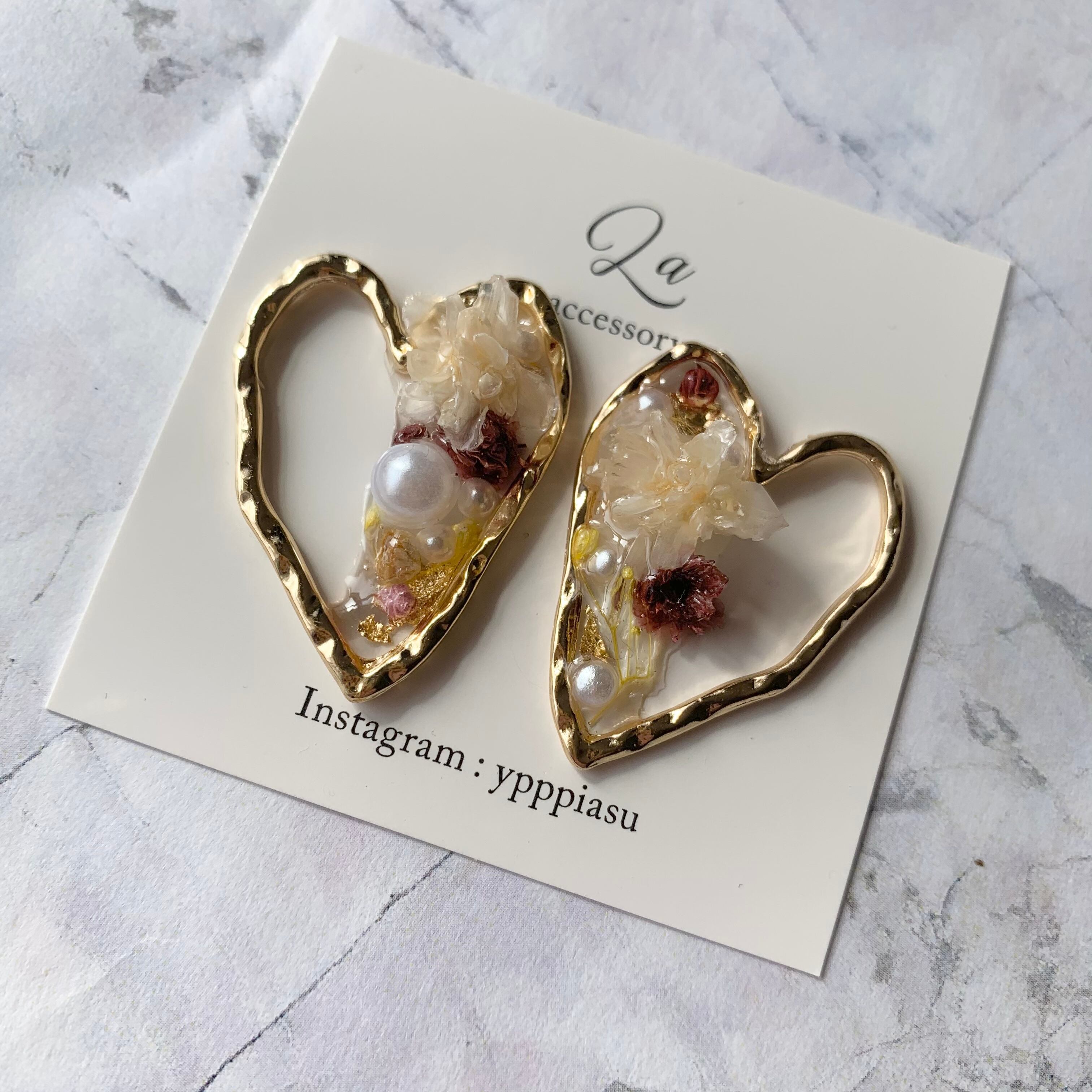 ドライフラワーやパールを片側にしきつめました♡⃜︎