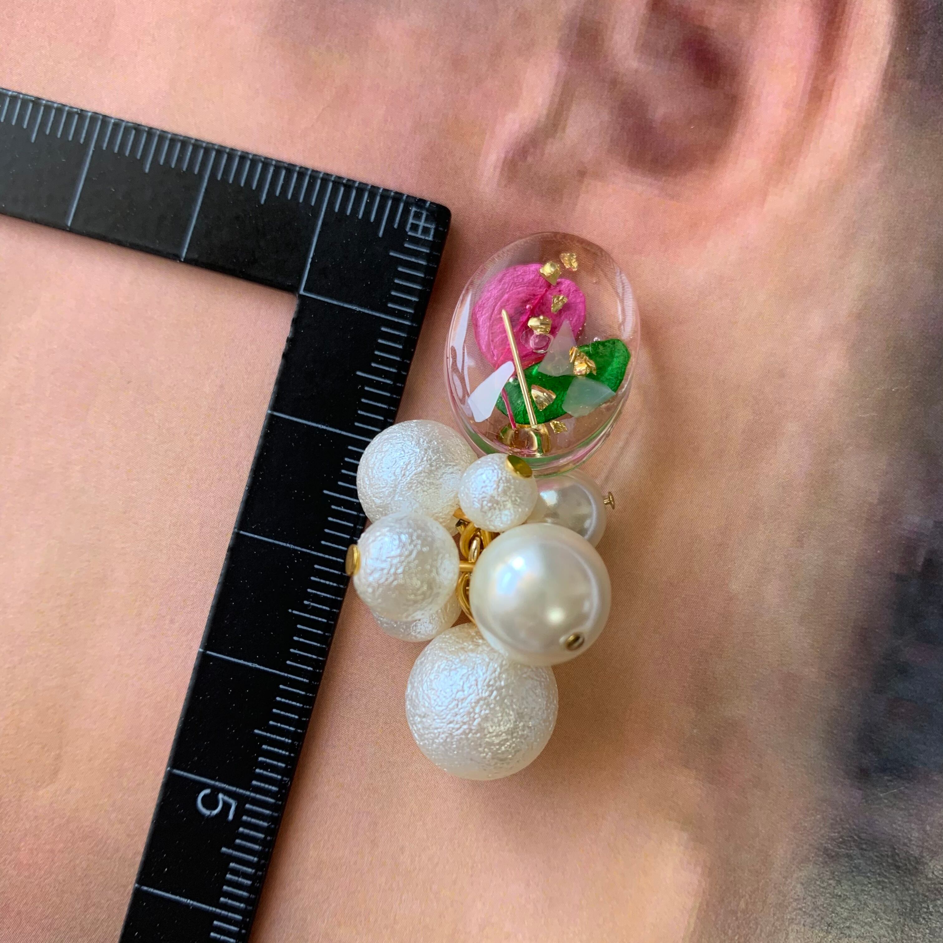 ピンクの花弁閉じ込めピアス A