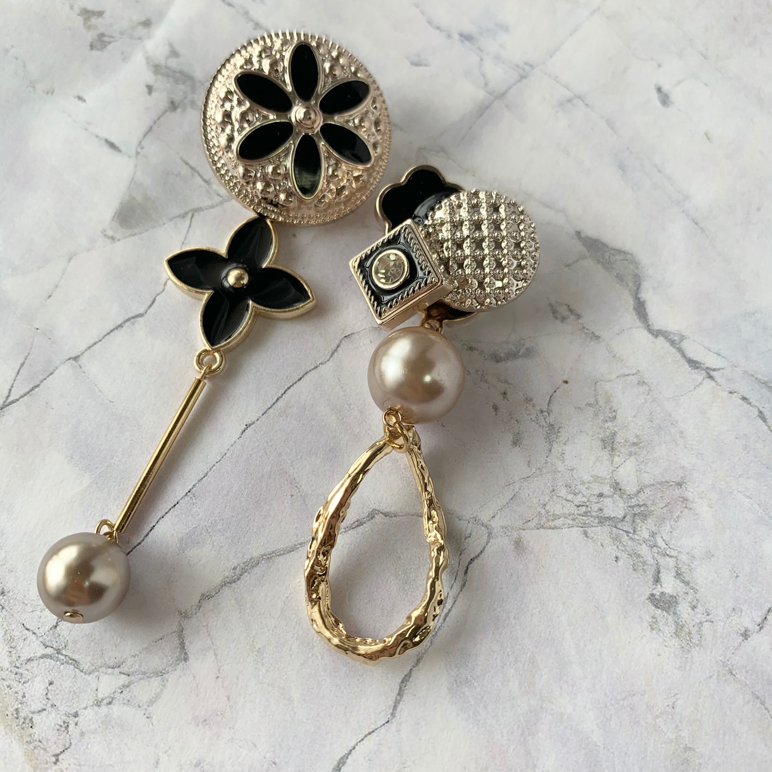 【ピアスのみ*】四つ葉チャームブラックアシメピアス 3
