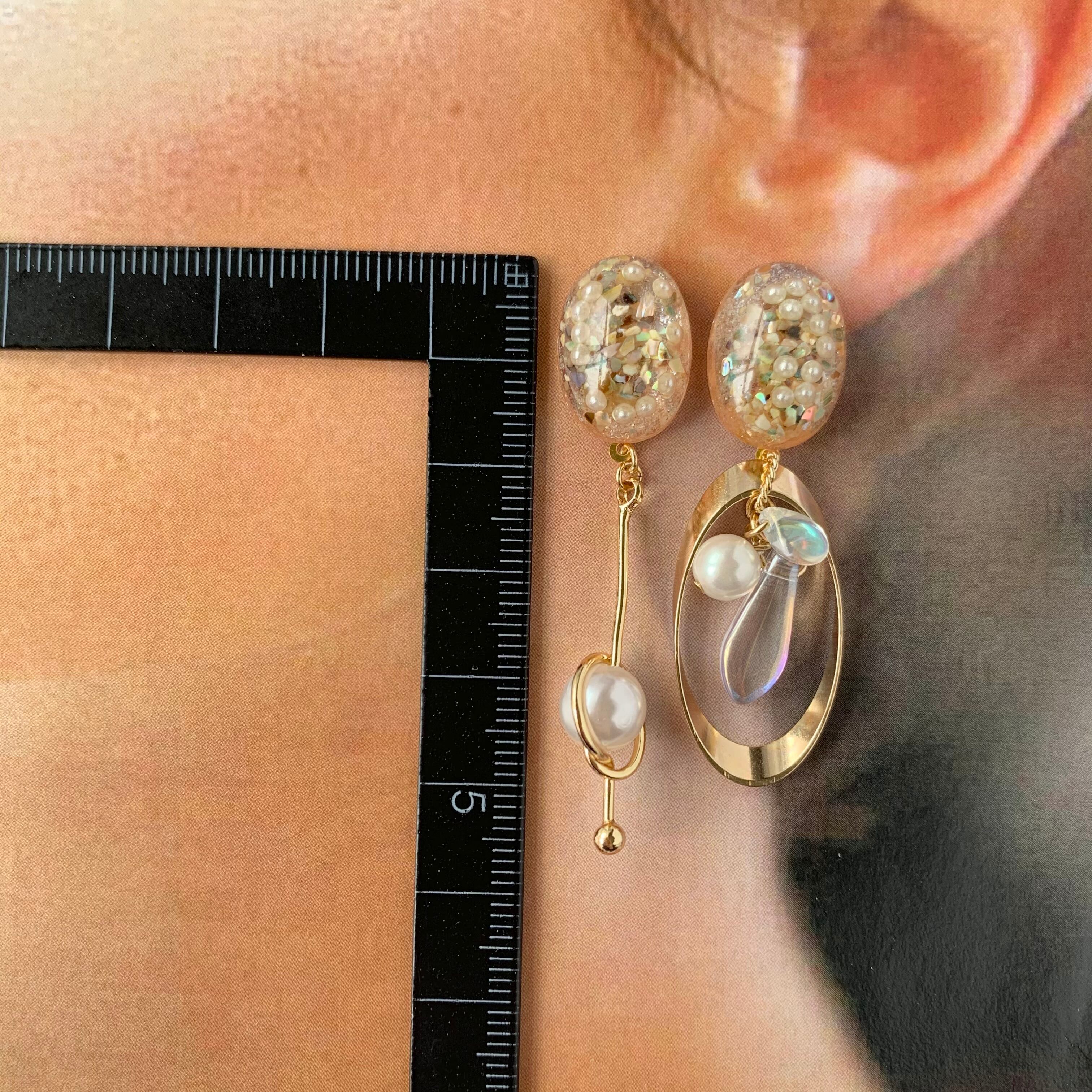 淡ピンクシェル入りカボションアシメピアス