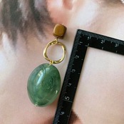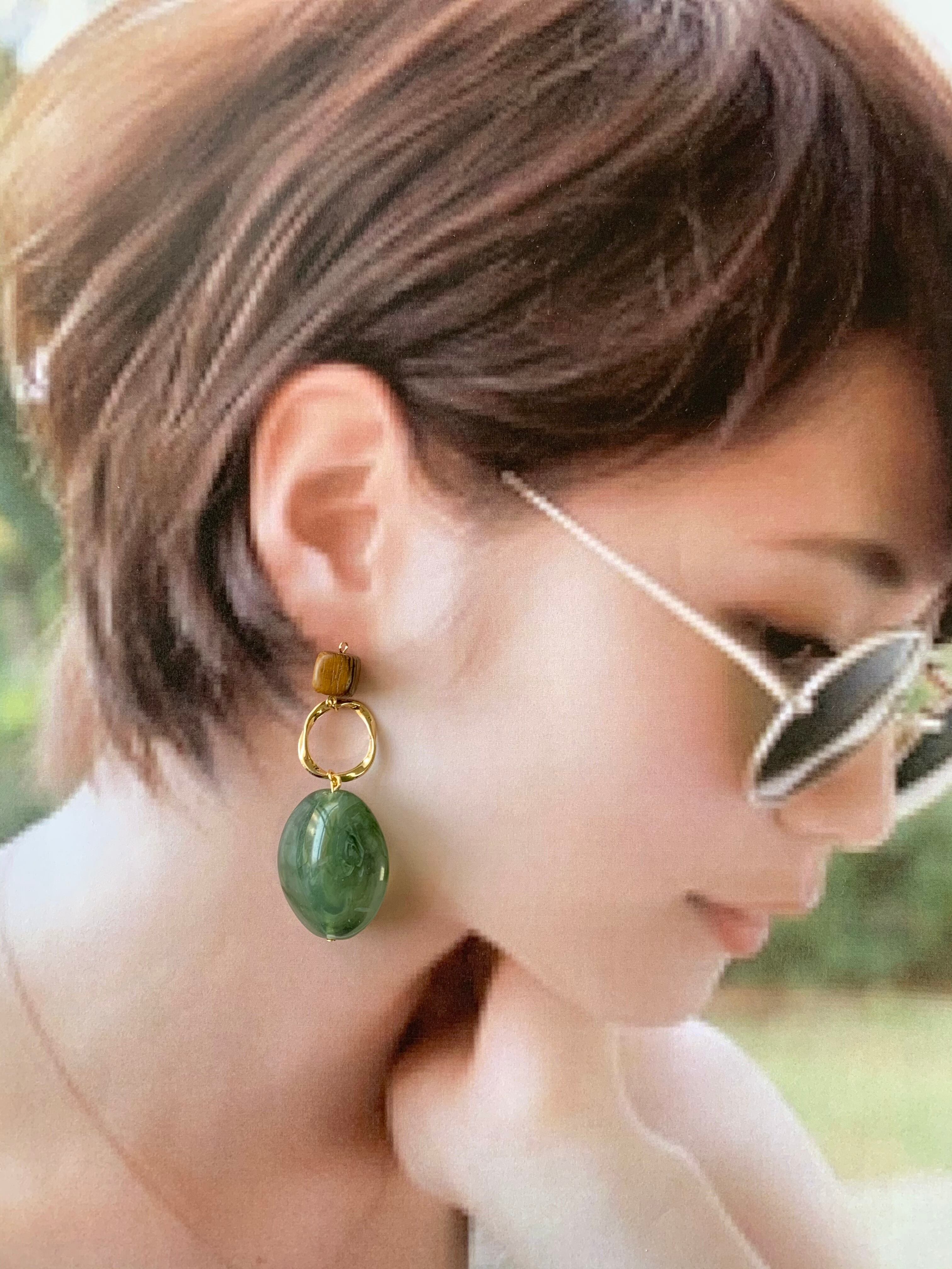 フェイクストーン×ウッドピアス グリーン