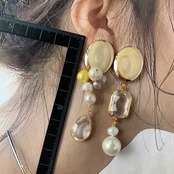 【1点物*】淡水パールアシメピアス クリームイエロー