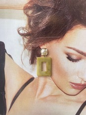 【1点物*】パール×中抜きスクエアマットピアス ピスタチオ