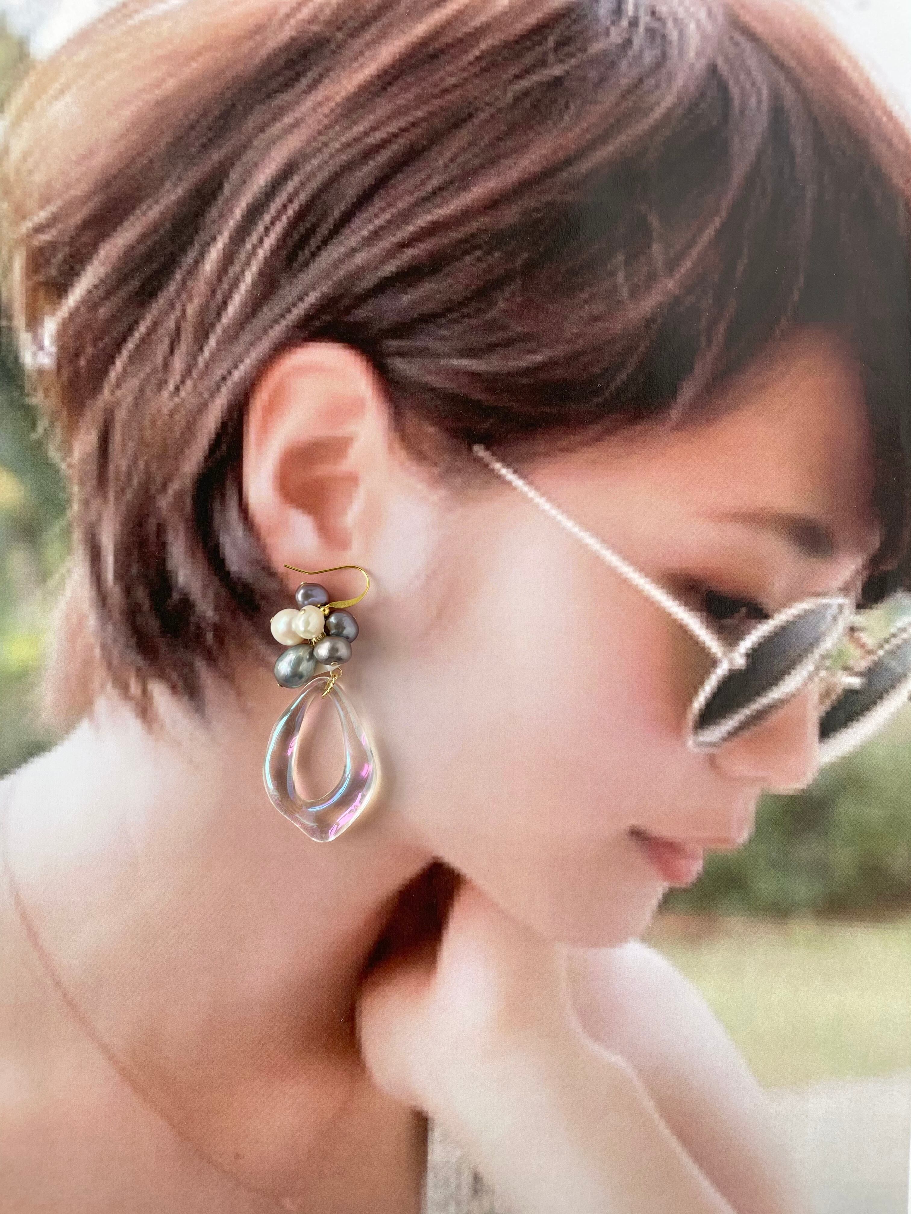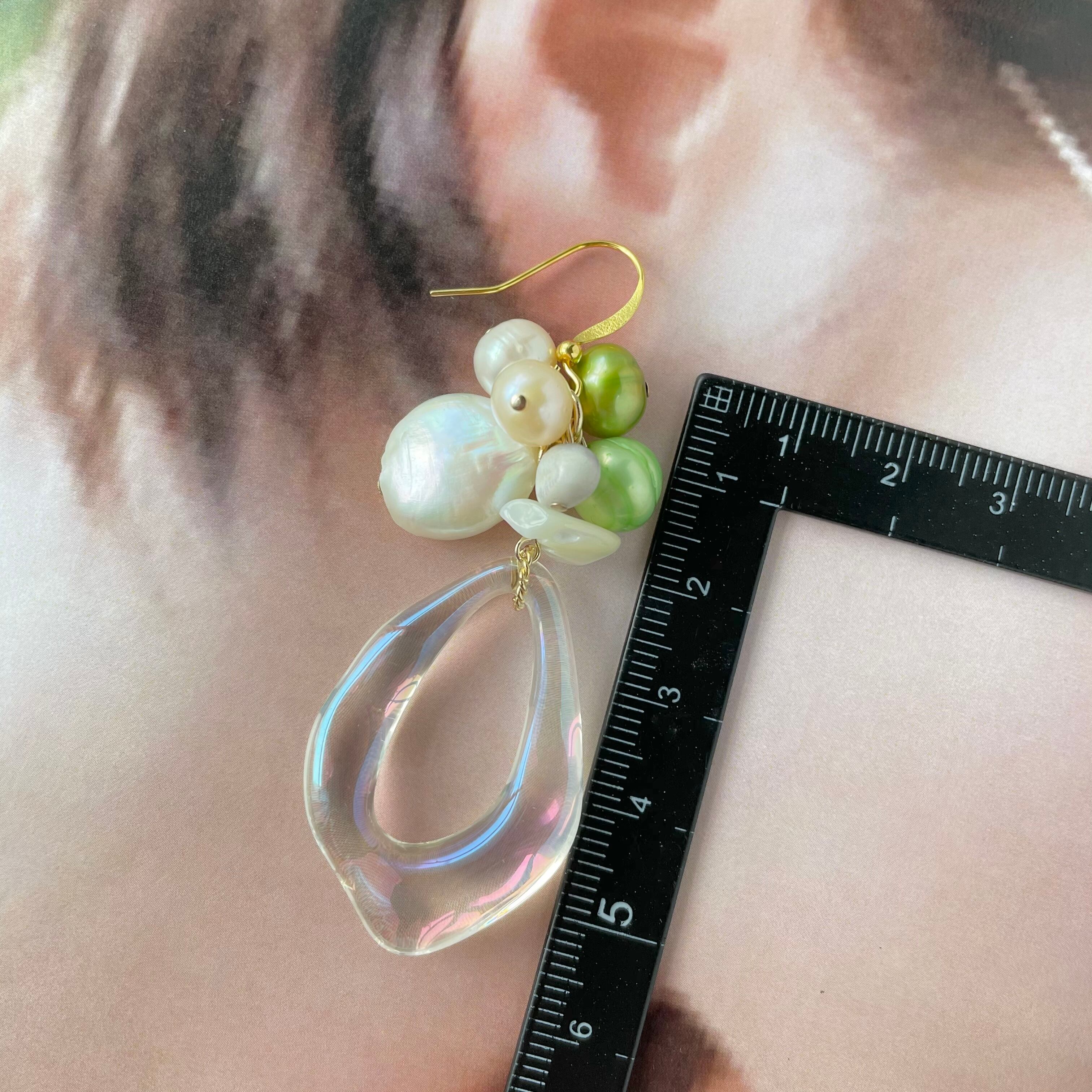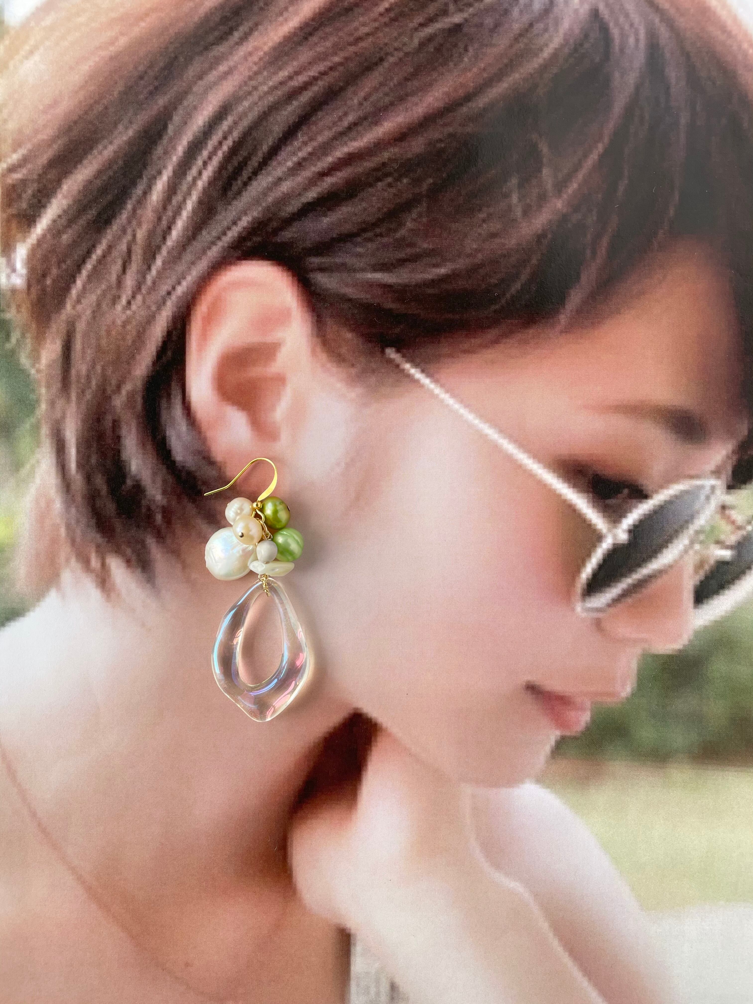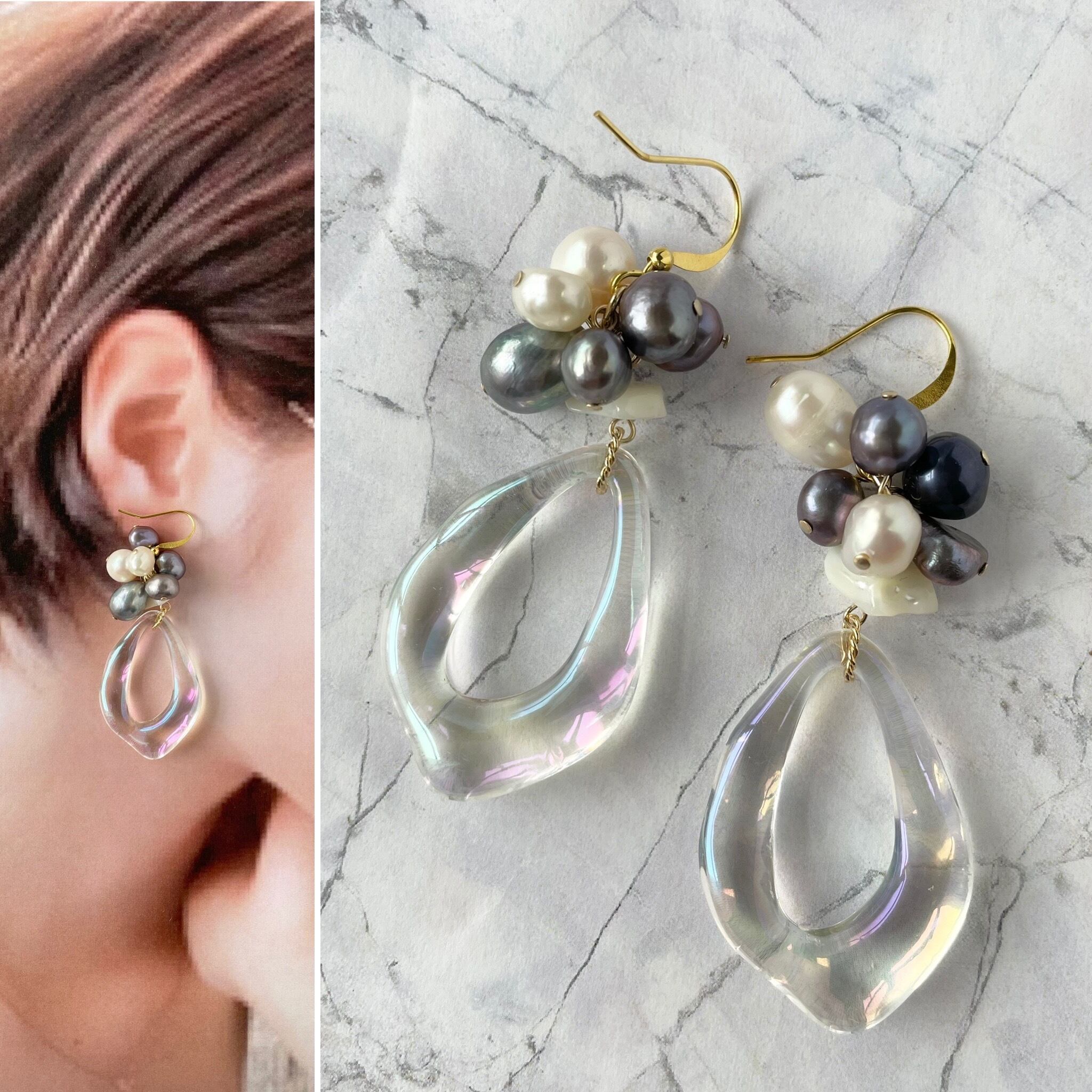 淡水パール×中抜きクリアピアス