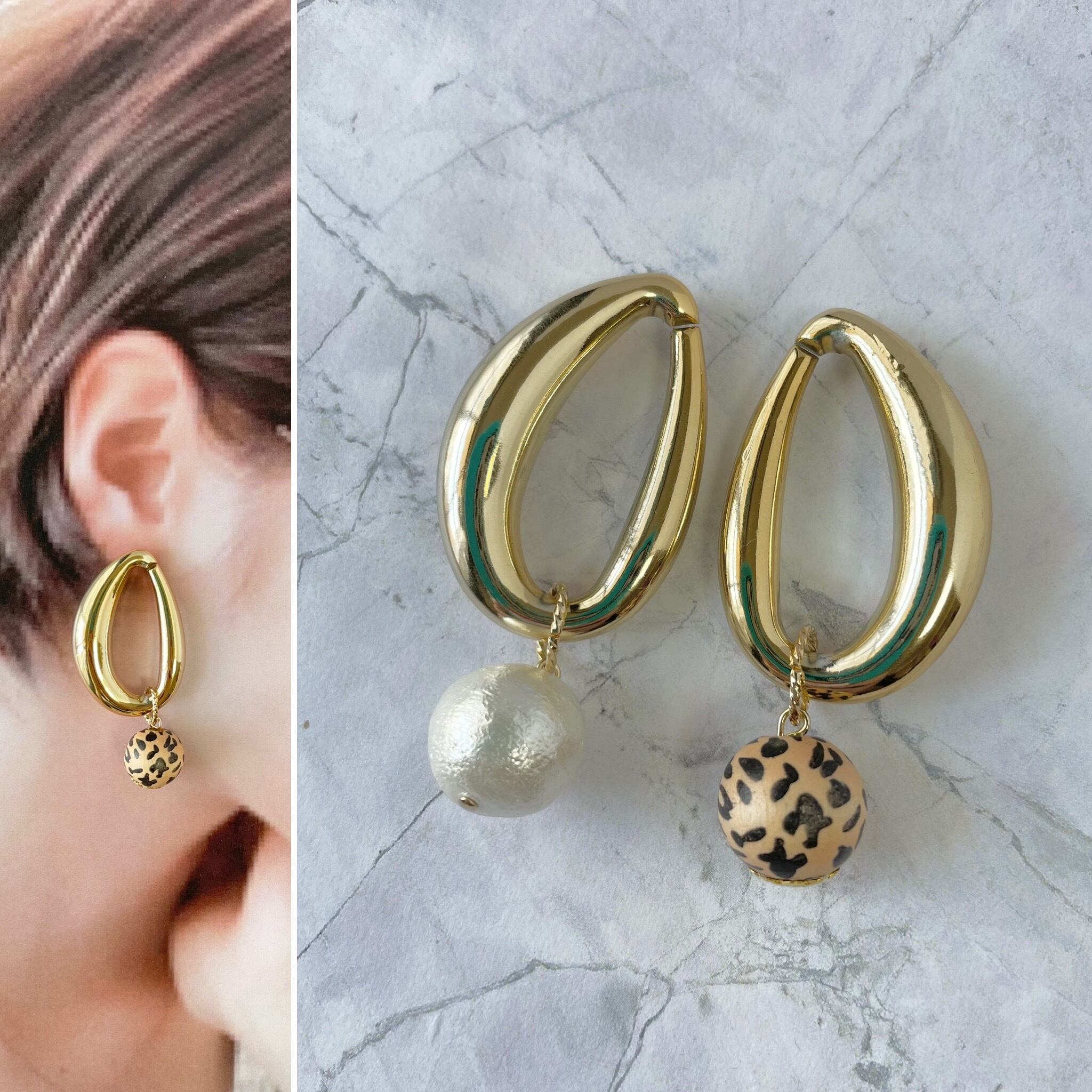 ぷっくりゴールド×レオパードピアス