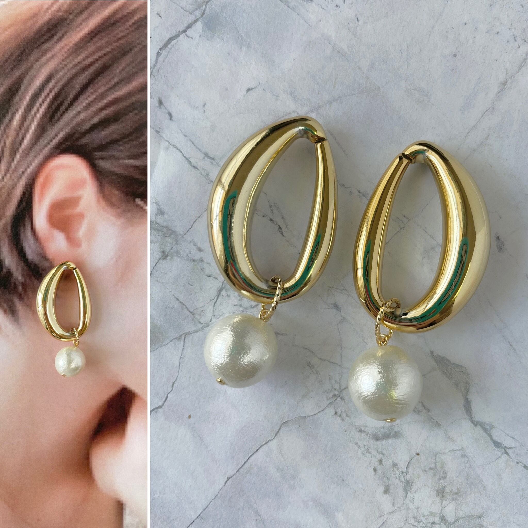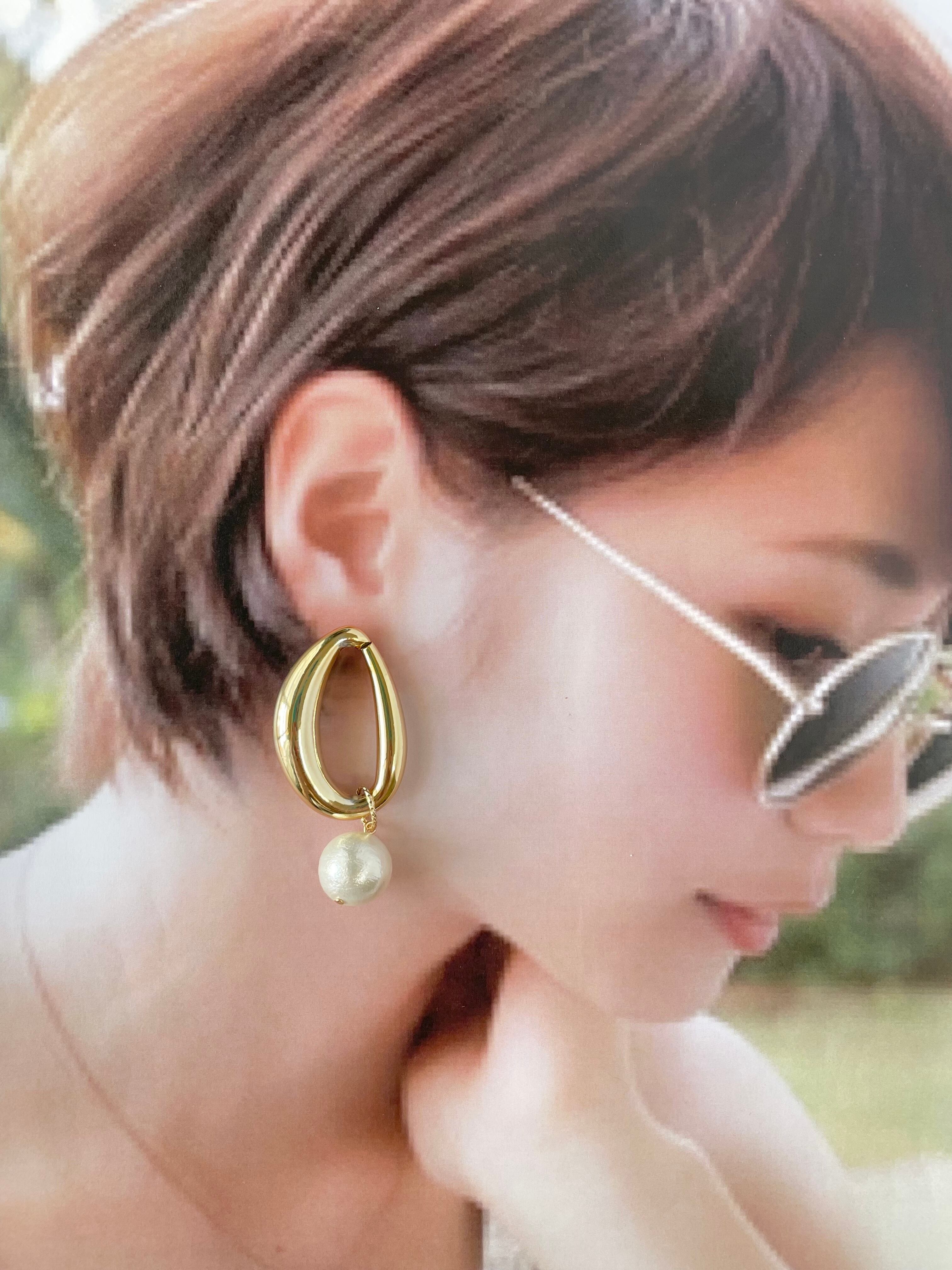 【1点物*】ぷっくりゴールド×コットンパールピアス