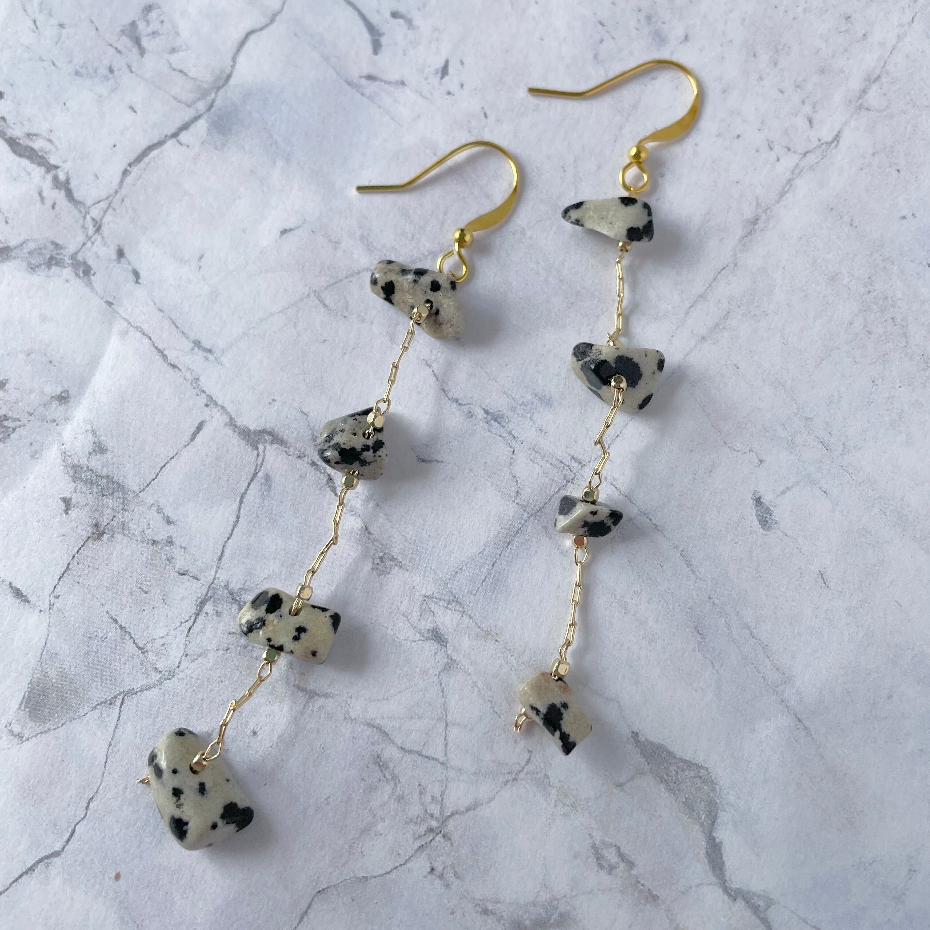 ダルメシアン天然石ゆらゆらピアス