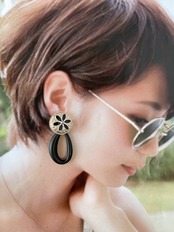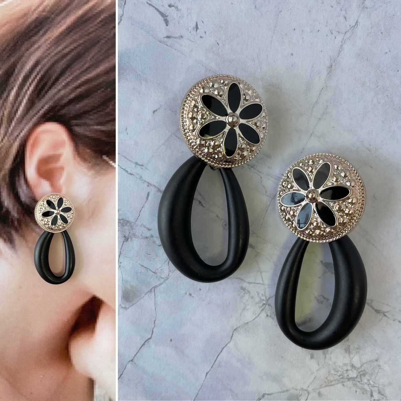 【ピアスのみ*】 アンティークボタン×マットブラックピアス A