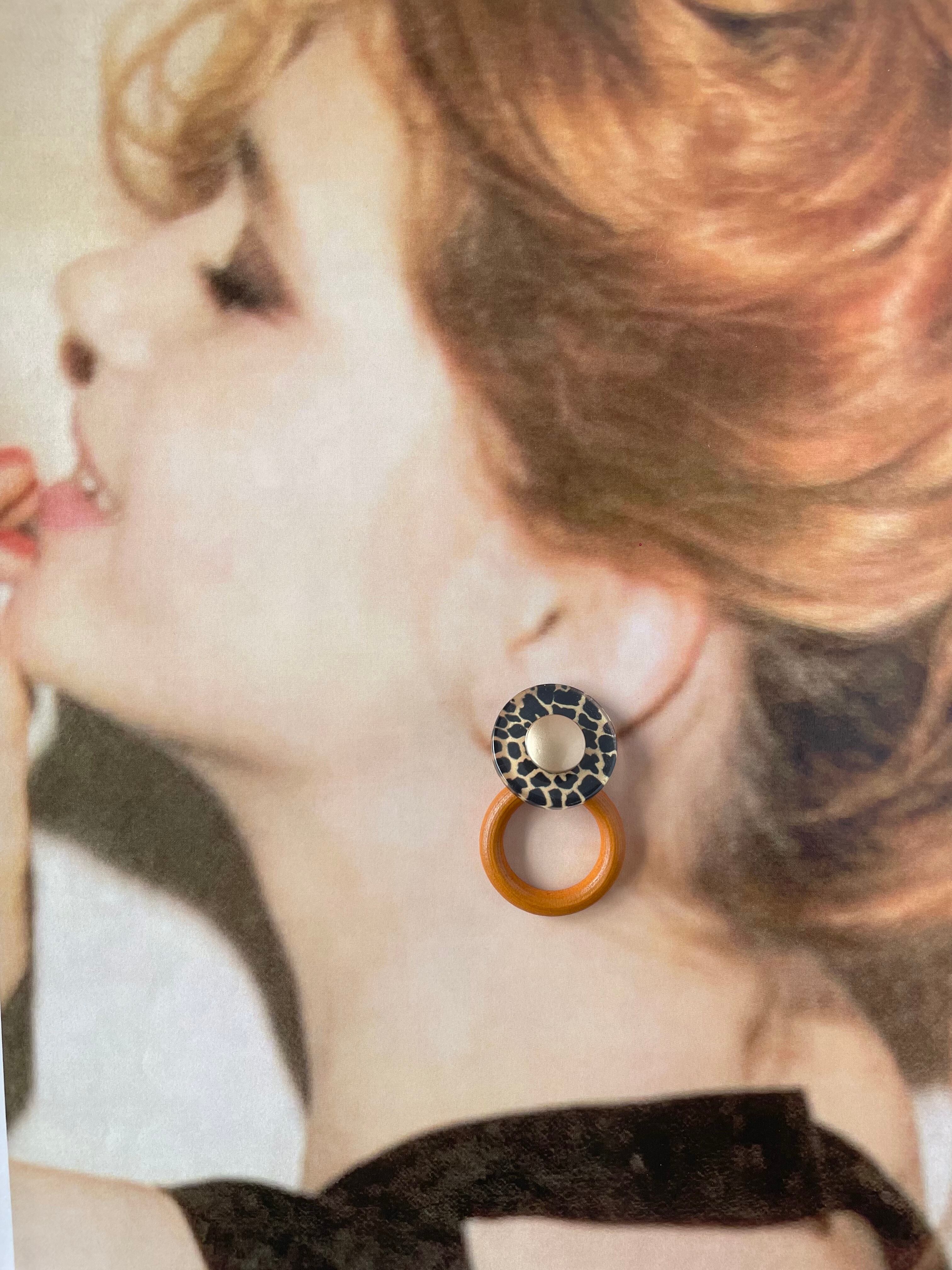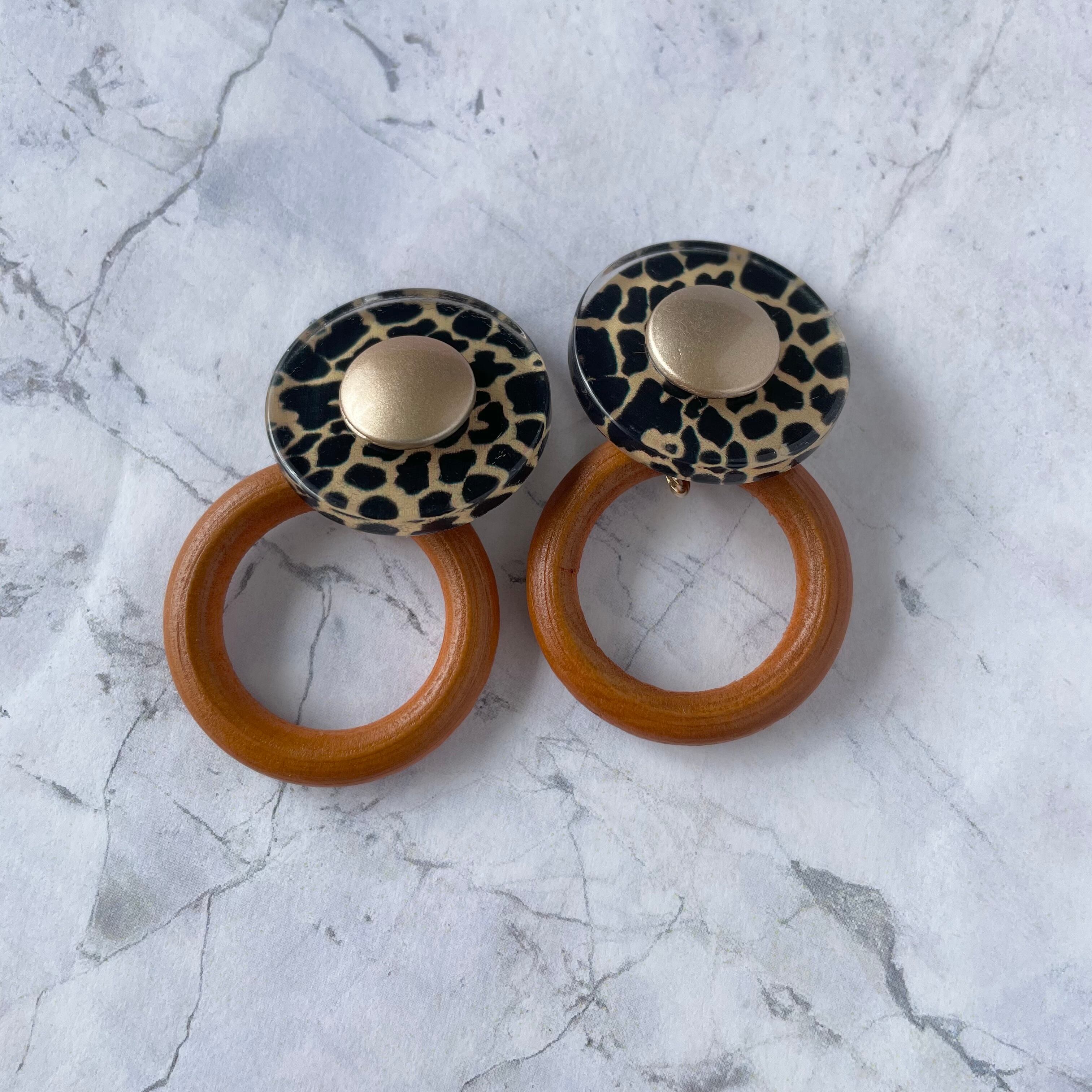 【ピアスのみ*】レオパードbigボタン×ウッドフープ