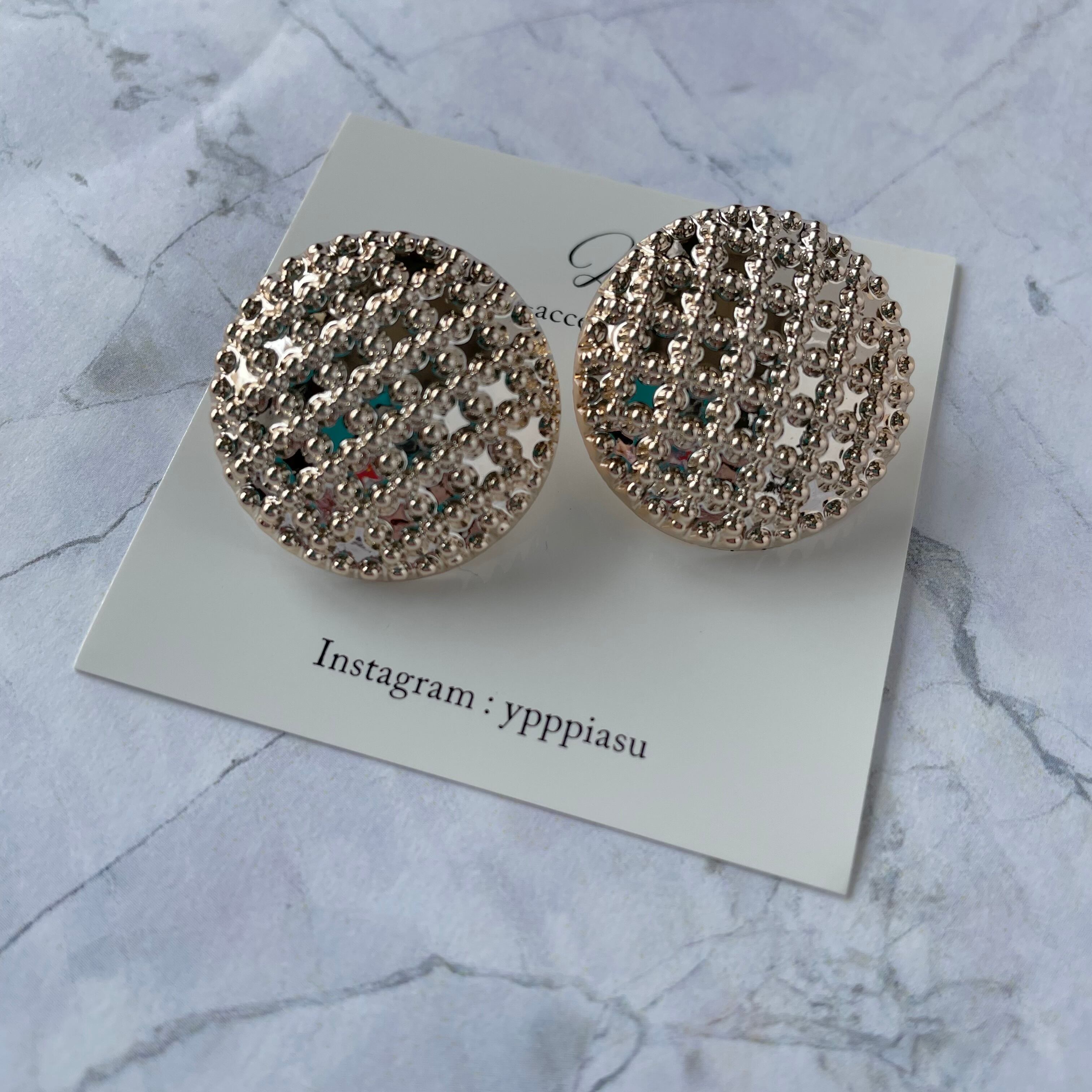 【ピアスのみ*】 bigアンティーク風きらきらボタンピアス