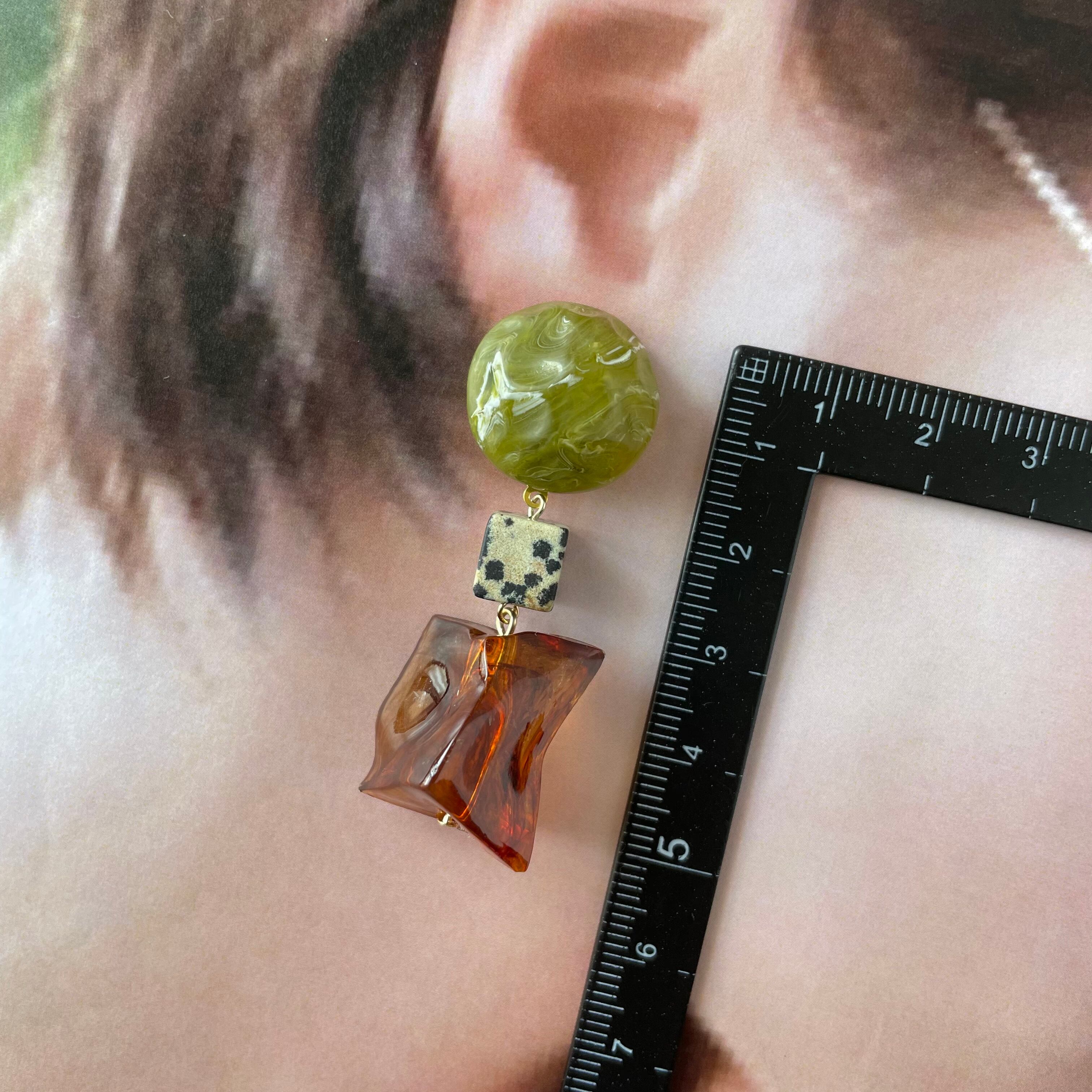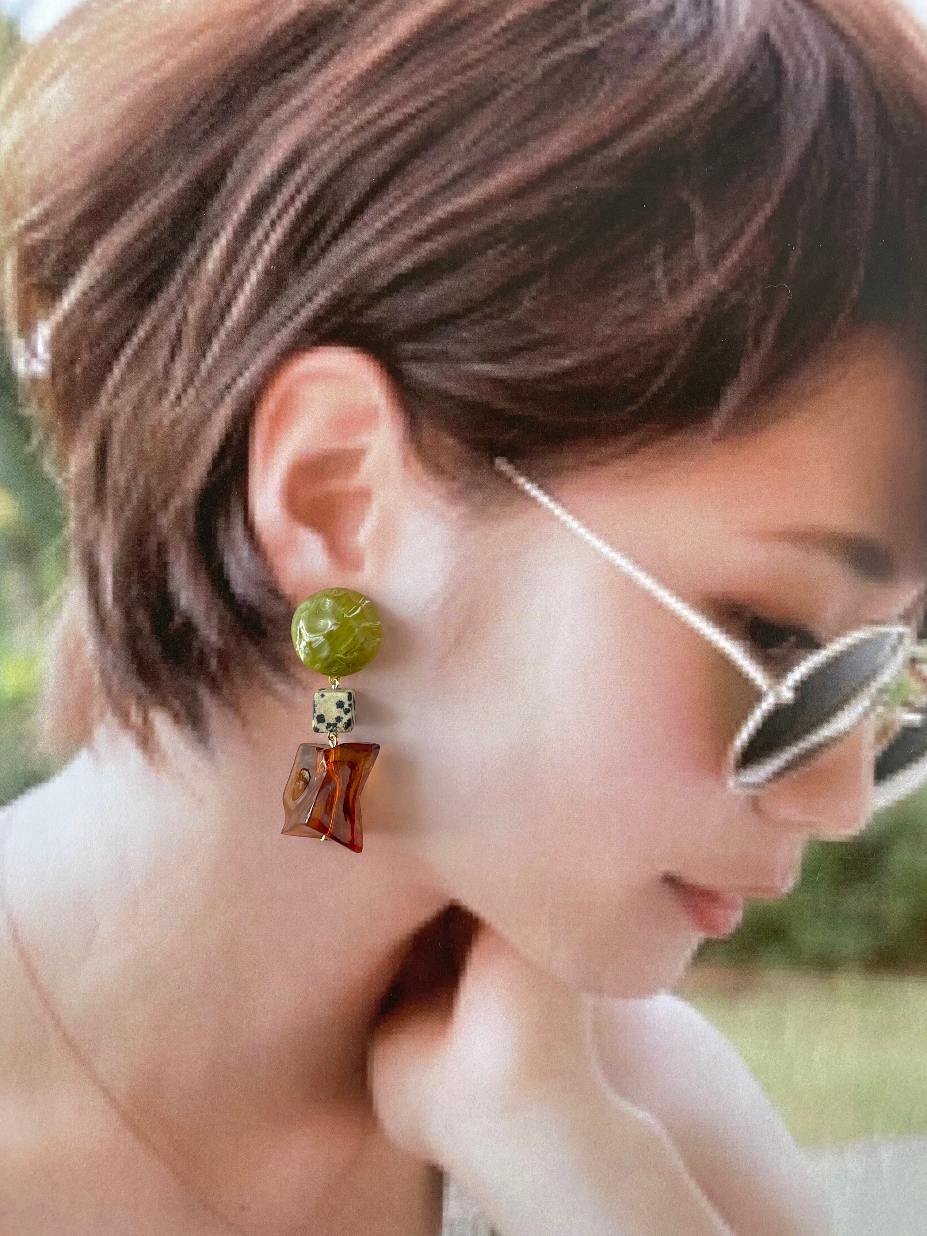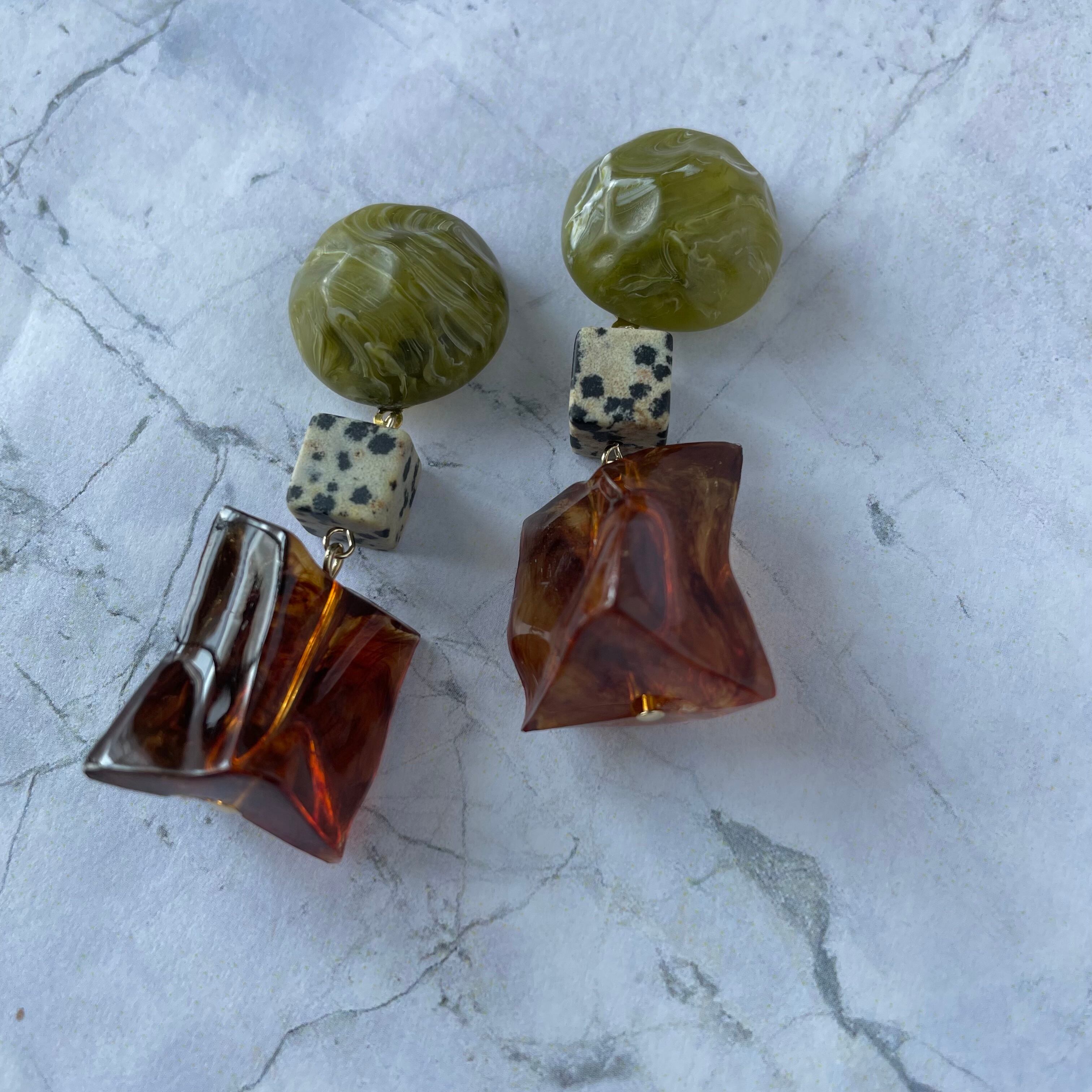 【1点物*】グリーンティー×ブラウンストーンピアス