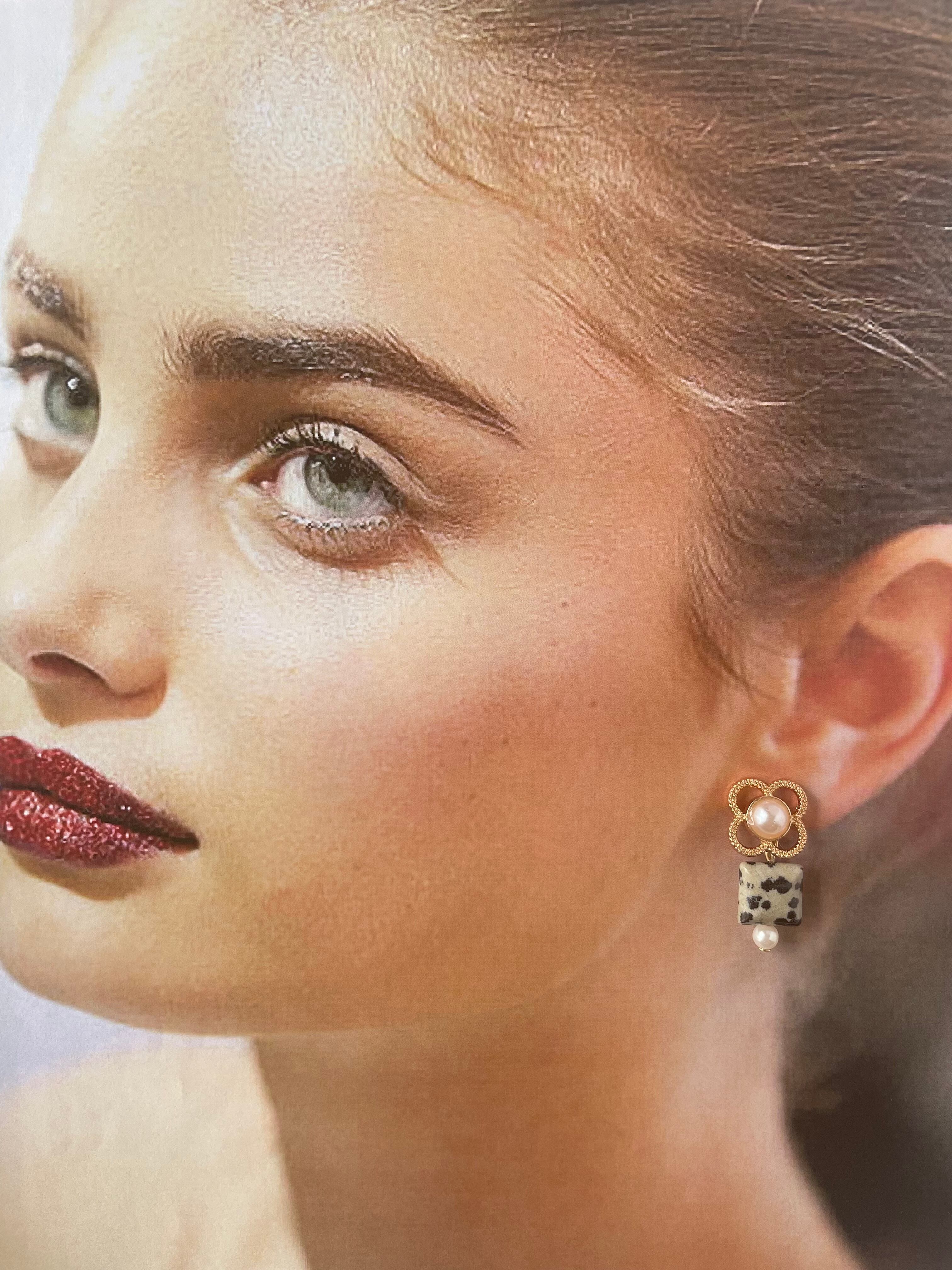 【1点物*】四つ葉フラワー×ダルメシアンちびピアス