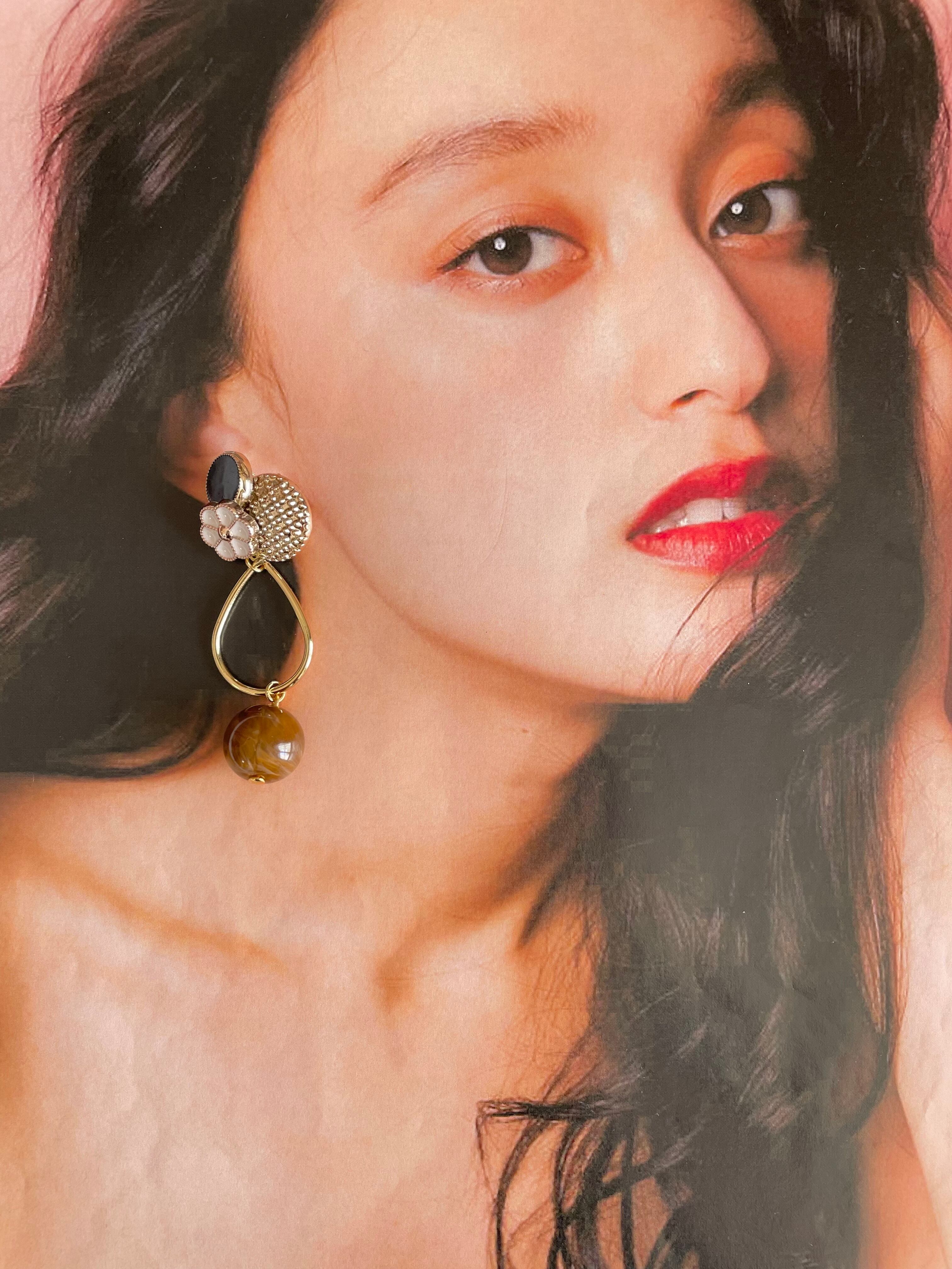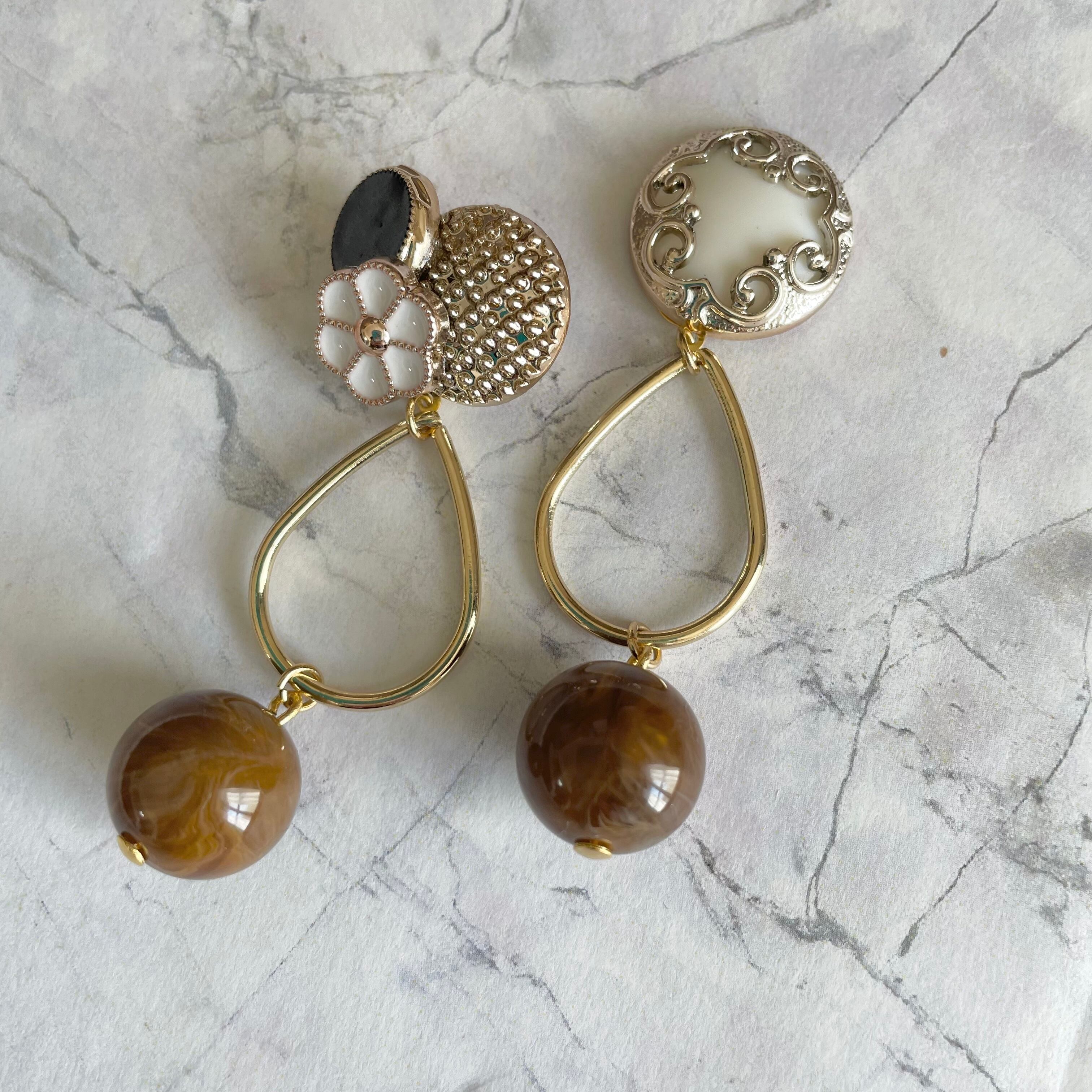 アンティーク風カボションの可愛さをブラウンボールで締めました♡