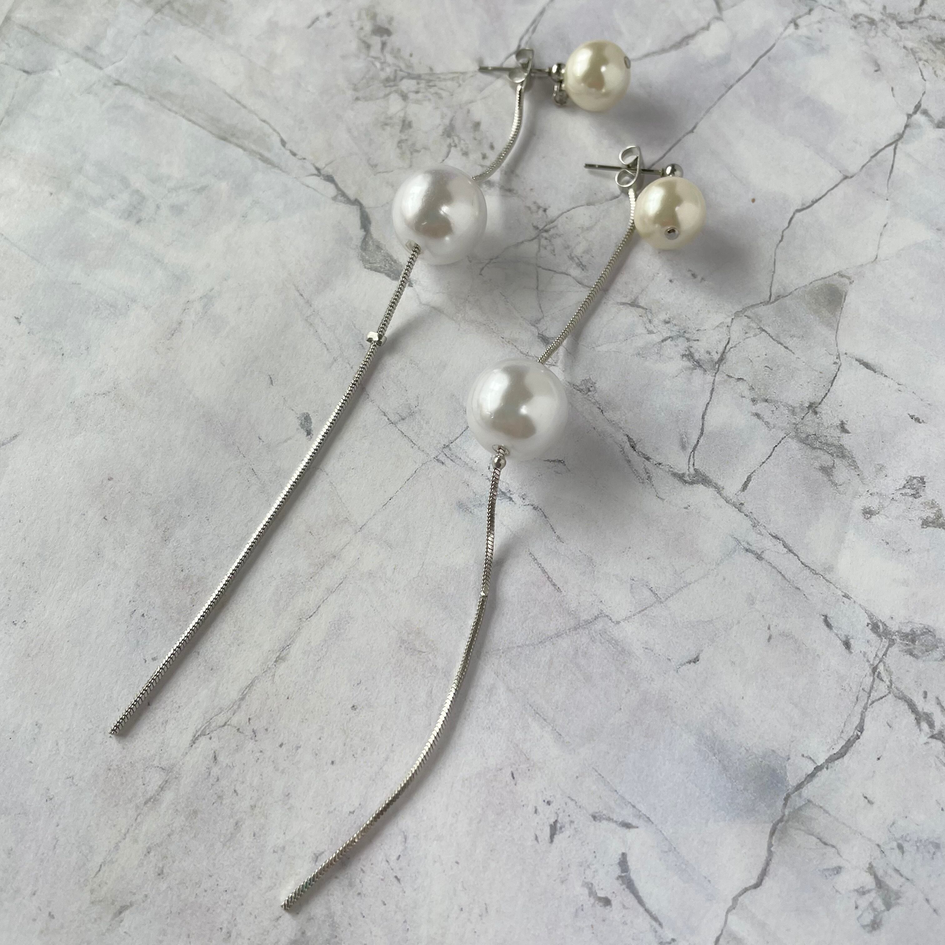 【シルバーピアス、樹脂フックのみ*】デザインキャッチパールピアス A