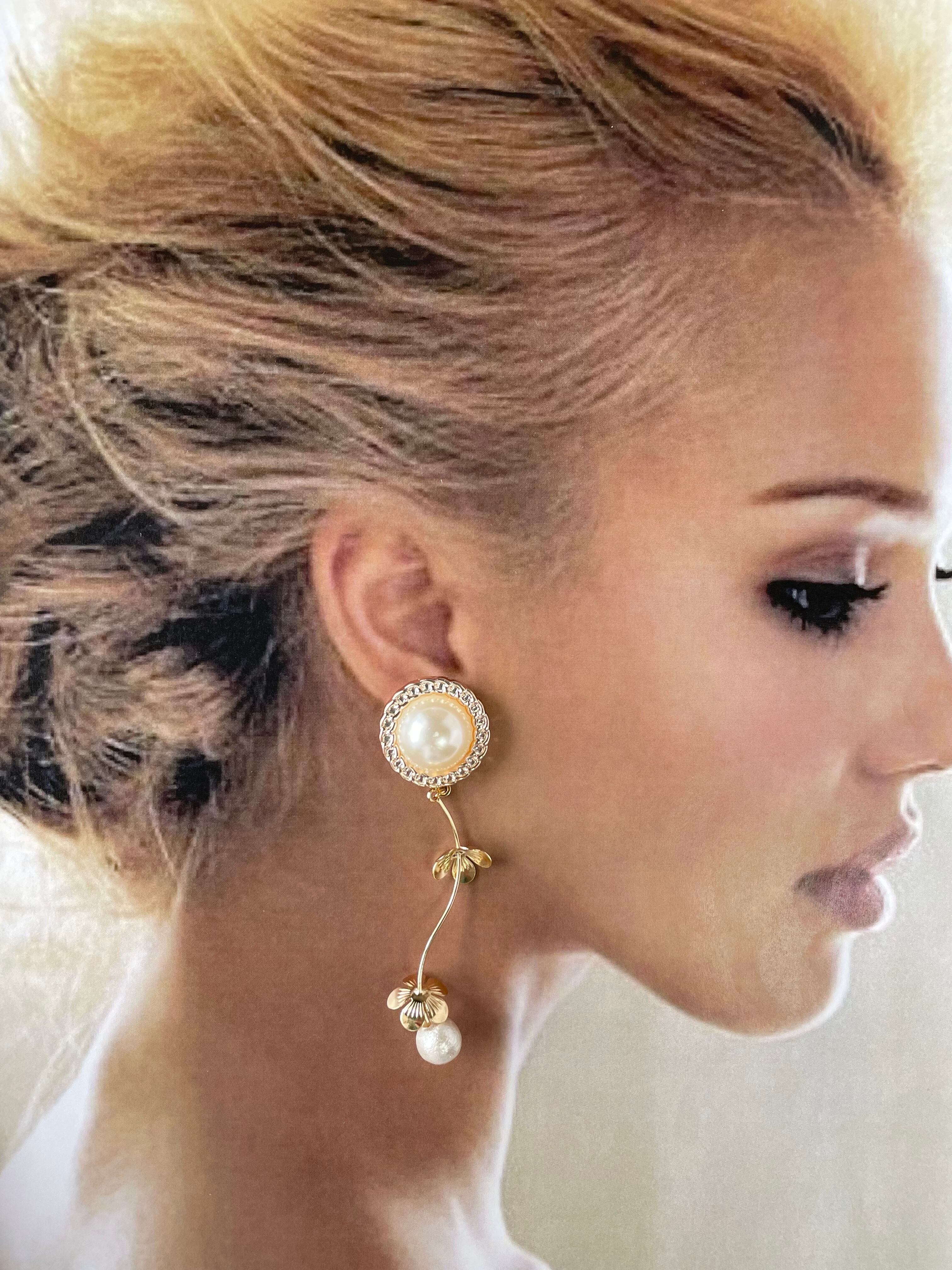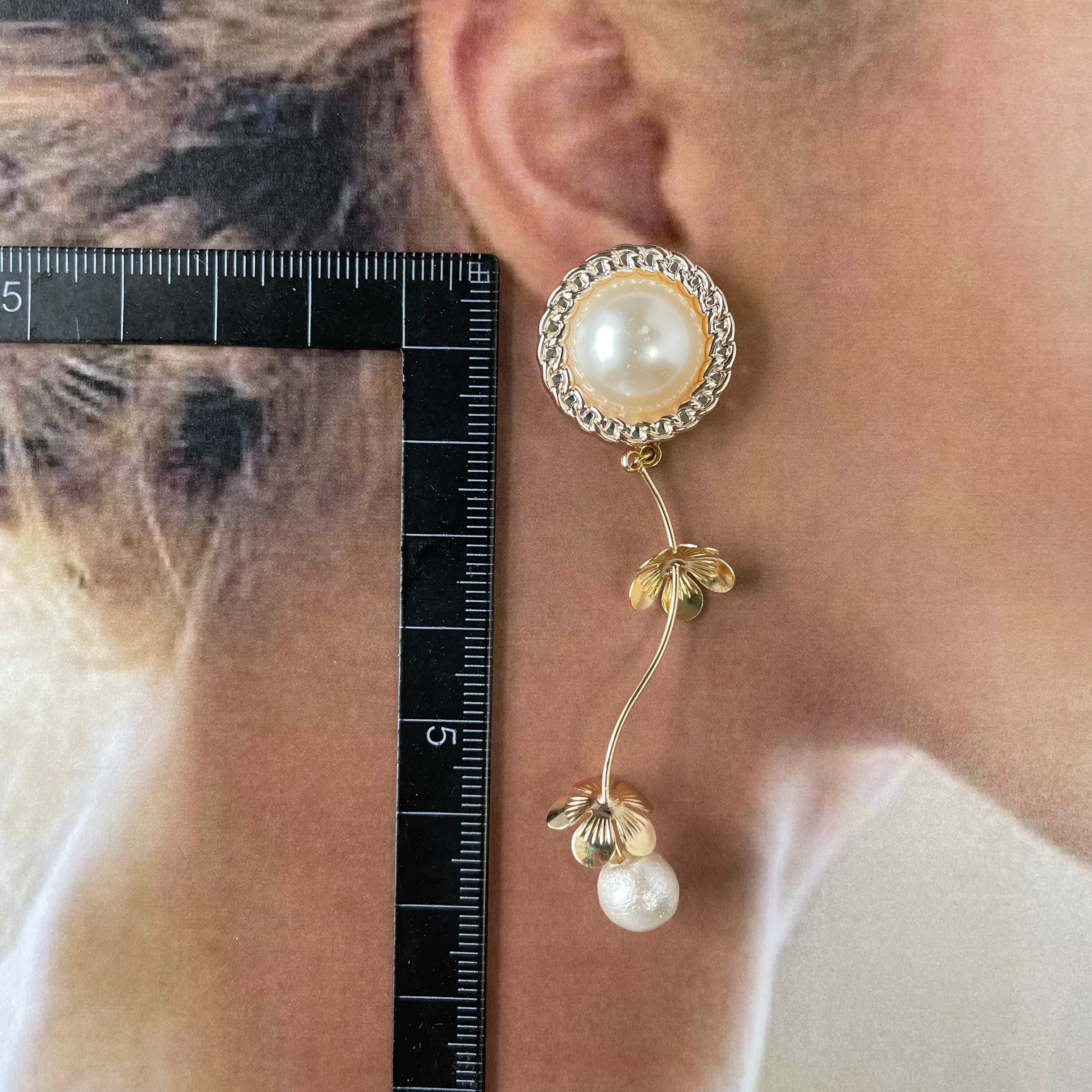 パールカボション×フラワーひねりピアス