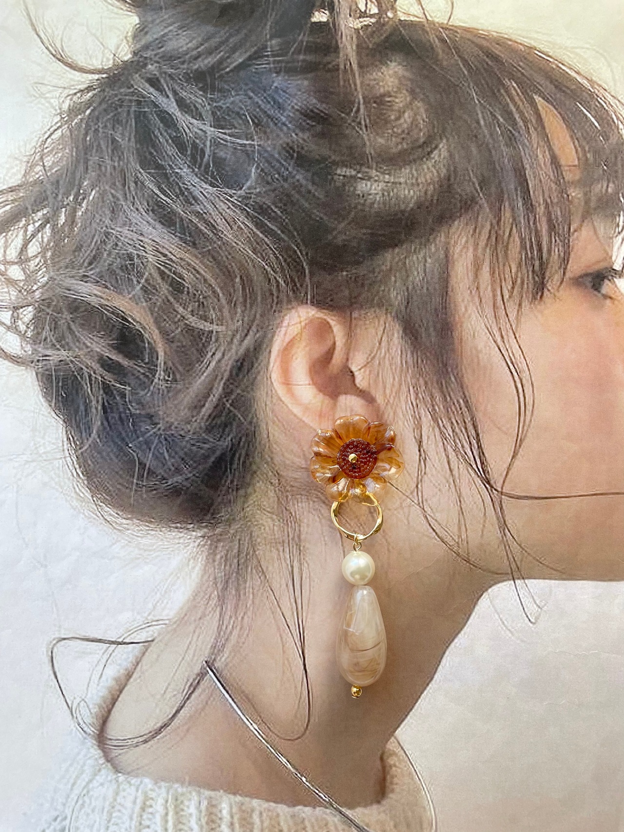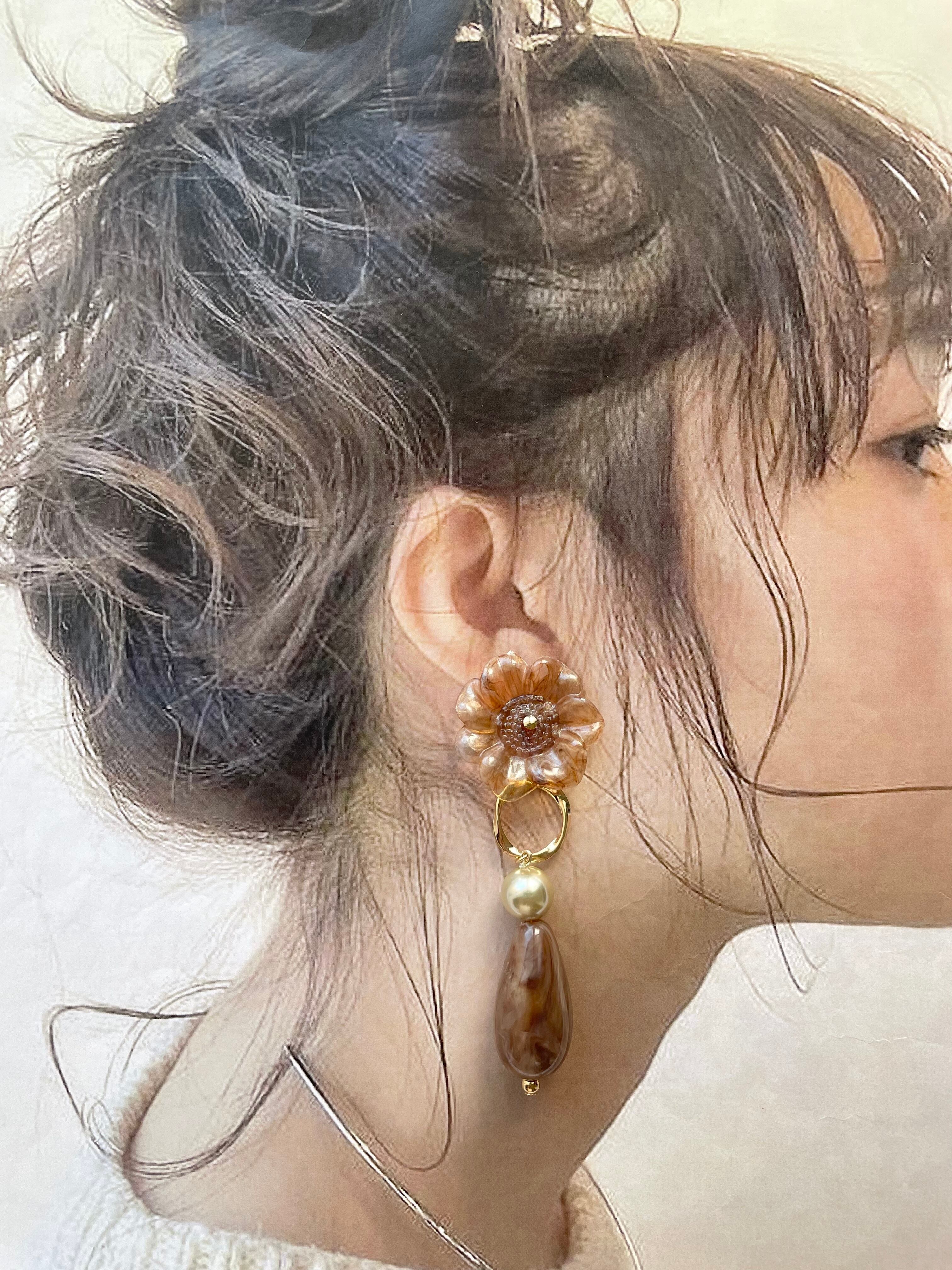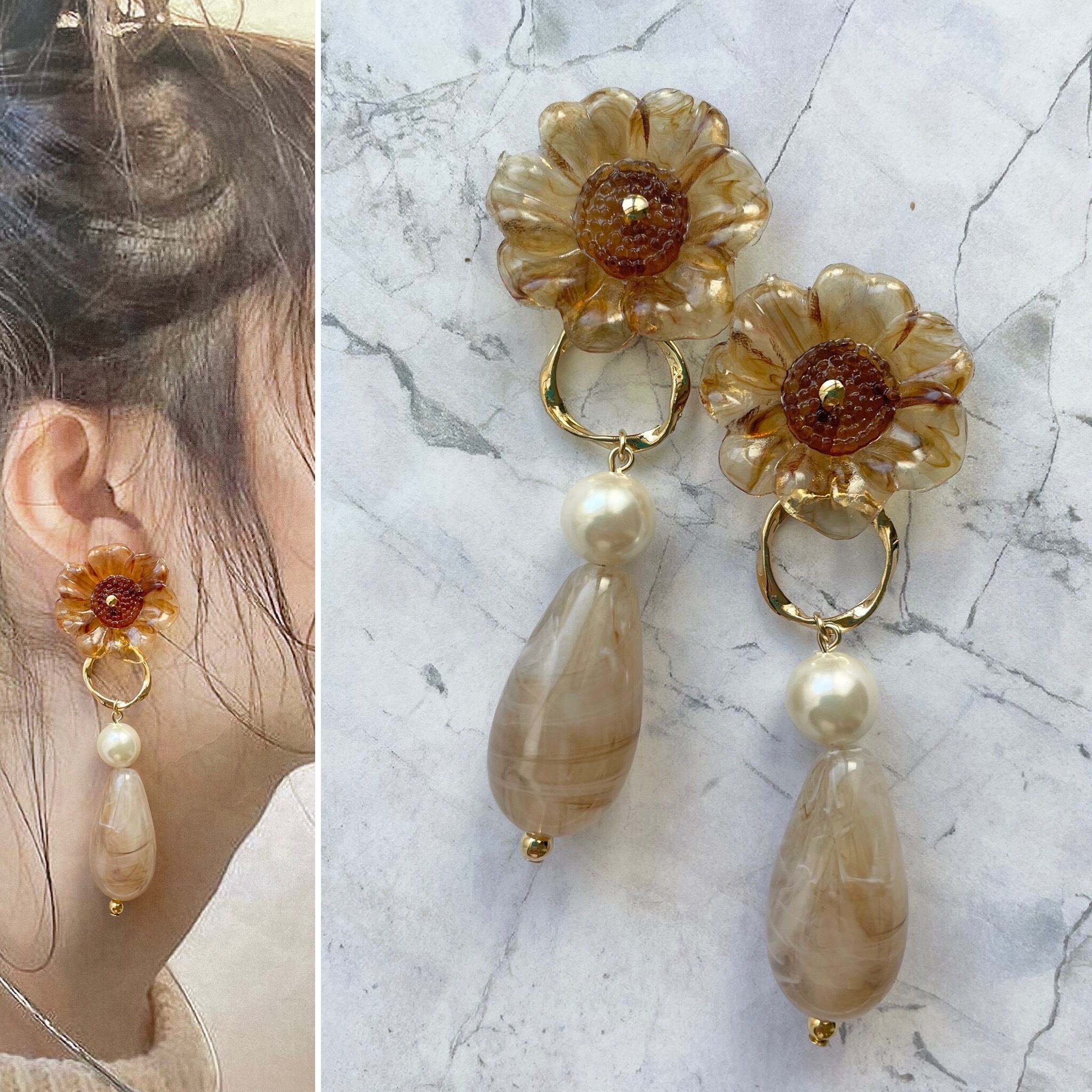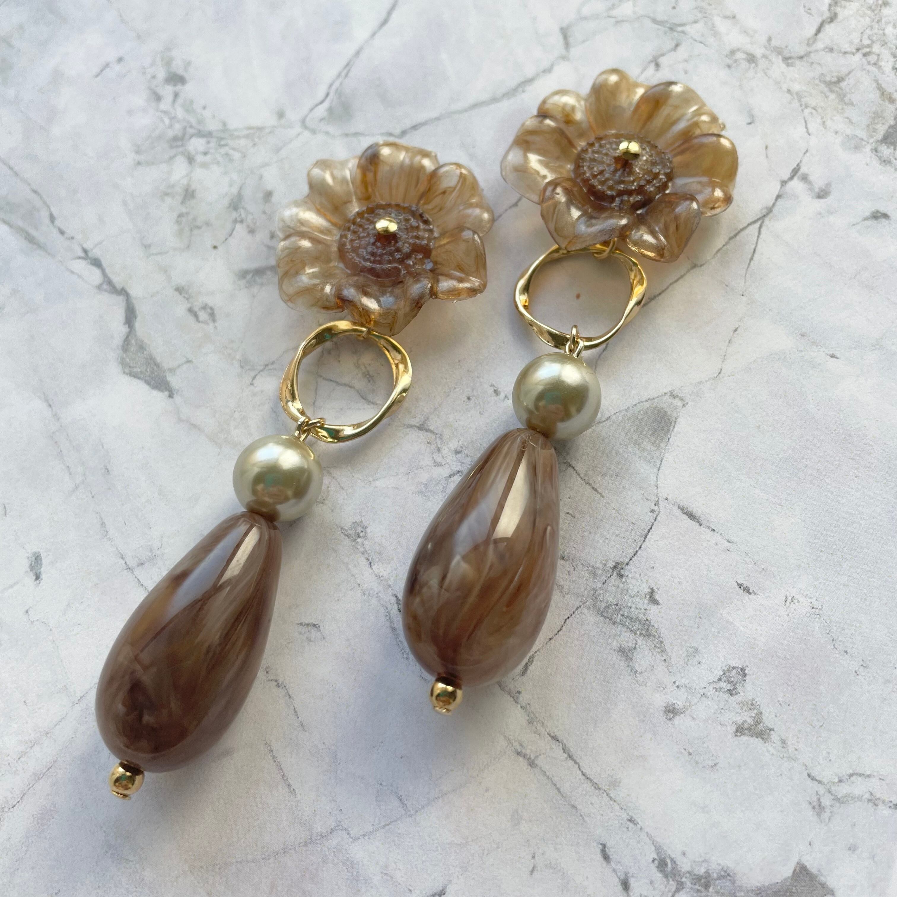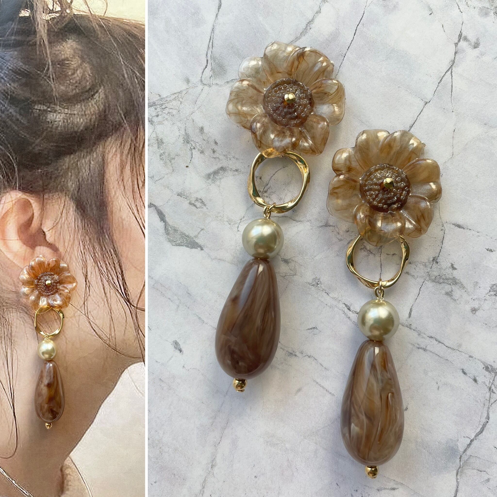 モカフラワー大ぶりピアス