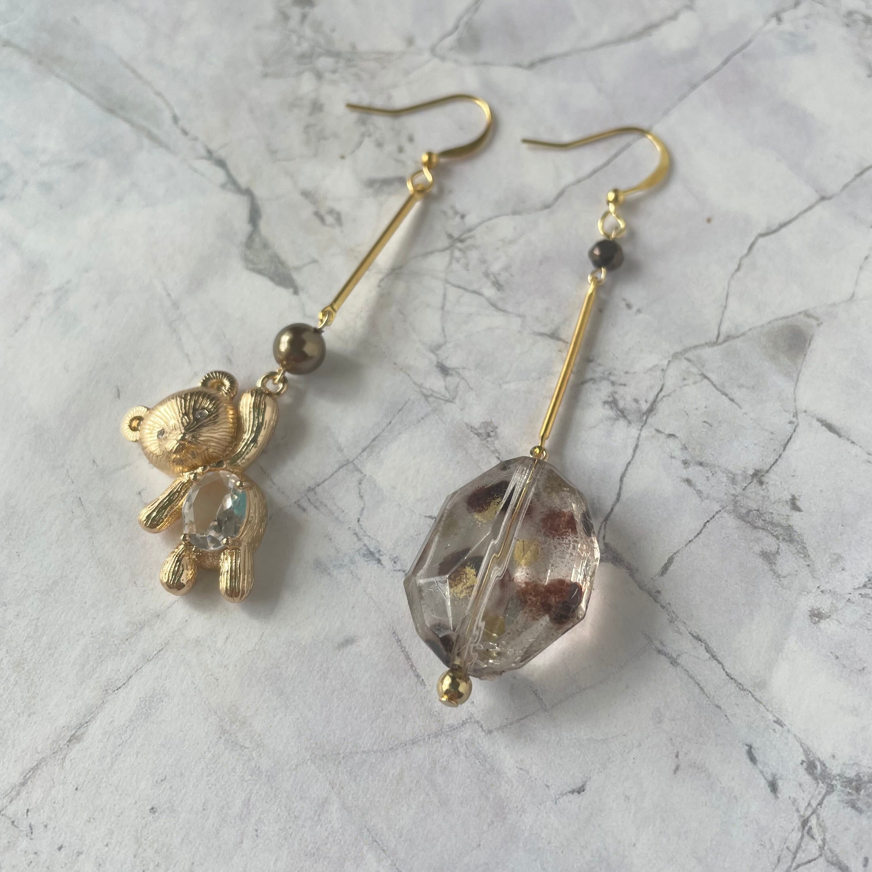 【1点物*】ぶら下がりクマ×ブラウンドットピアス