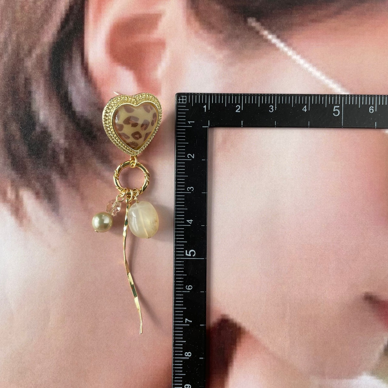 【金属ピアスのみ 1点物*】 レオパード×天然石ひねりピアス