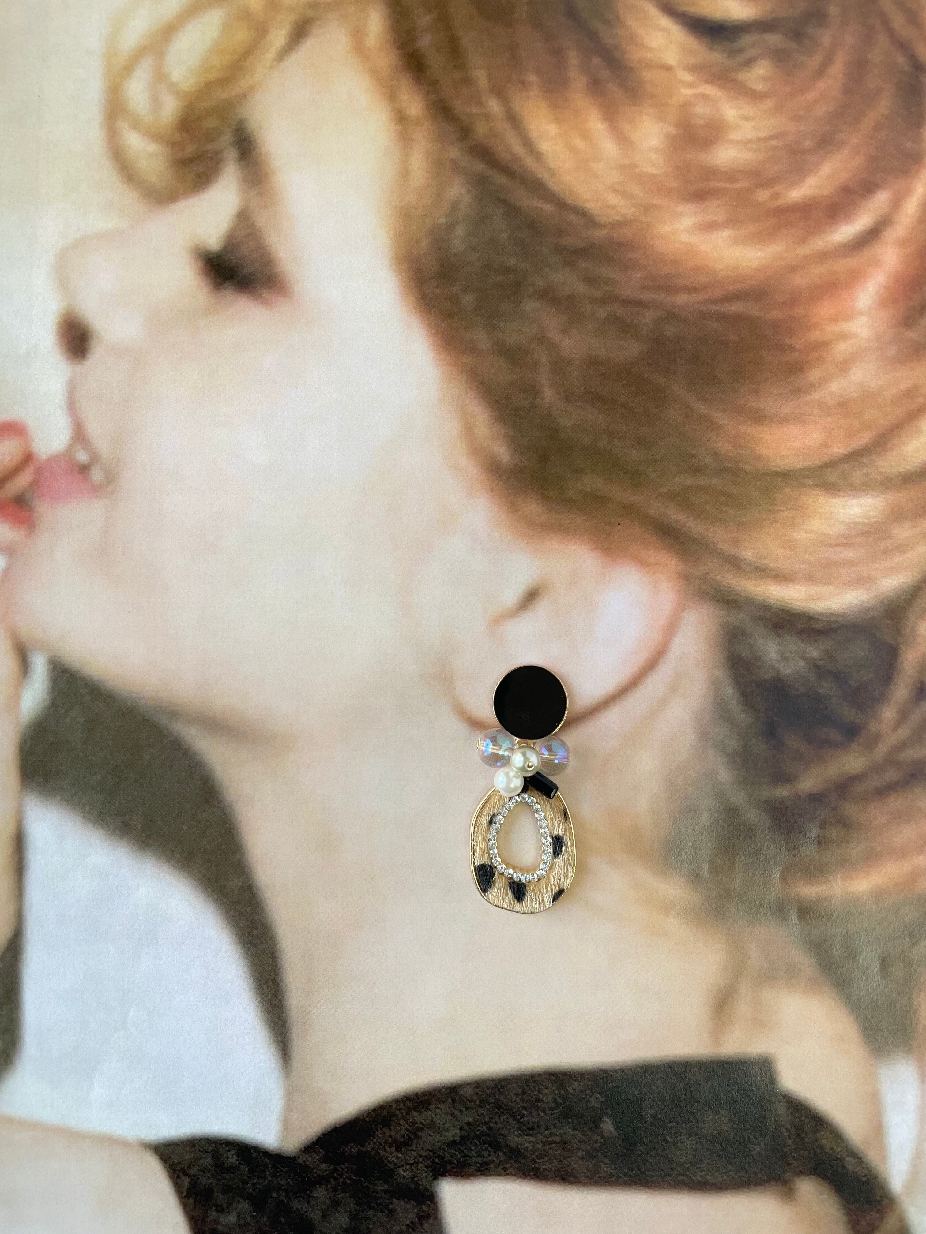【1点物*】ブラック×中抜きオーバルレオパードピアス
