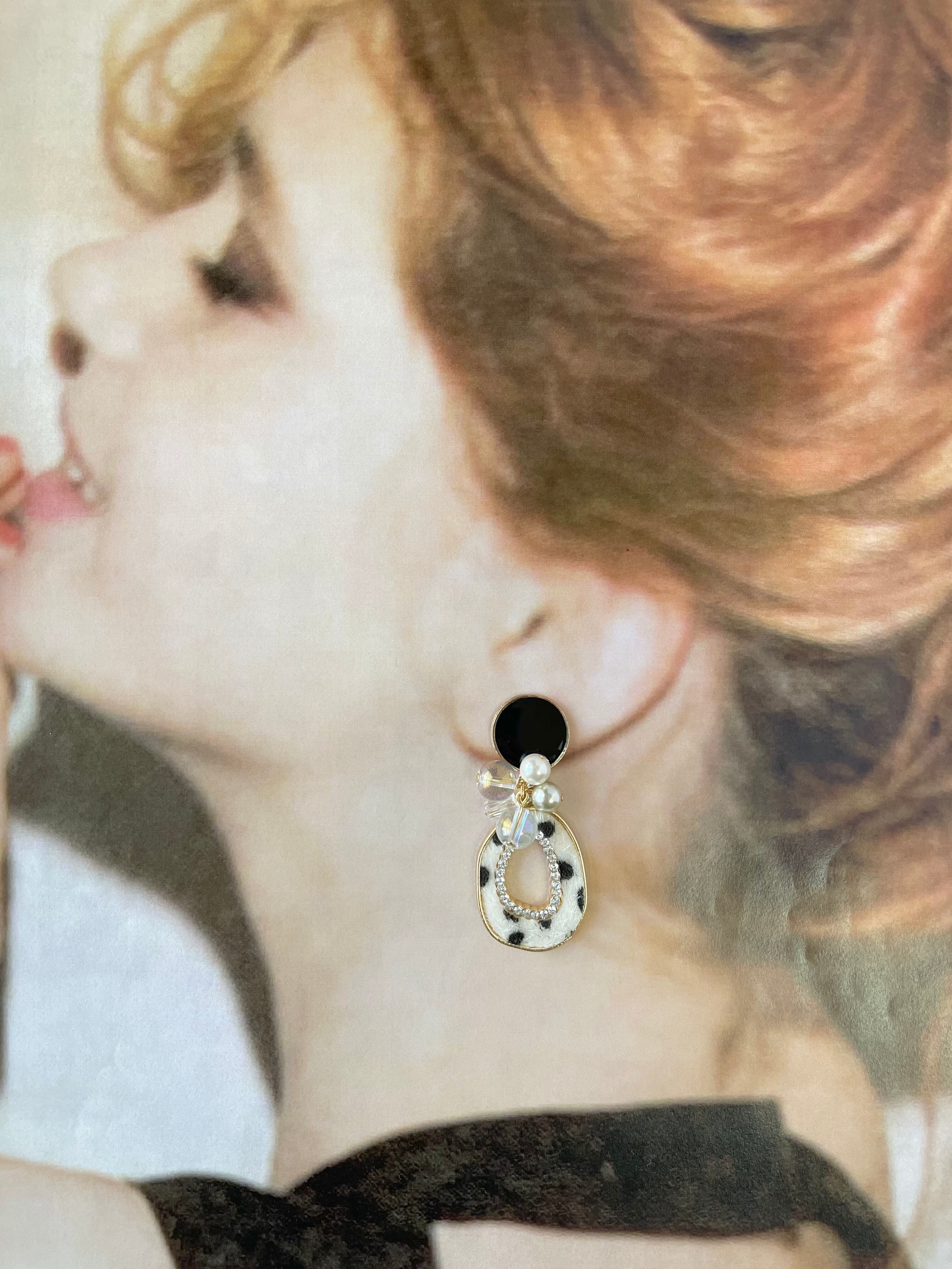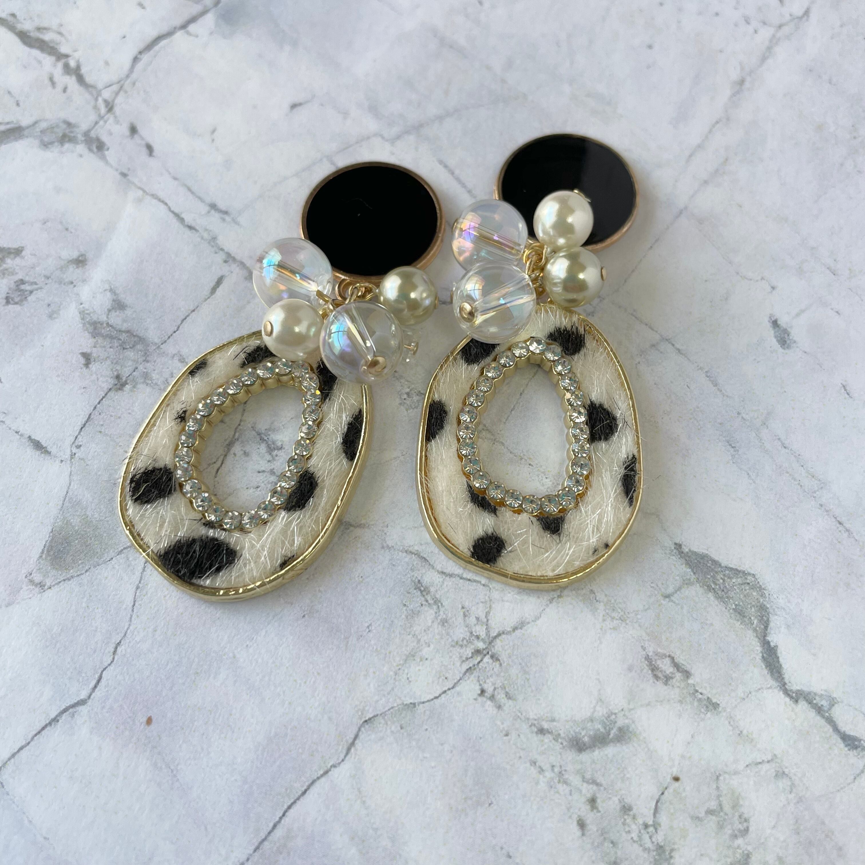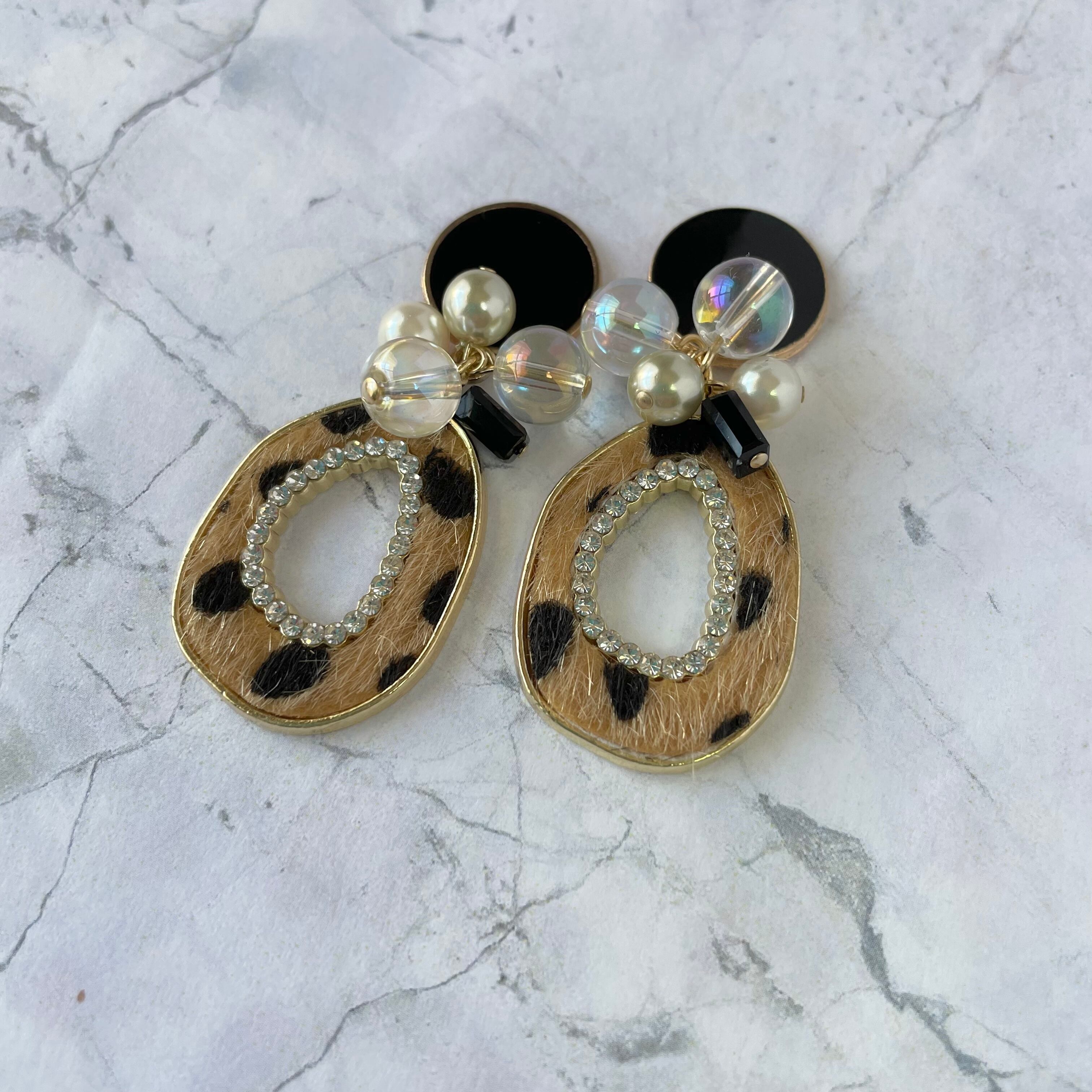 ブラック×中抜きオーバルレオパードピアス