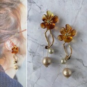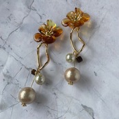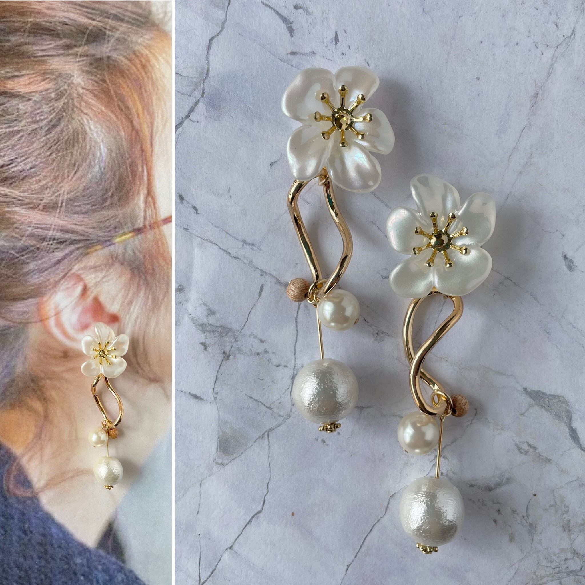 【1点物*】ぷっくりフラワー×高品質コットンパールピアス B