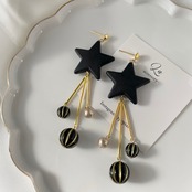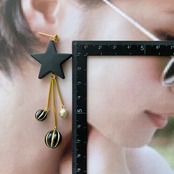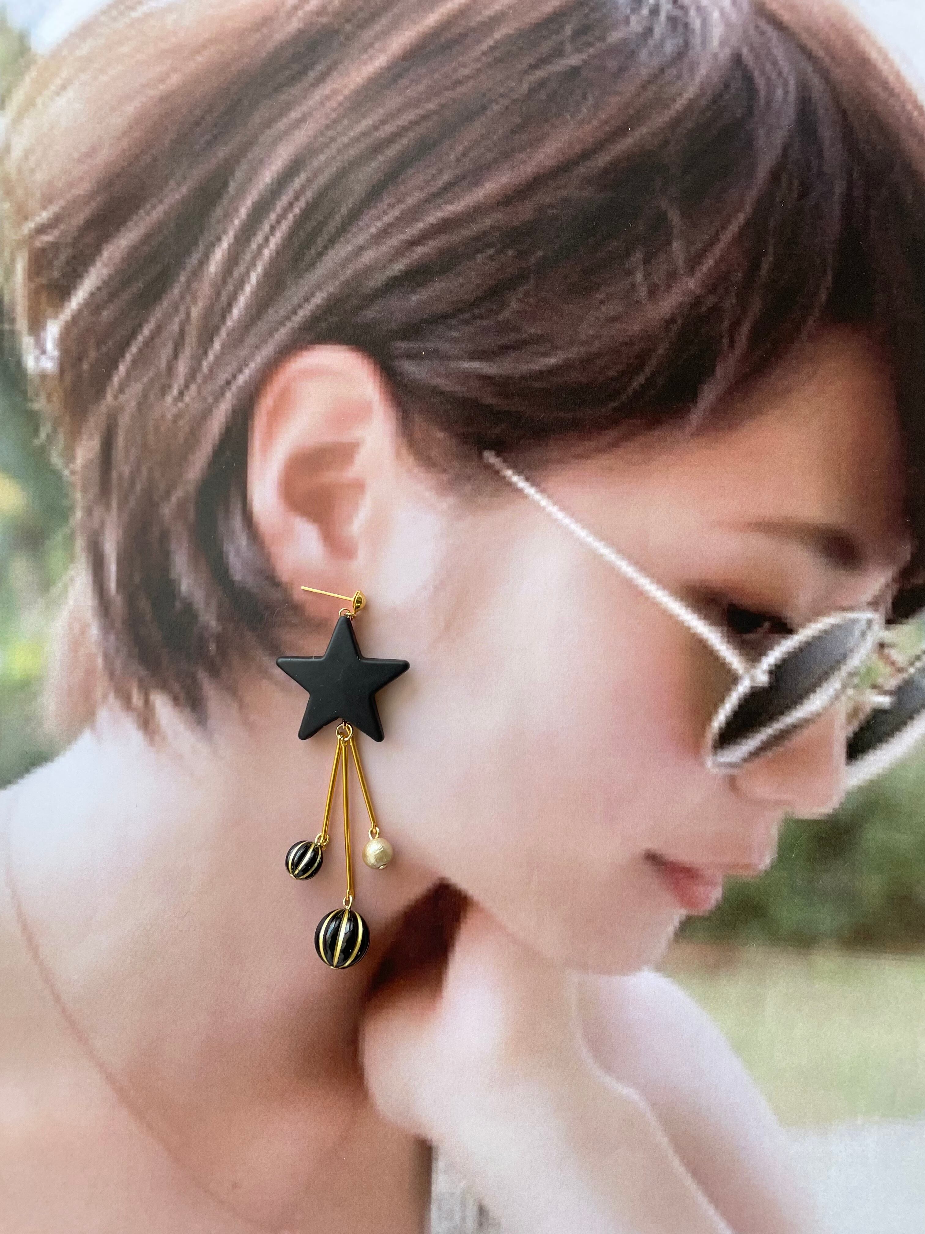 マットブラックスター×アンティークビーズピアス