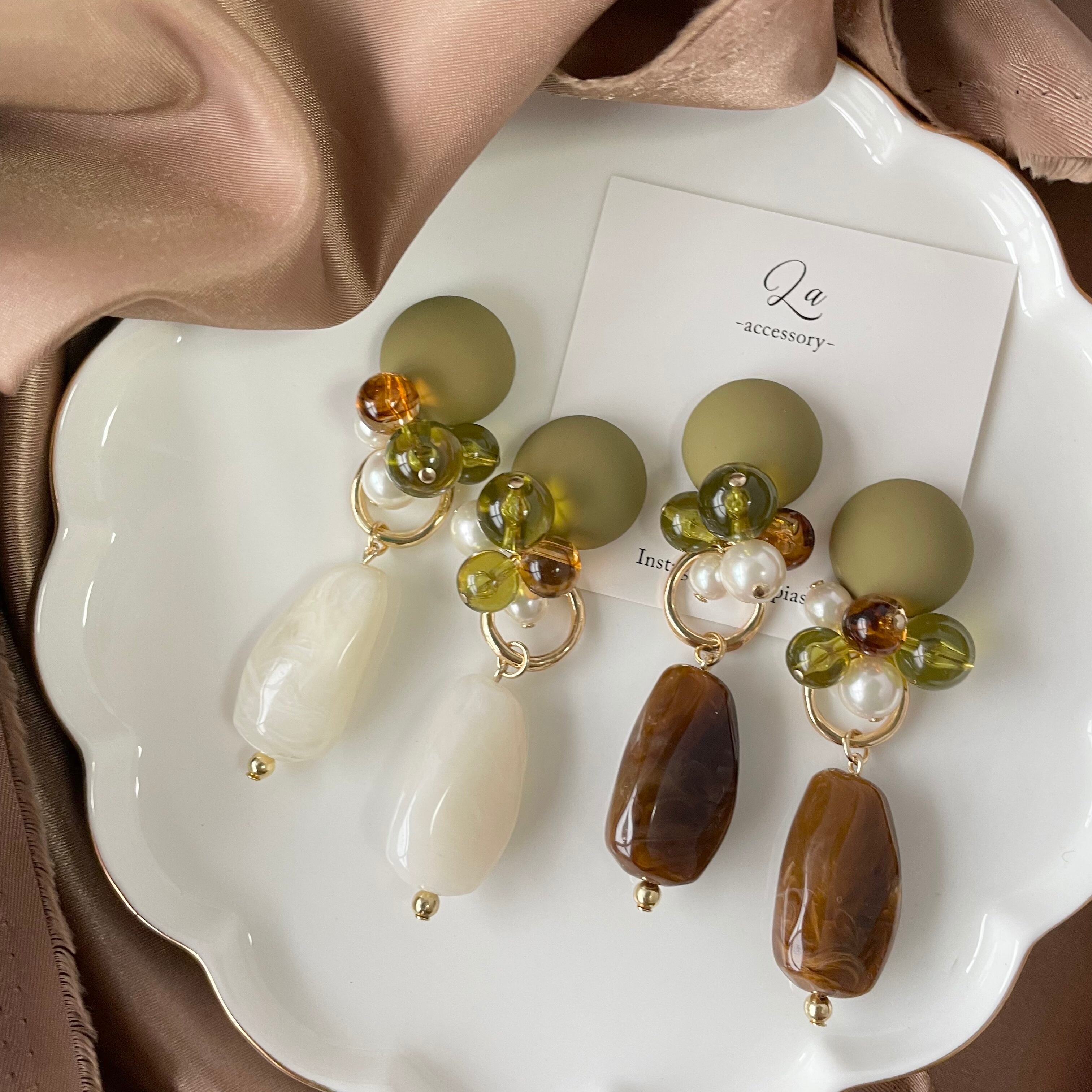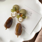 【1点物*】マットベイクドグリーン×ストーンピアス