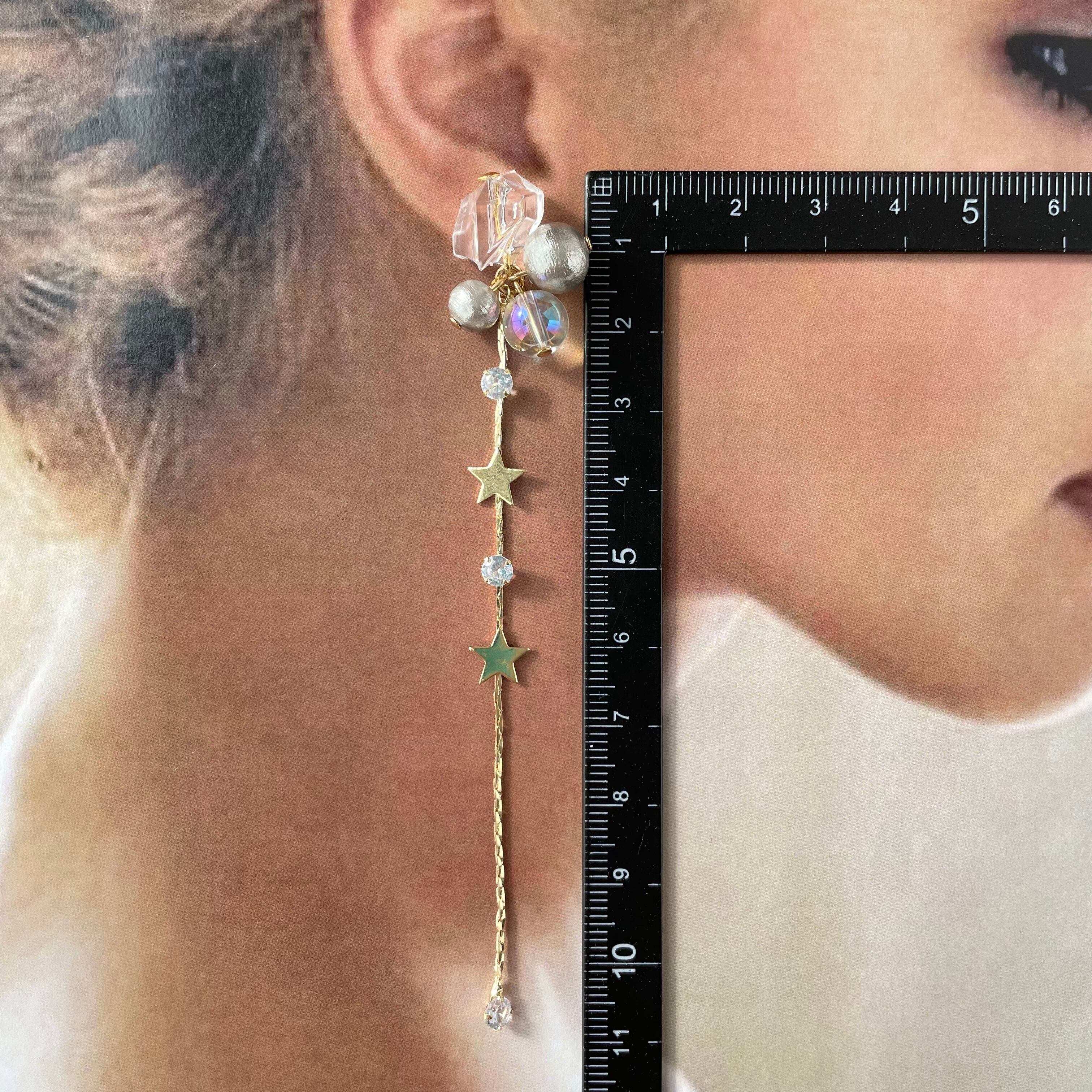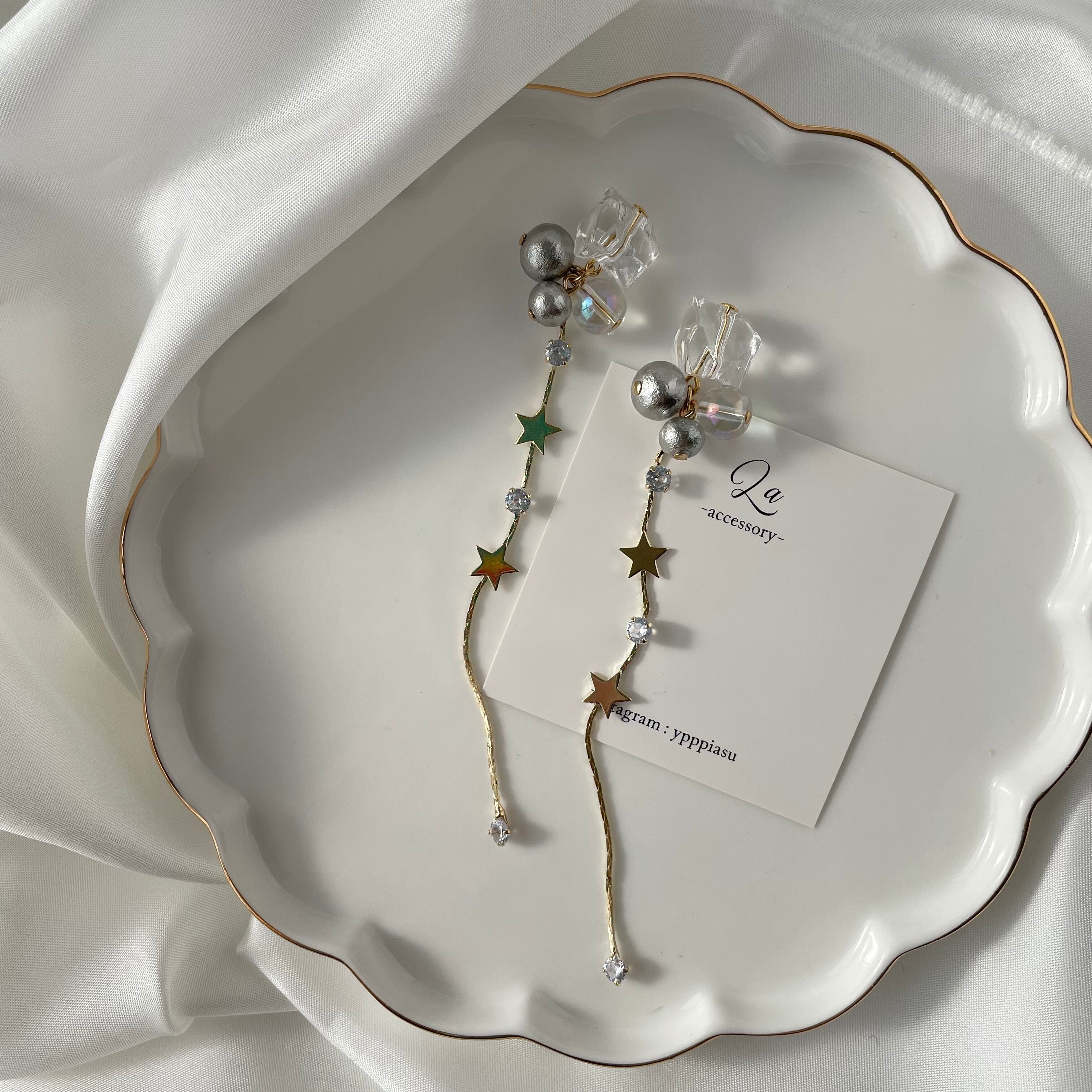 高品質グレーコットンパール×オーロラピアス 〜スターライン〜