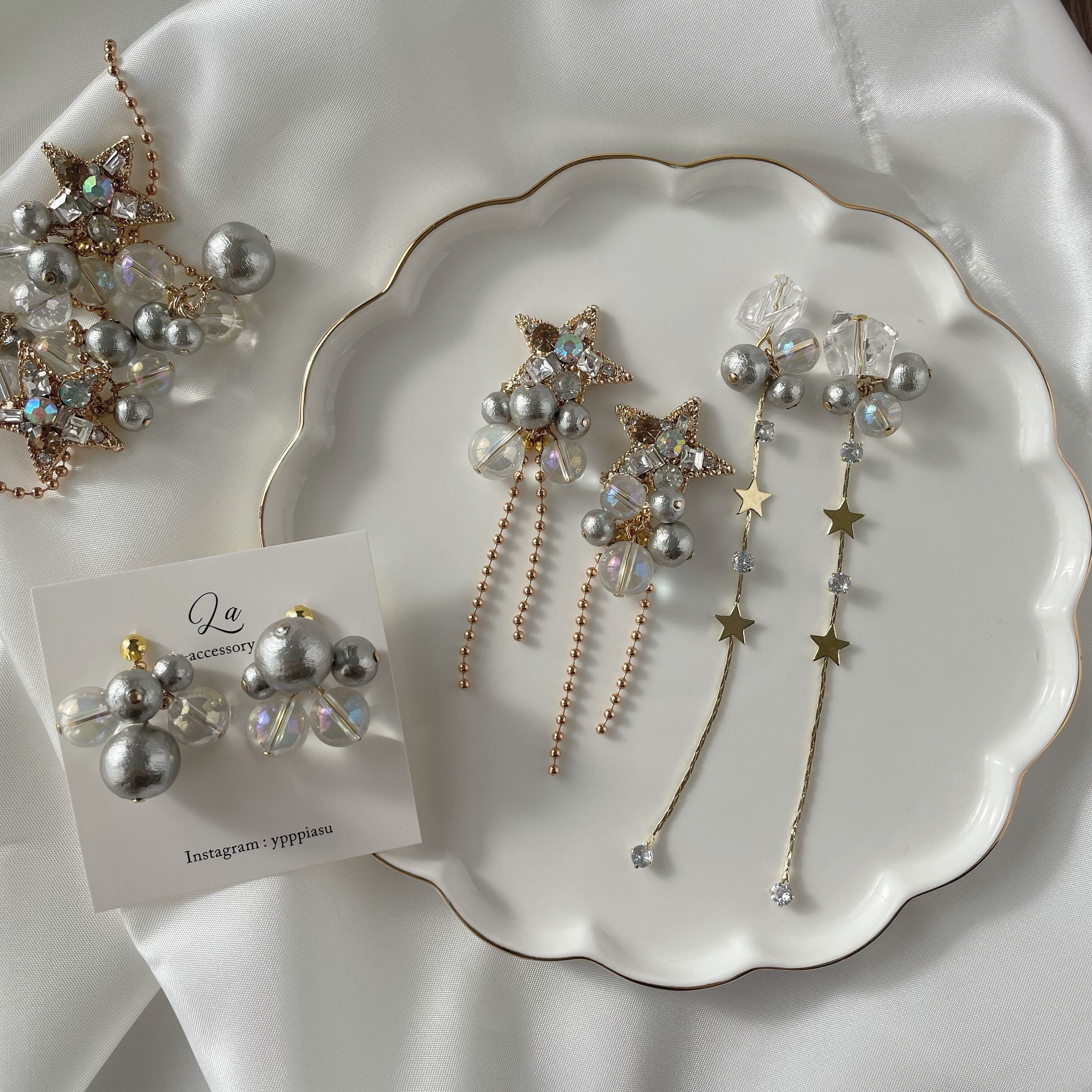 クリアパーツ部分が耳につく様なポストタイプです。フックタイプご希望の方は備考欄にお書き下さい。