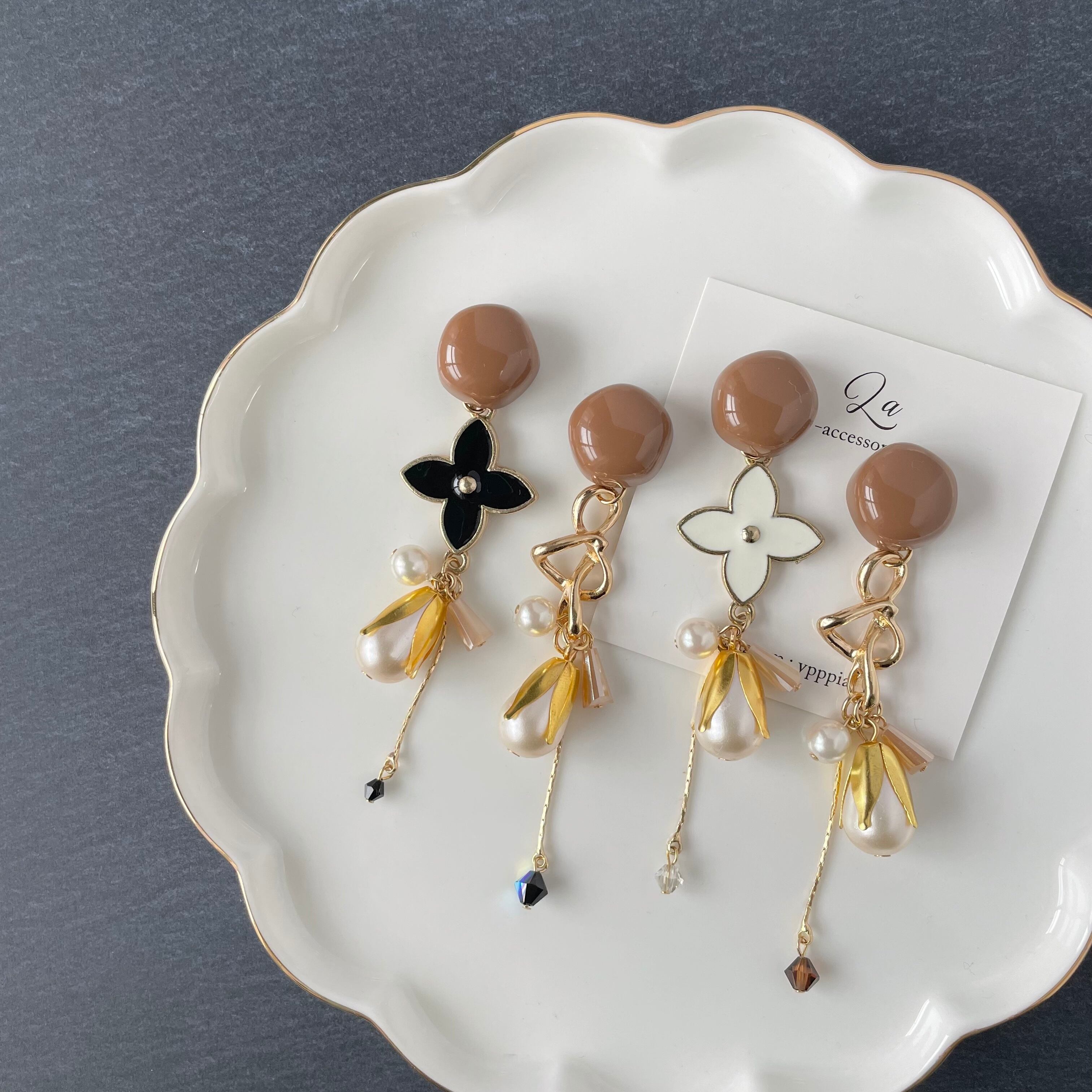 ヌーディカラー×四つ葉フラワーアシメピアス