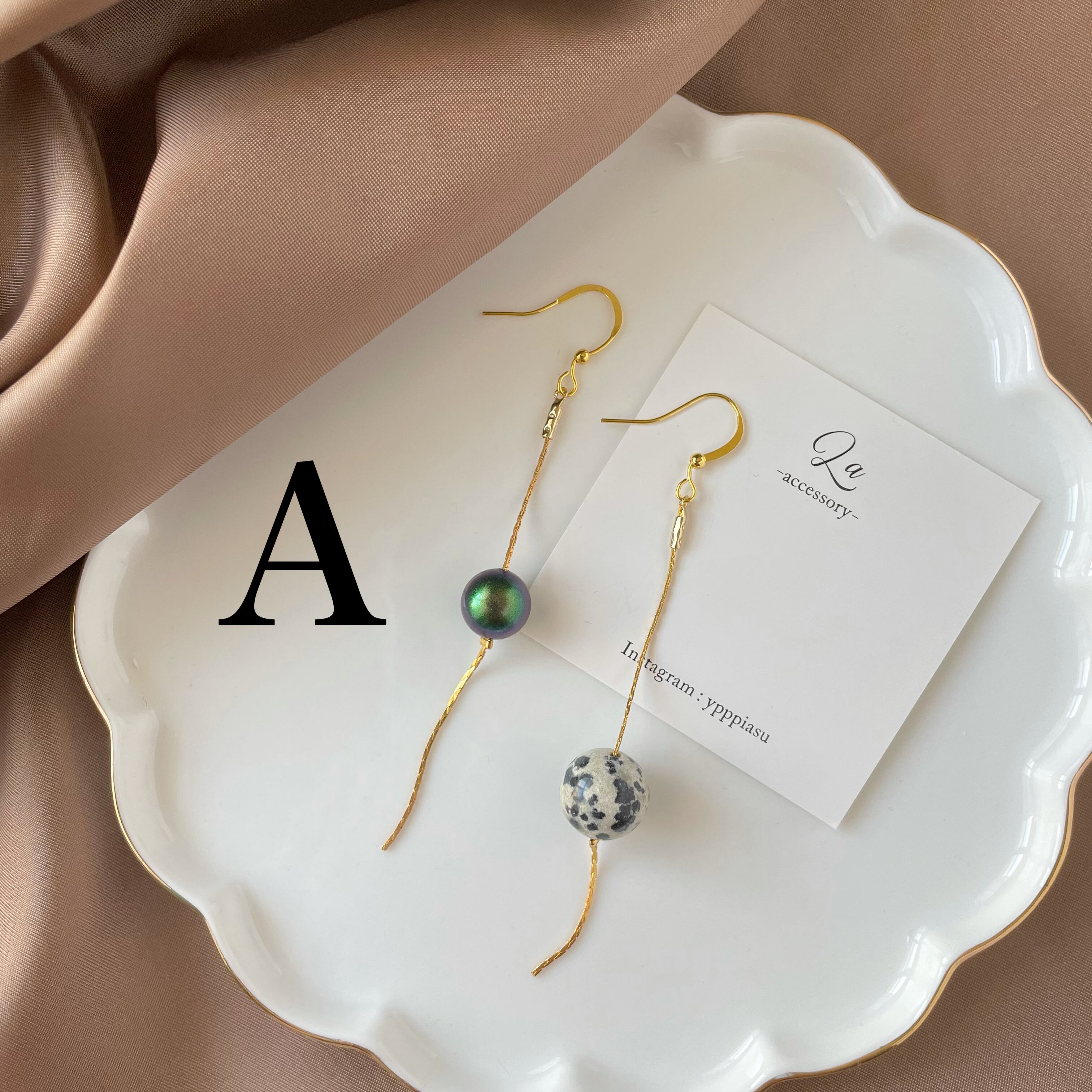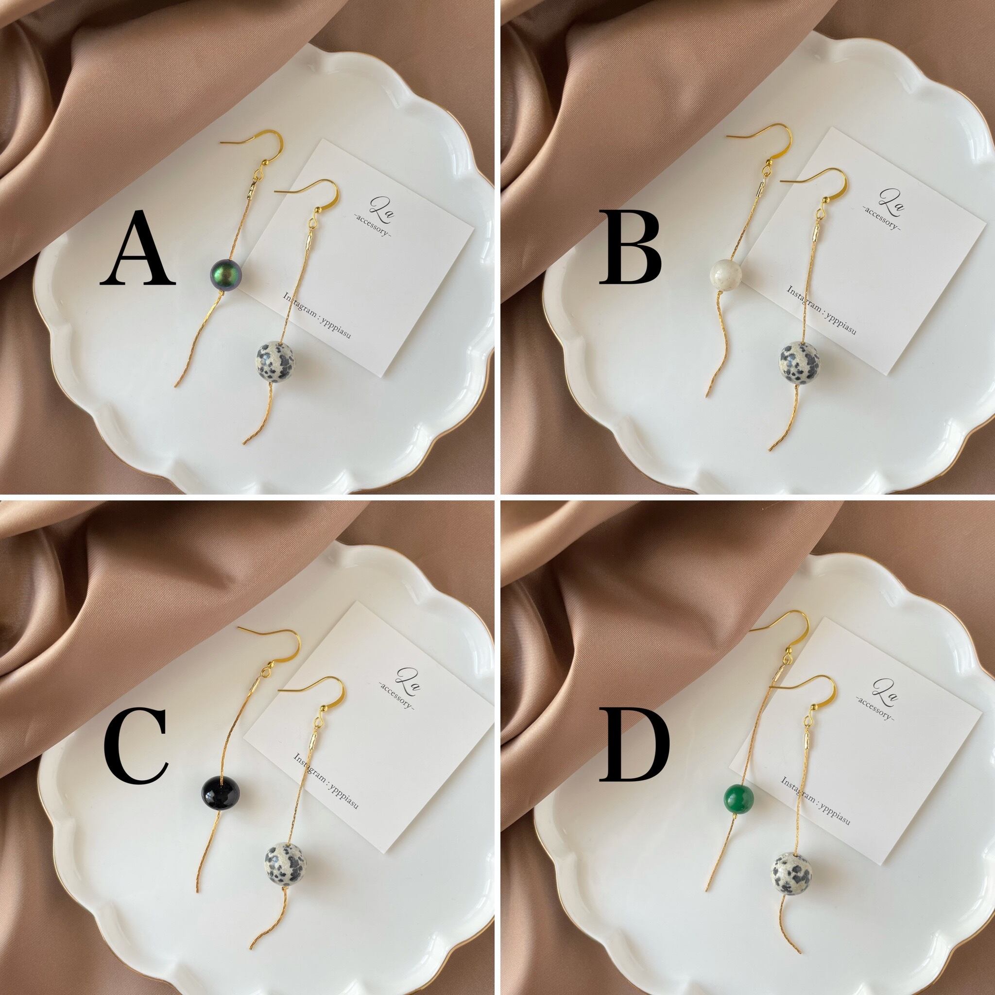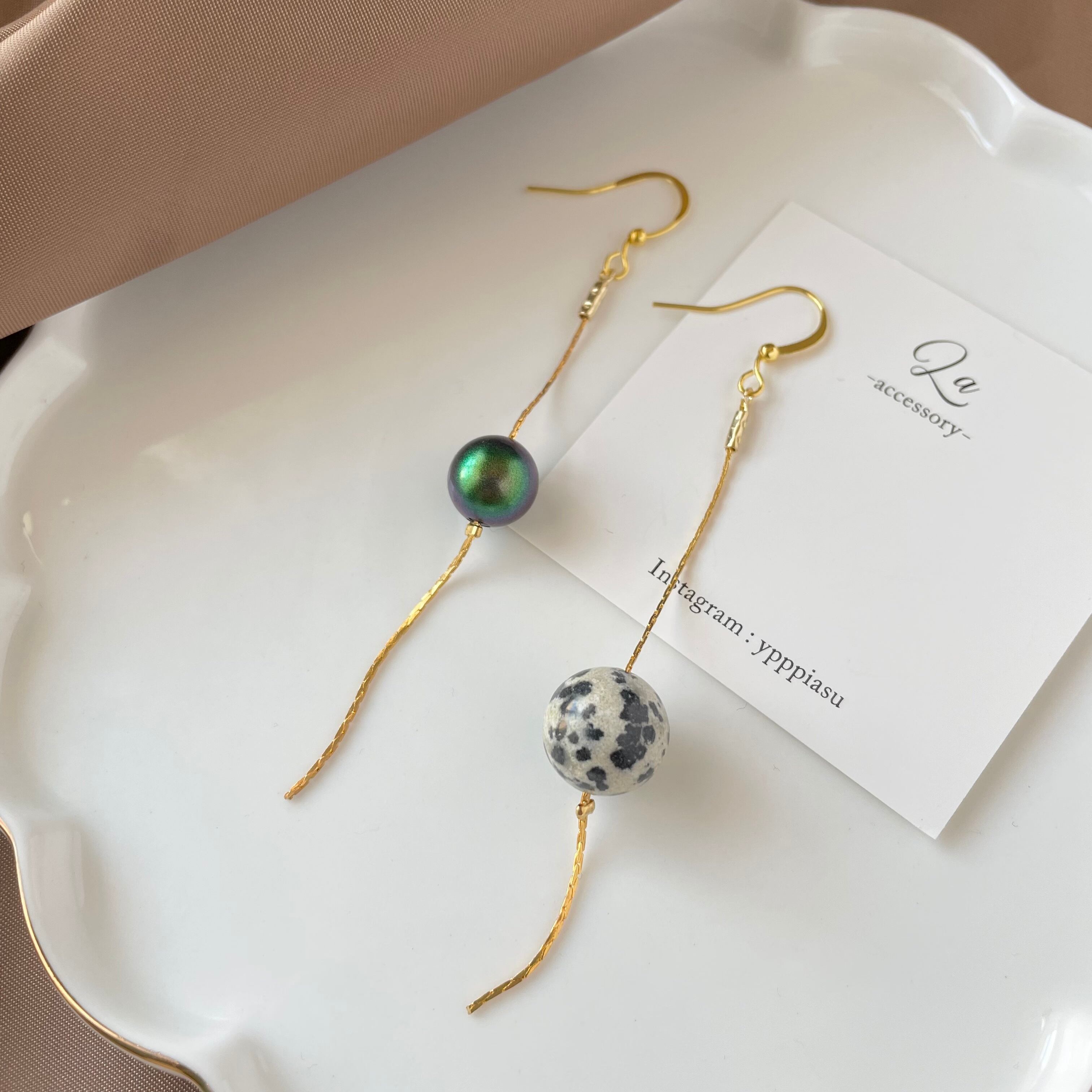 【1点物*】ダルメシアン×細チェーンアシメピアス