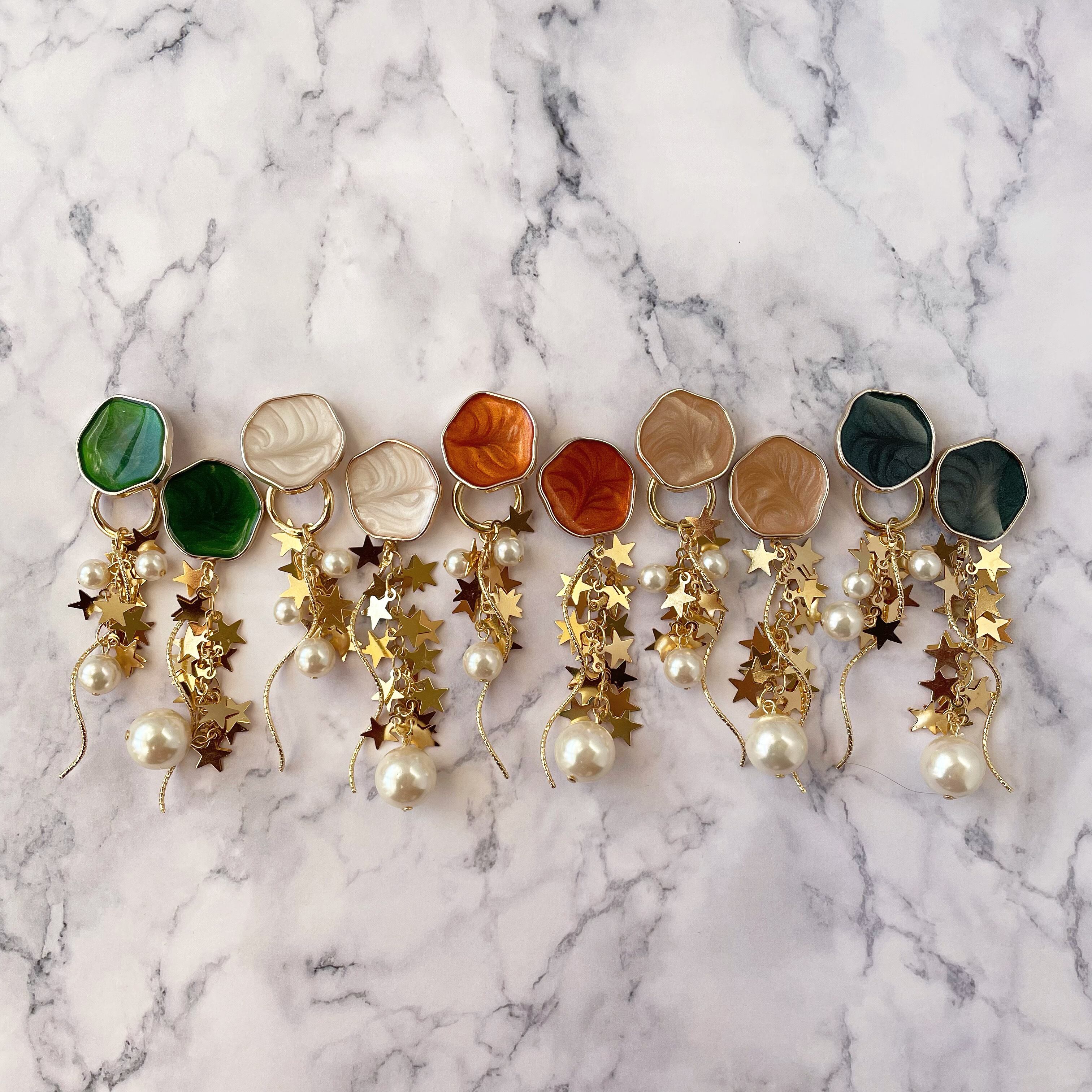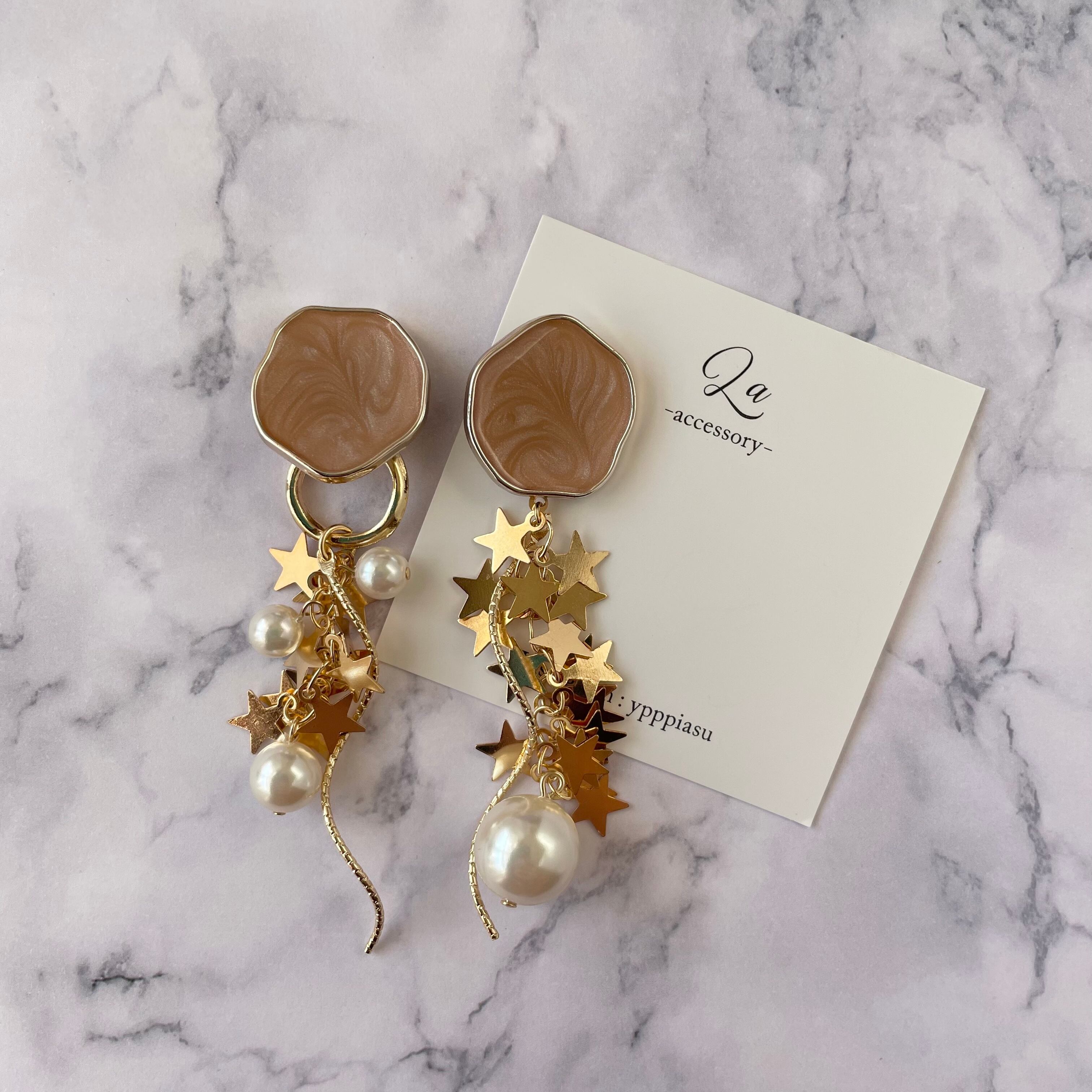 【1点物*】シャイニーカボション ×星じゃらじゃらピアス