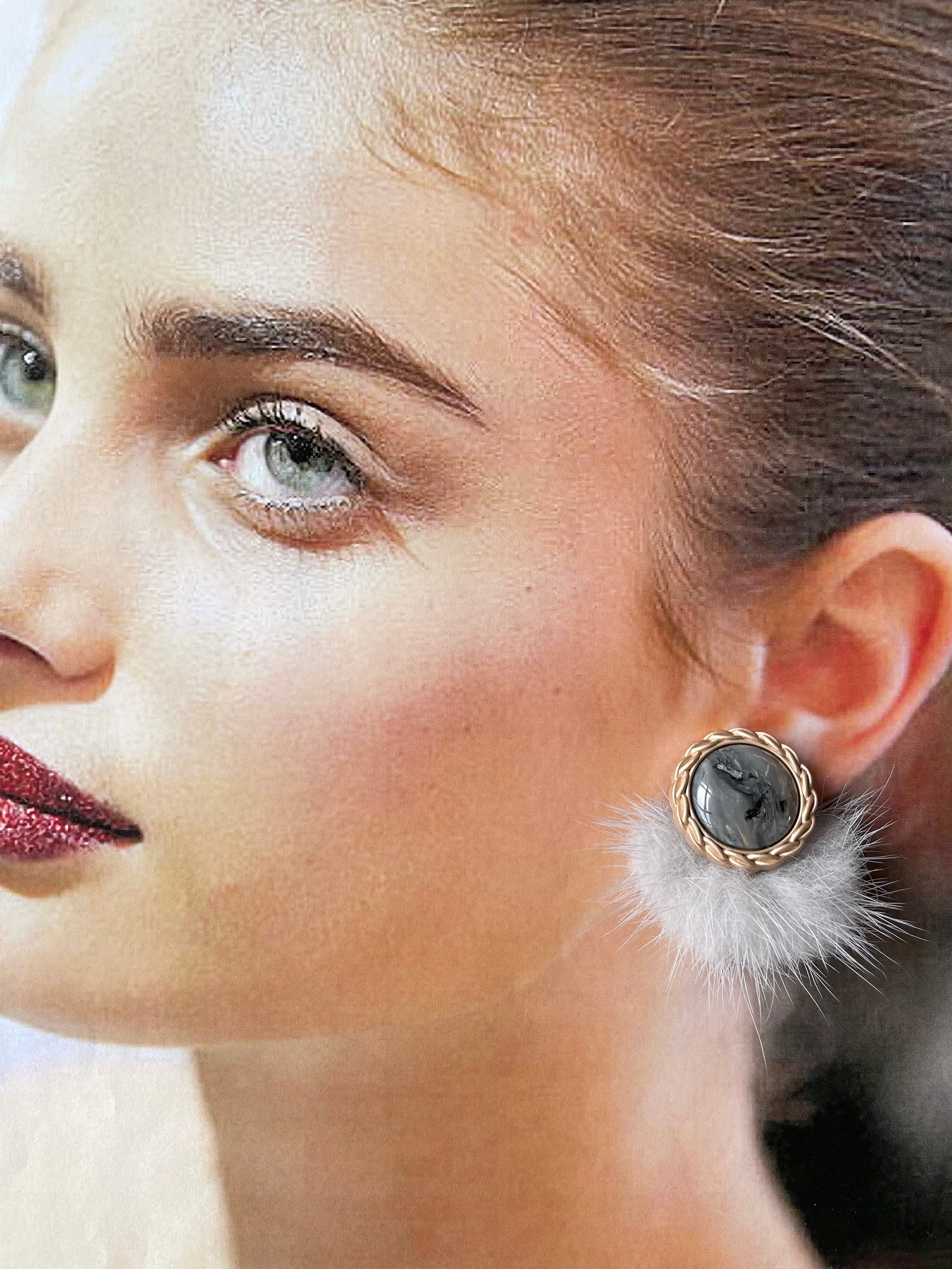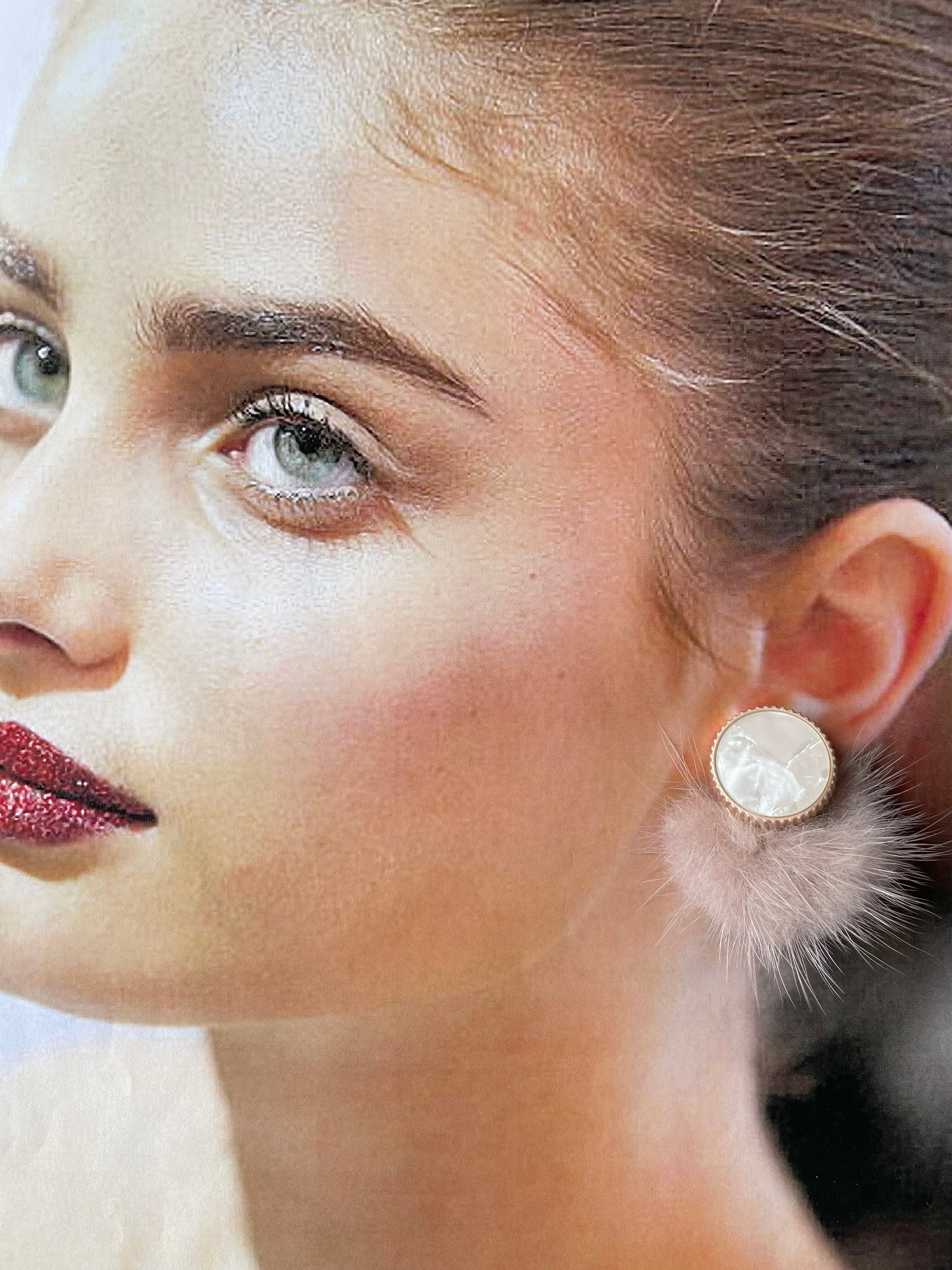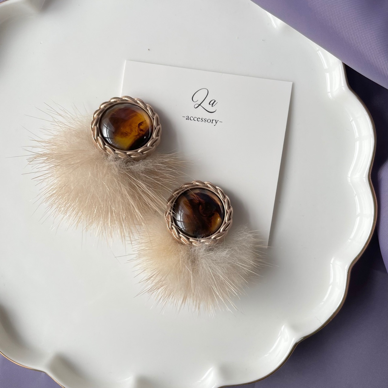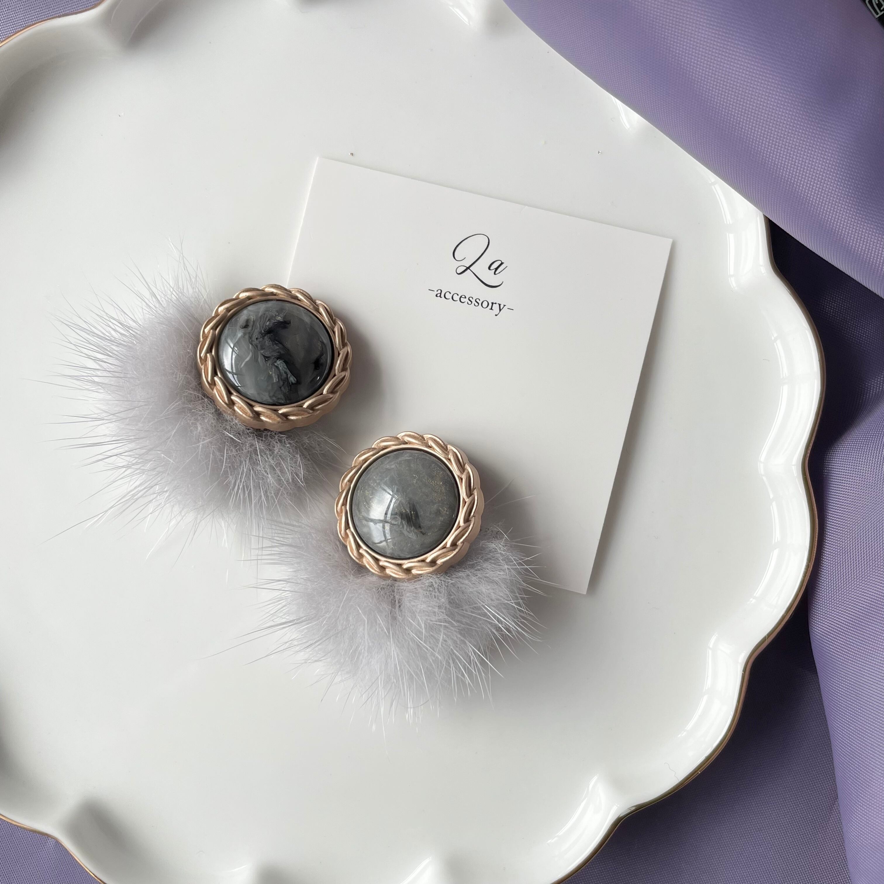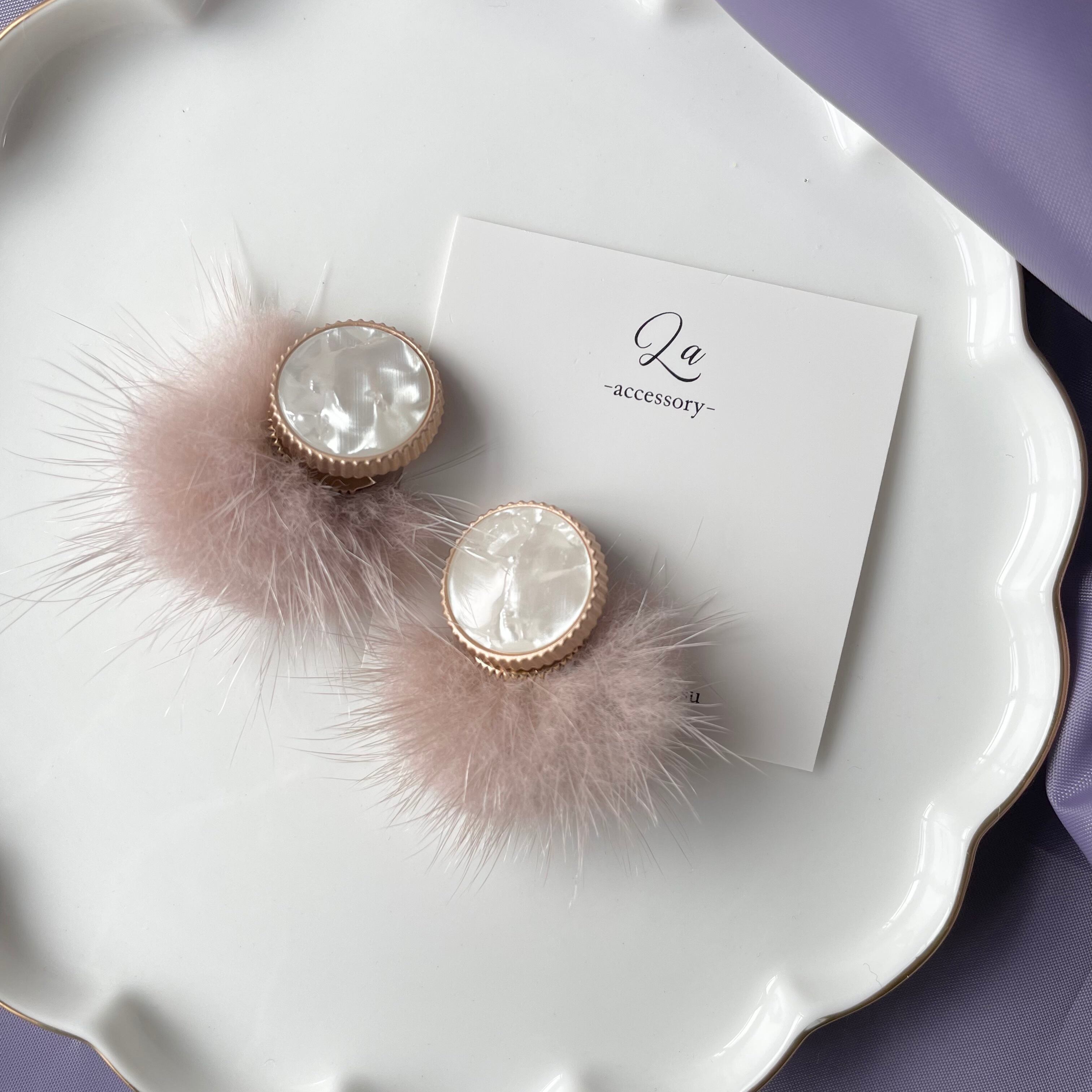 【ピアスのみ*】 マットゴールド縁ボタン×ミンクファーピアス