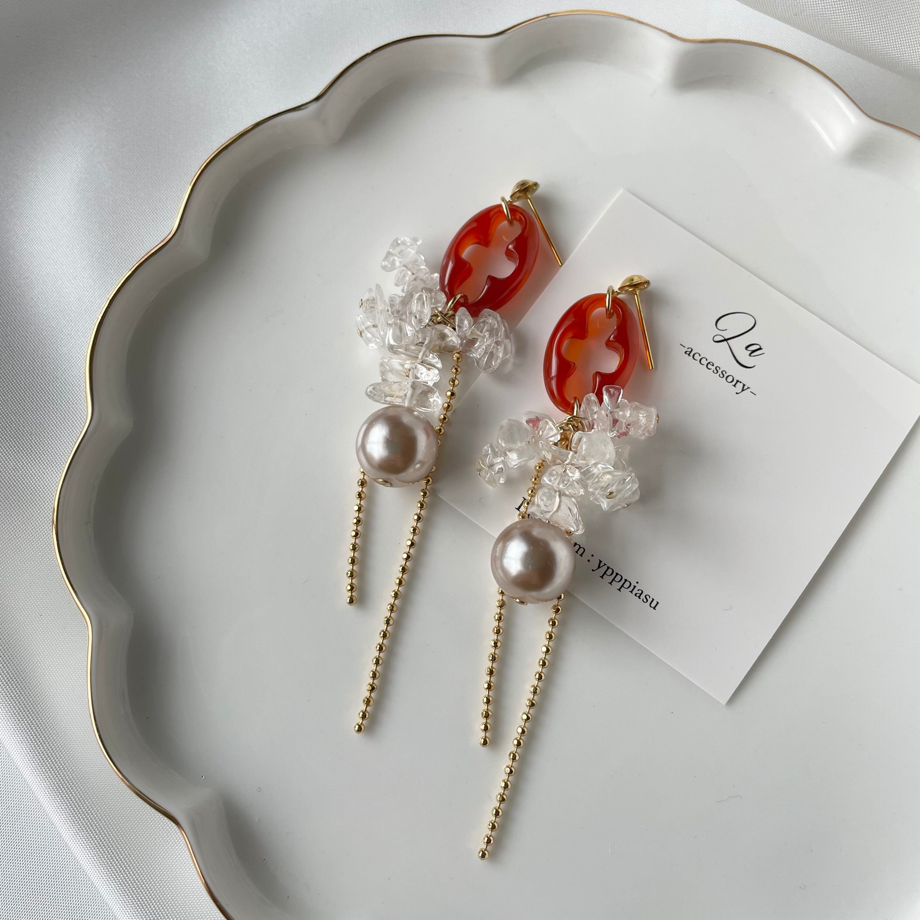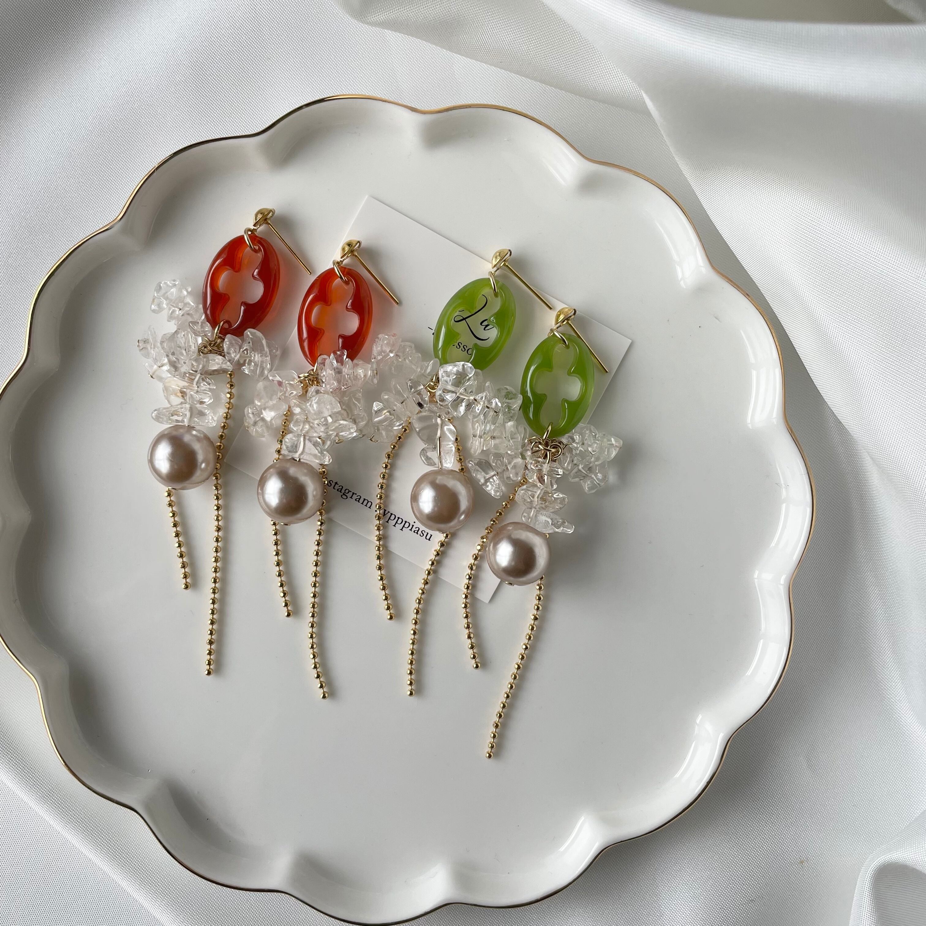 半貴石をたっぷり使用した贅沢なピアス♥︎︎∗︎*゚