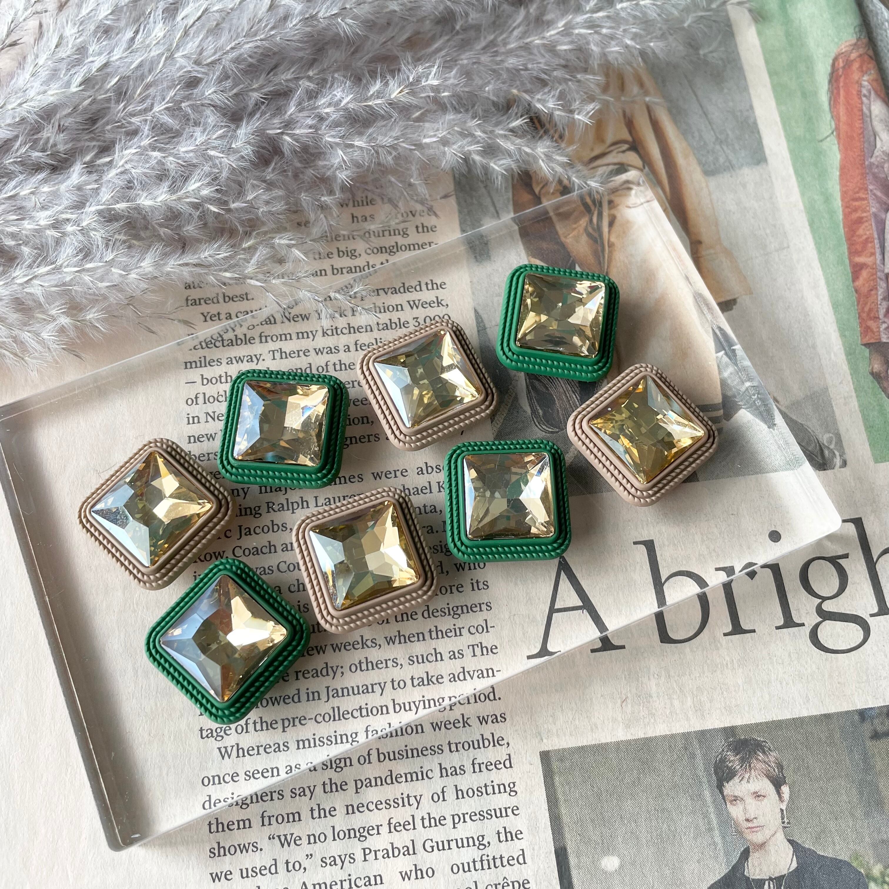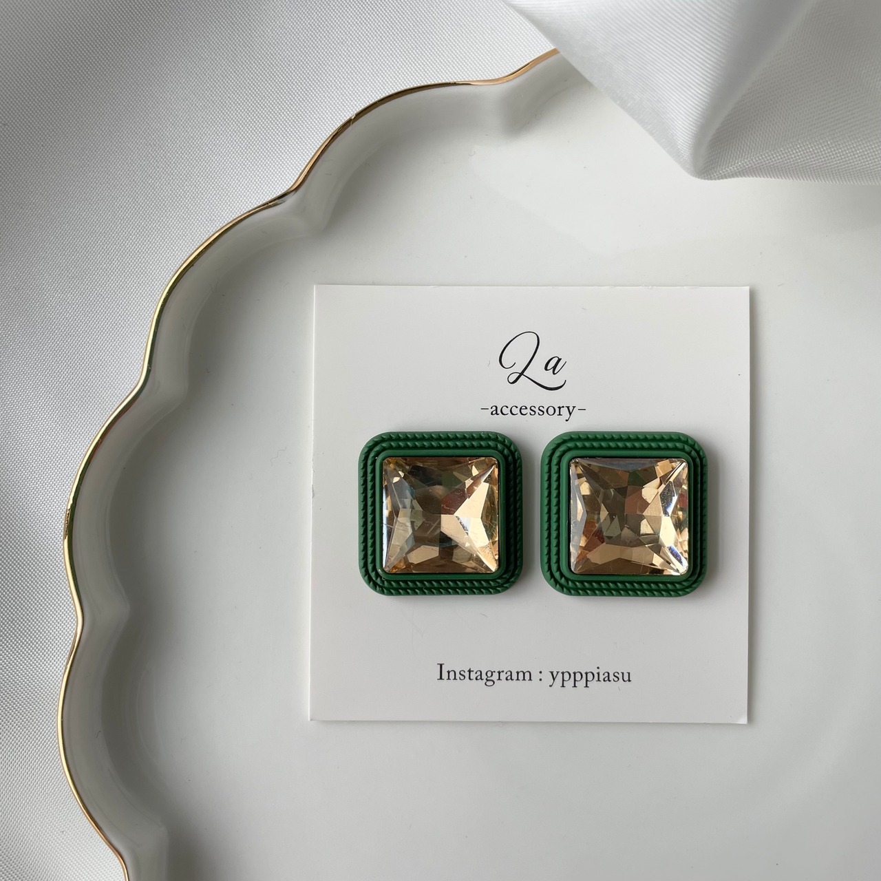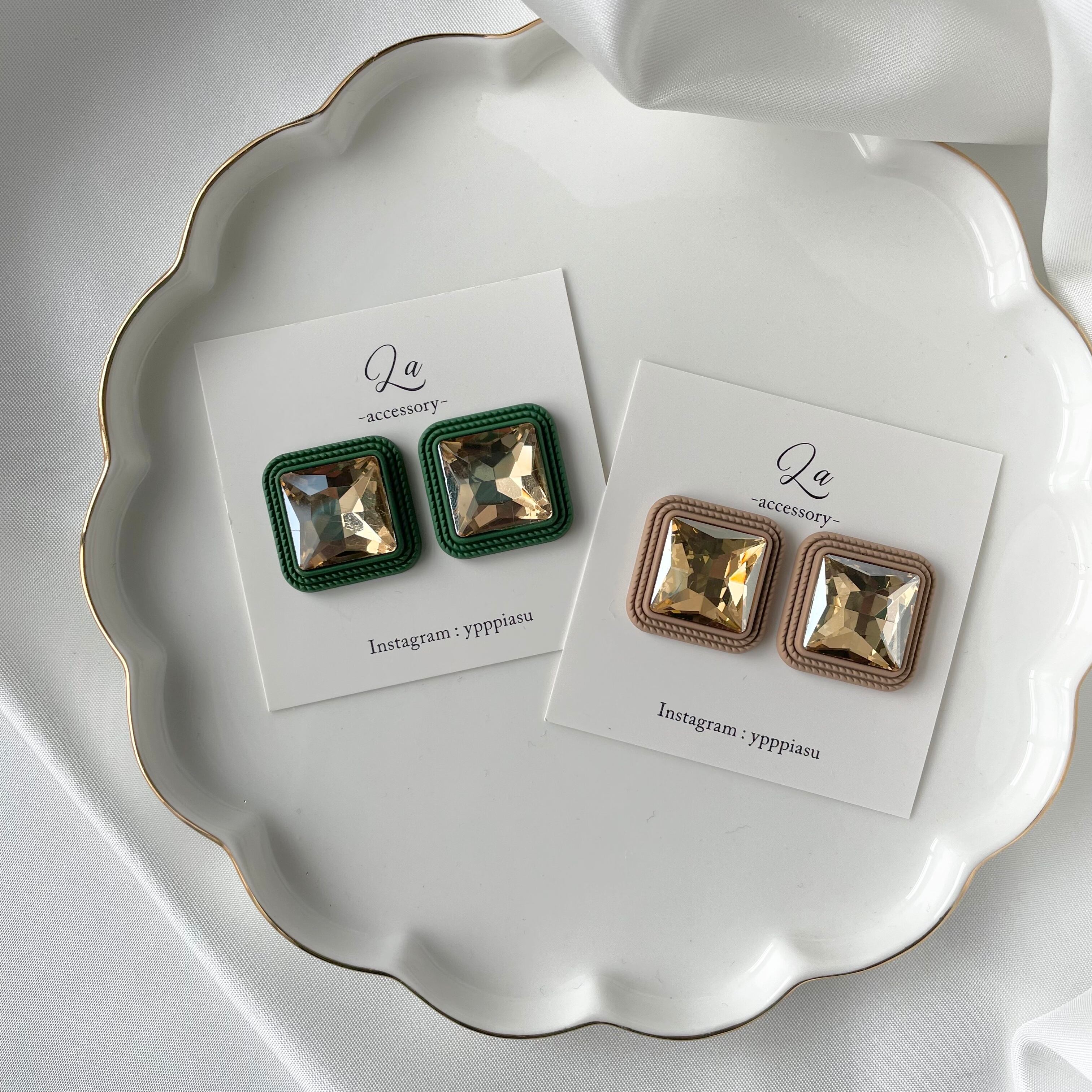 中央は飴のようなきらきらした素材、フチは流行りのゴムでお洒落なカボションピアスです∗︎*゚