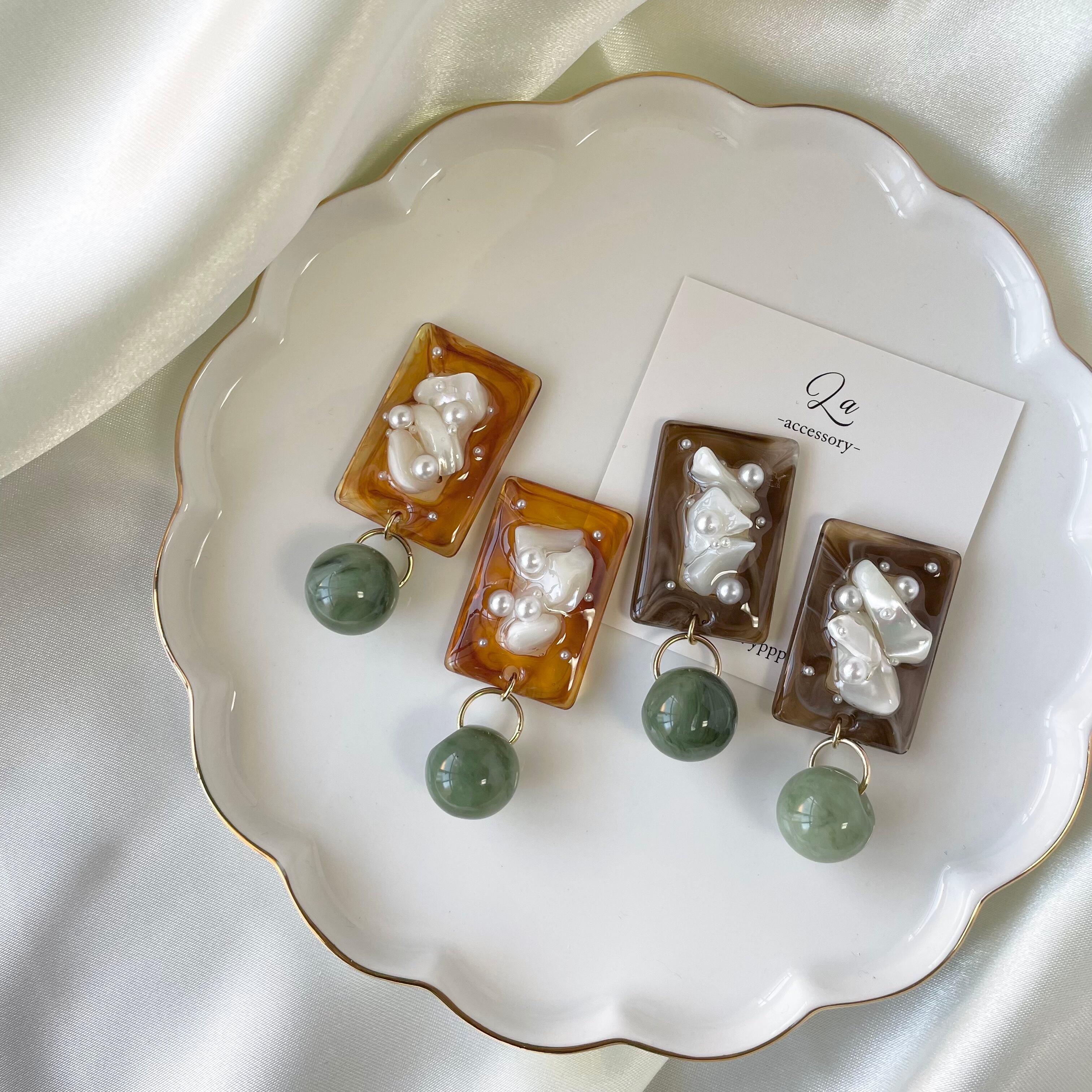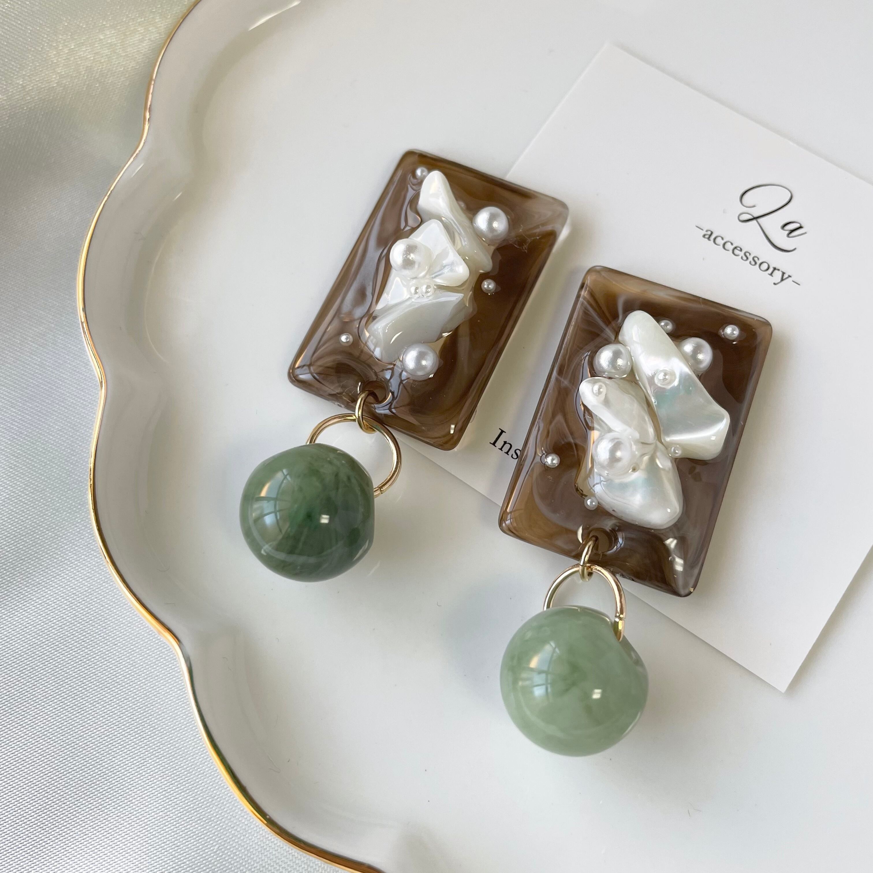 いびつな立体シェルがたっぷりで可愛い♡グリーンボールはゆらゆら揺れます⋆︎*
