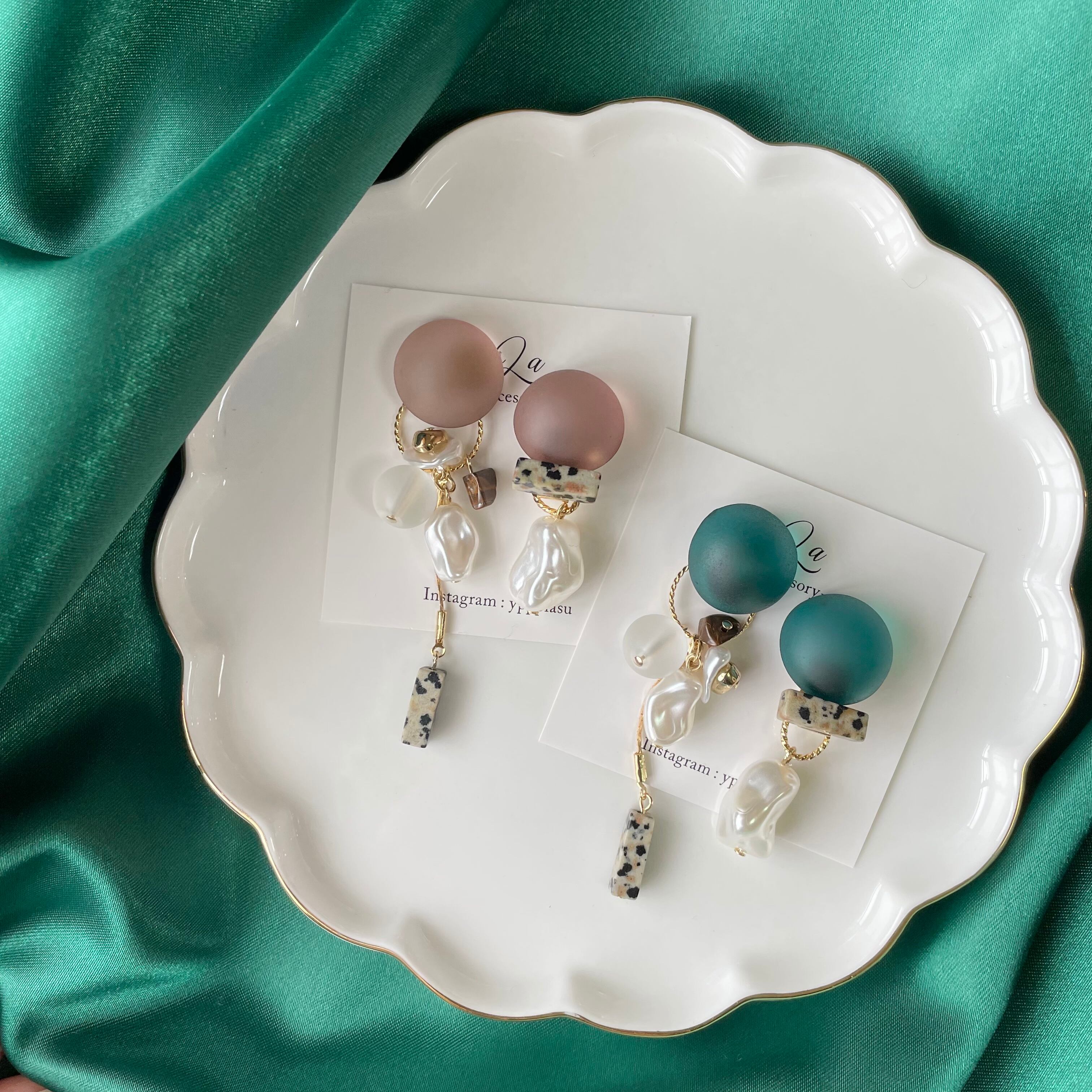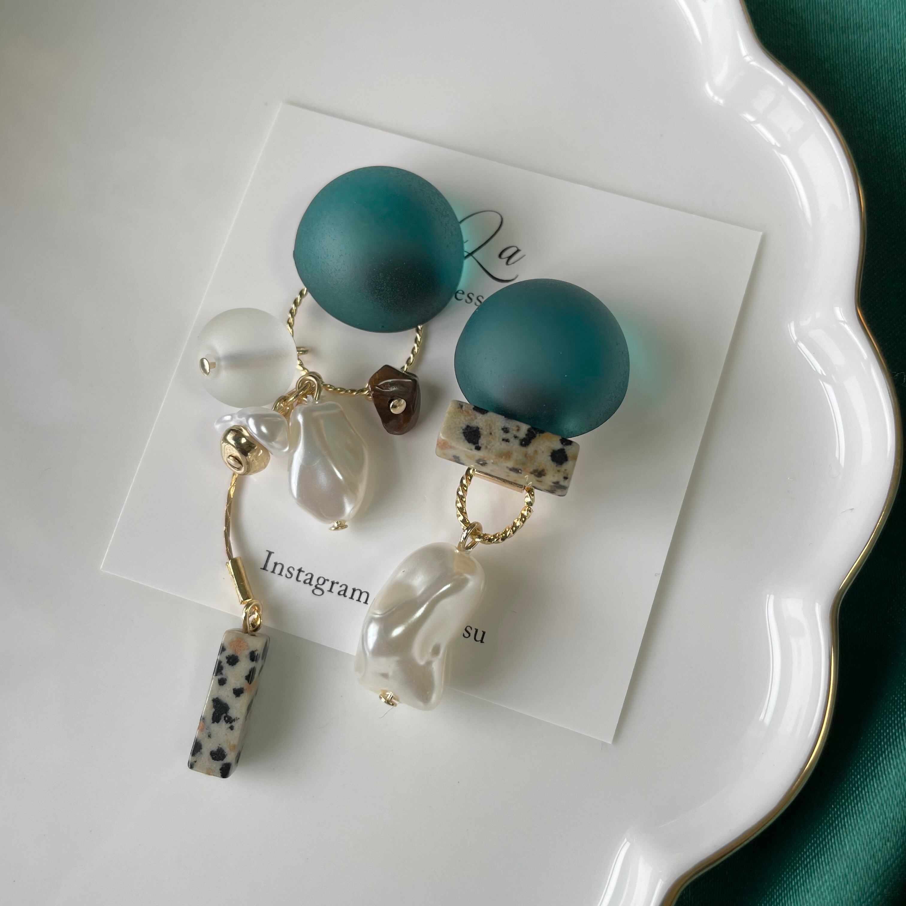 【1点物*】フロストカボション×ダルメシアンアシメピアス