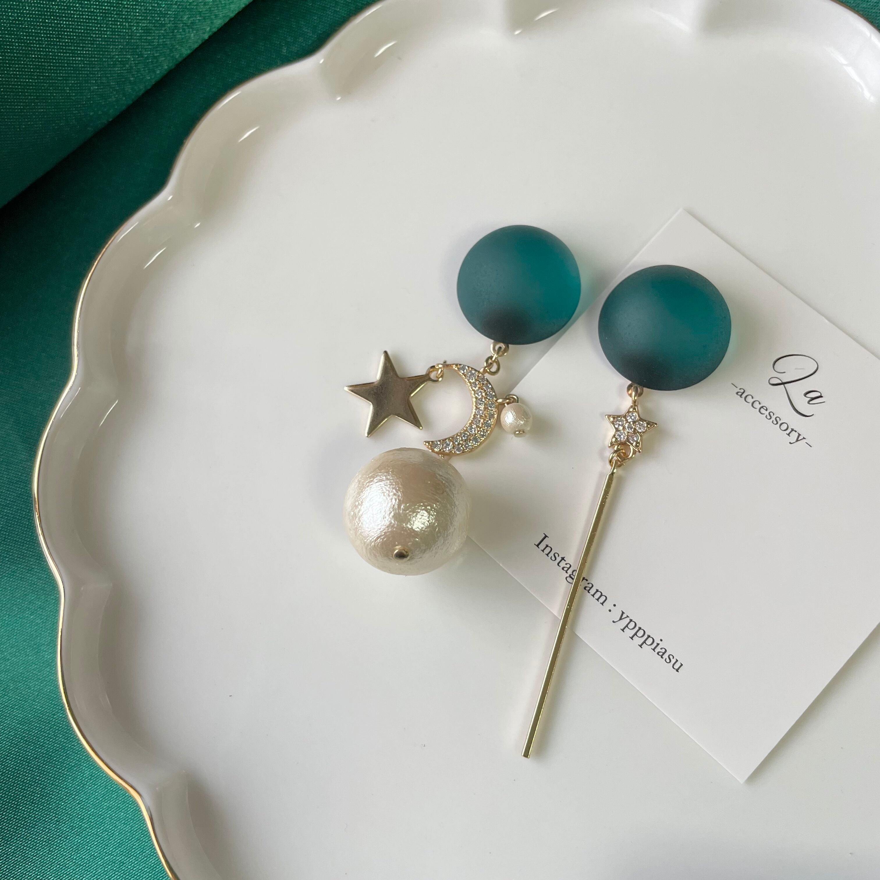 【1点物*】フロストカボション×スタームーンアシメピアス