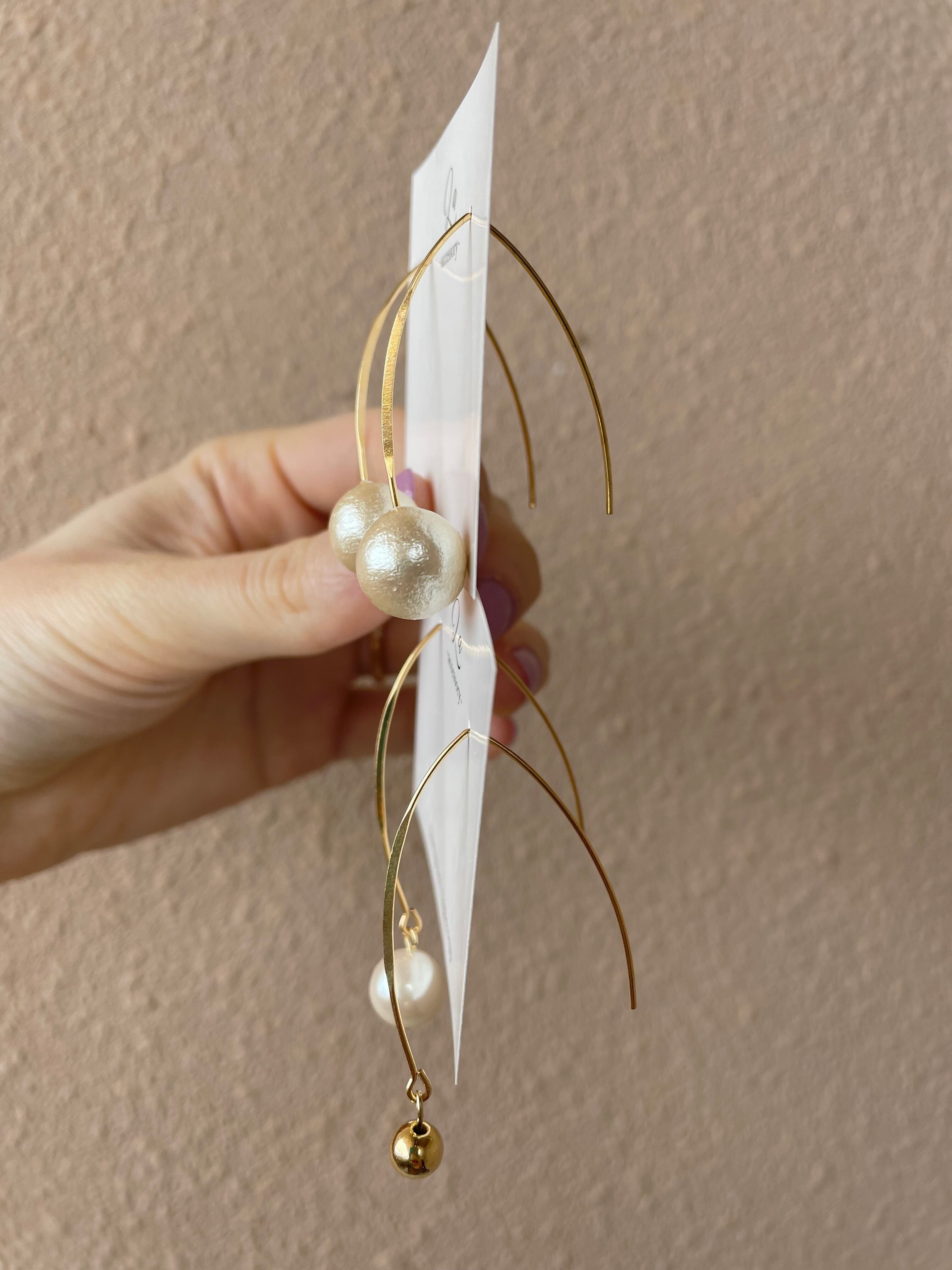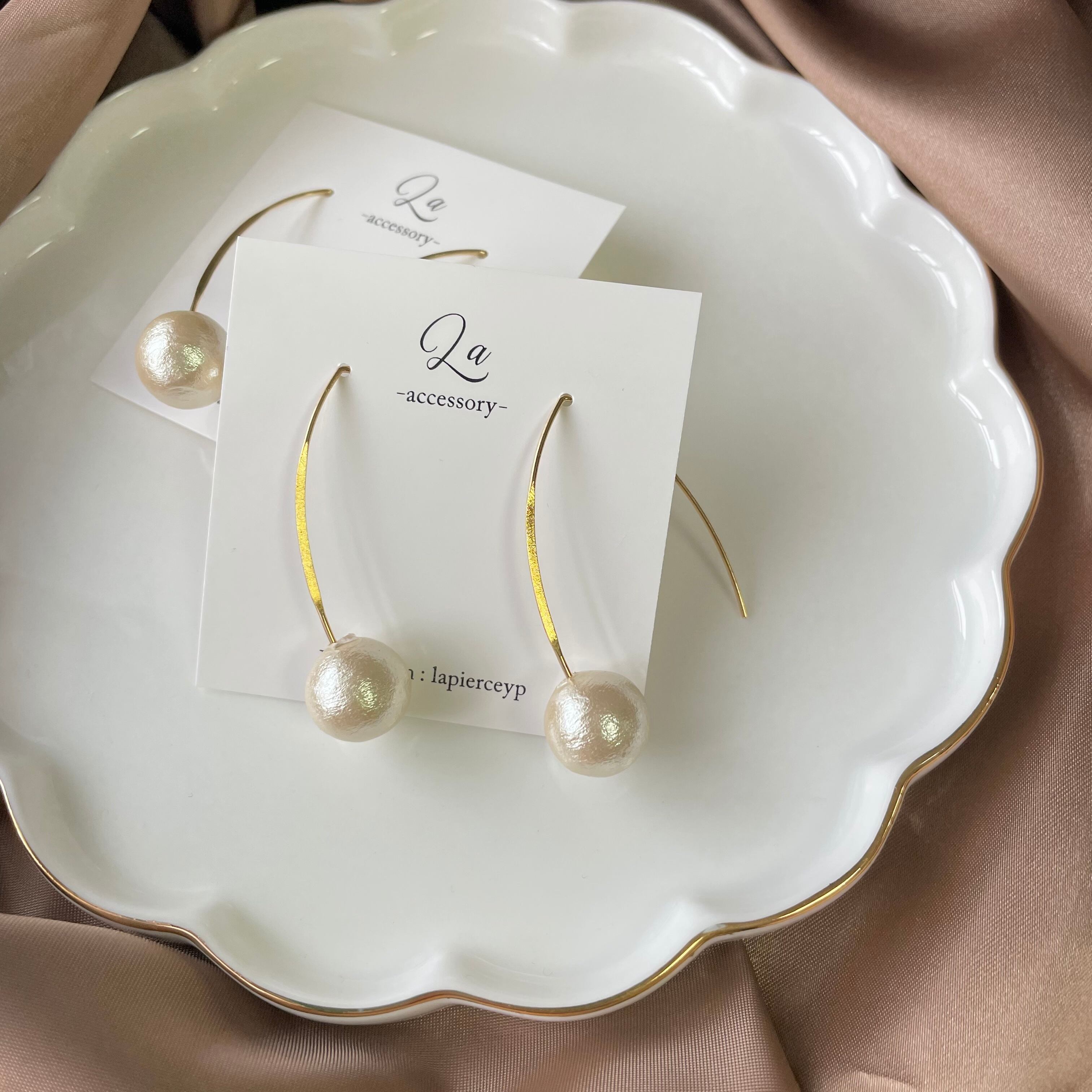 【金具変更不可*】アメリカンフープピアス 高品質コットンパール