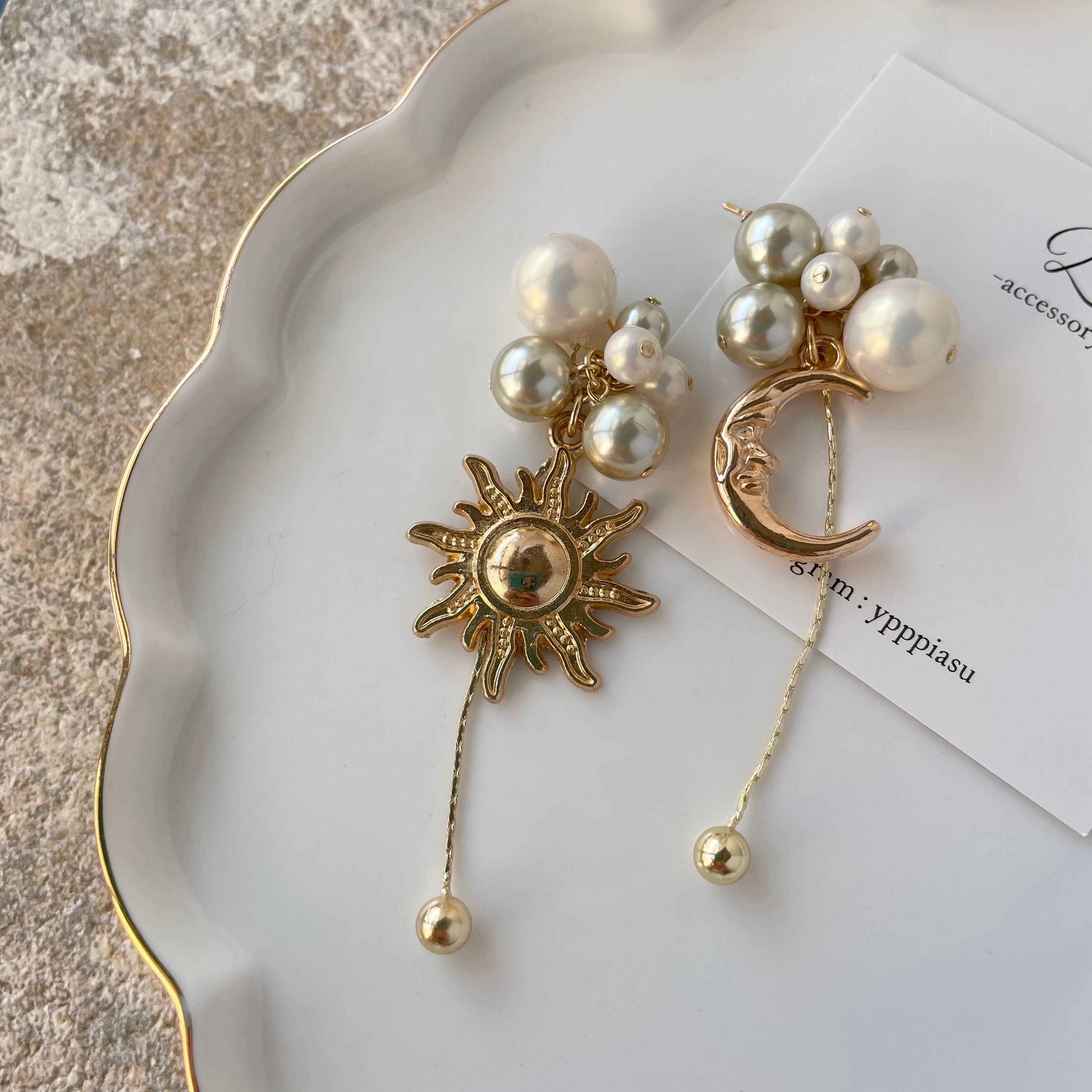 太陽と月がモチーフのピアスはオールシーズン人気です♥︎︎∗︎*゚