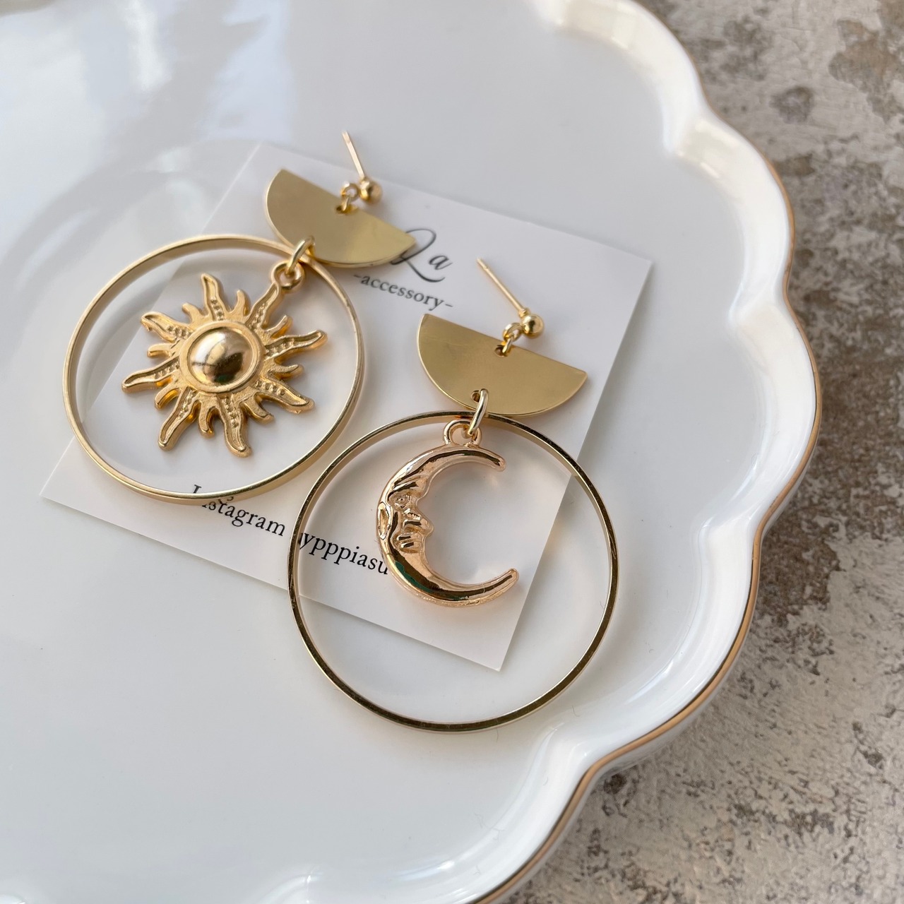 太陽と月がモチーフのピアスはオールシーズン人気です♥︎︎∗︎*゚