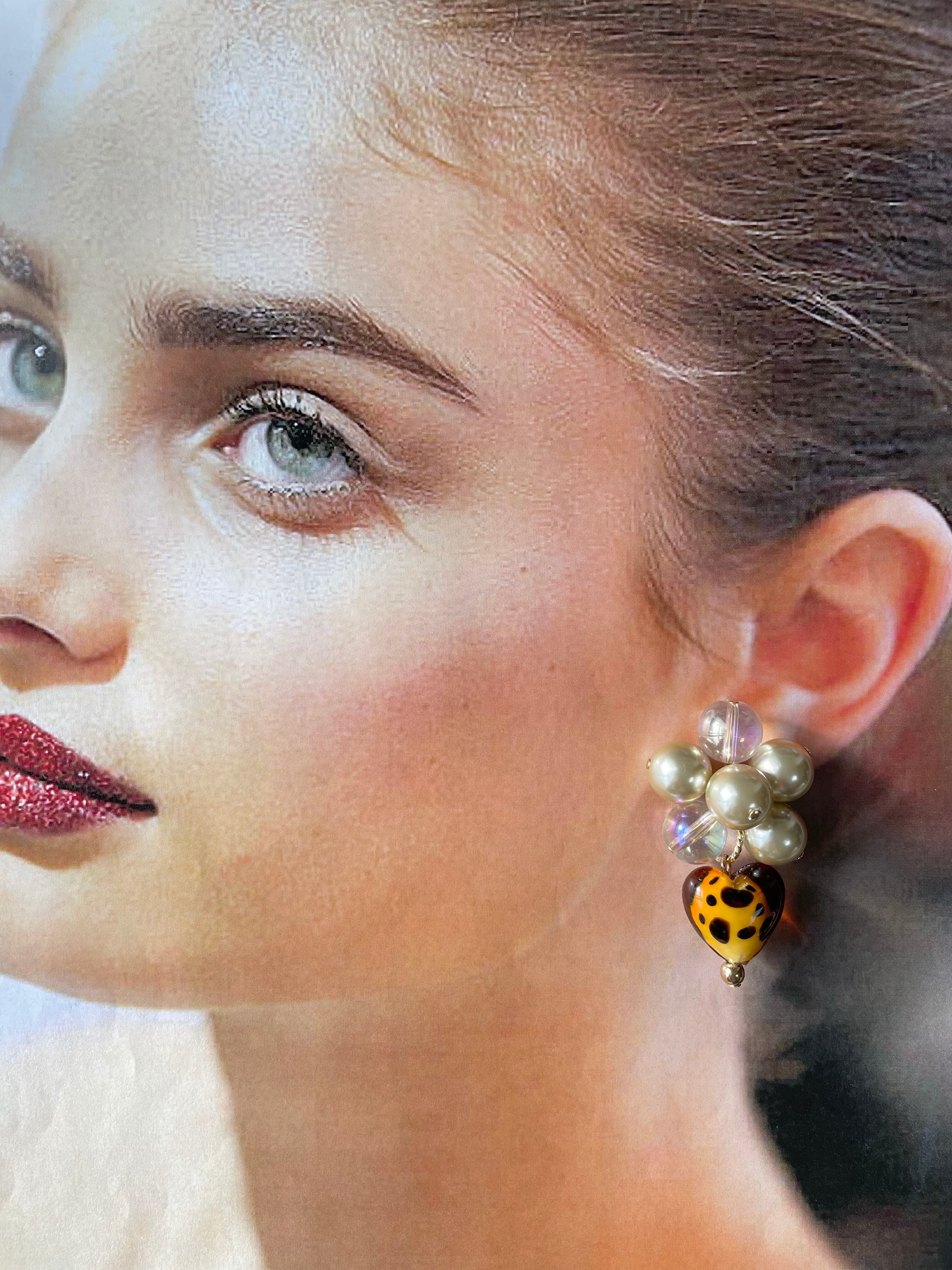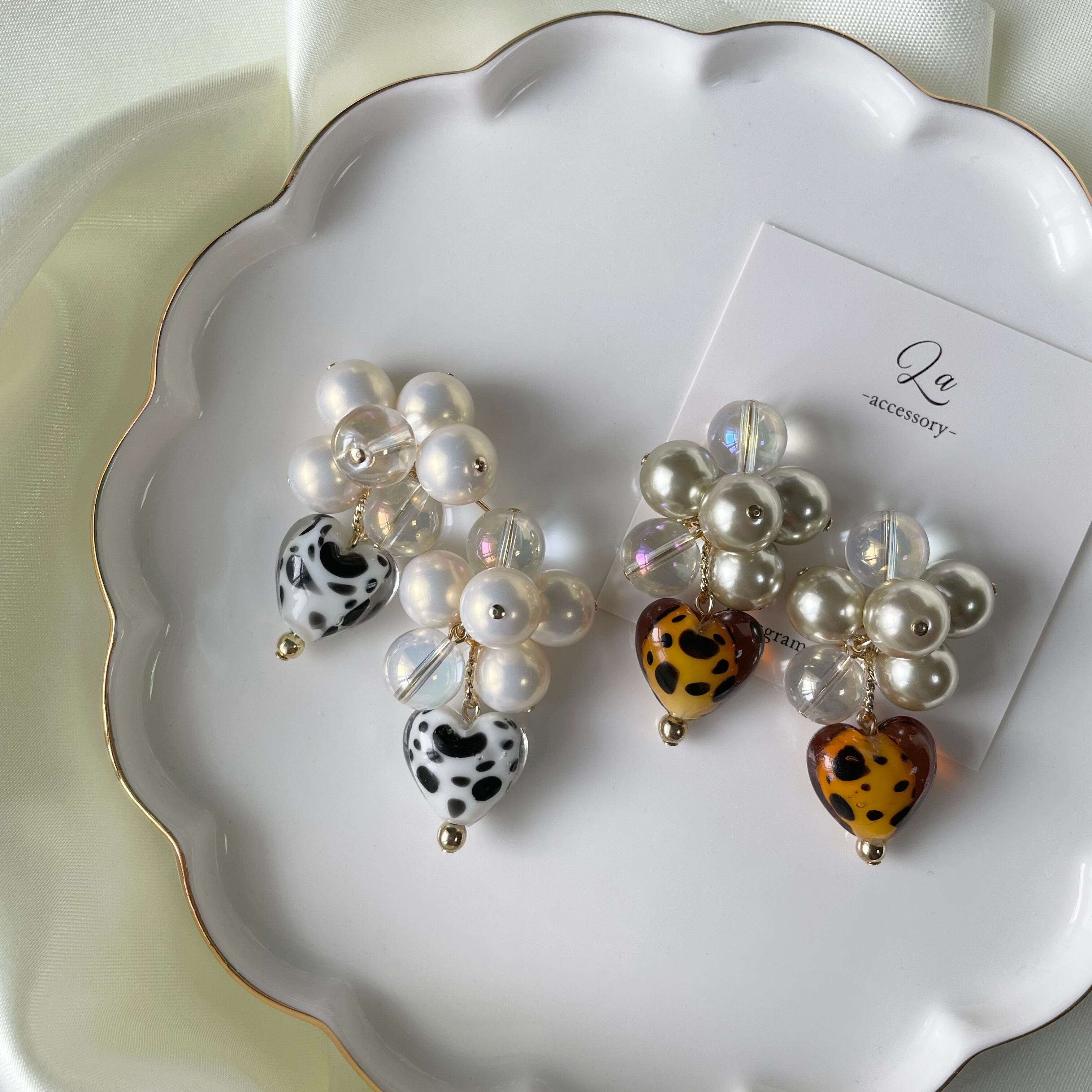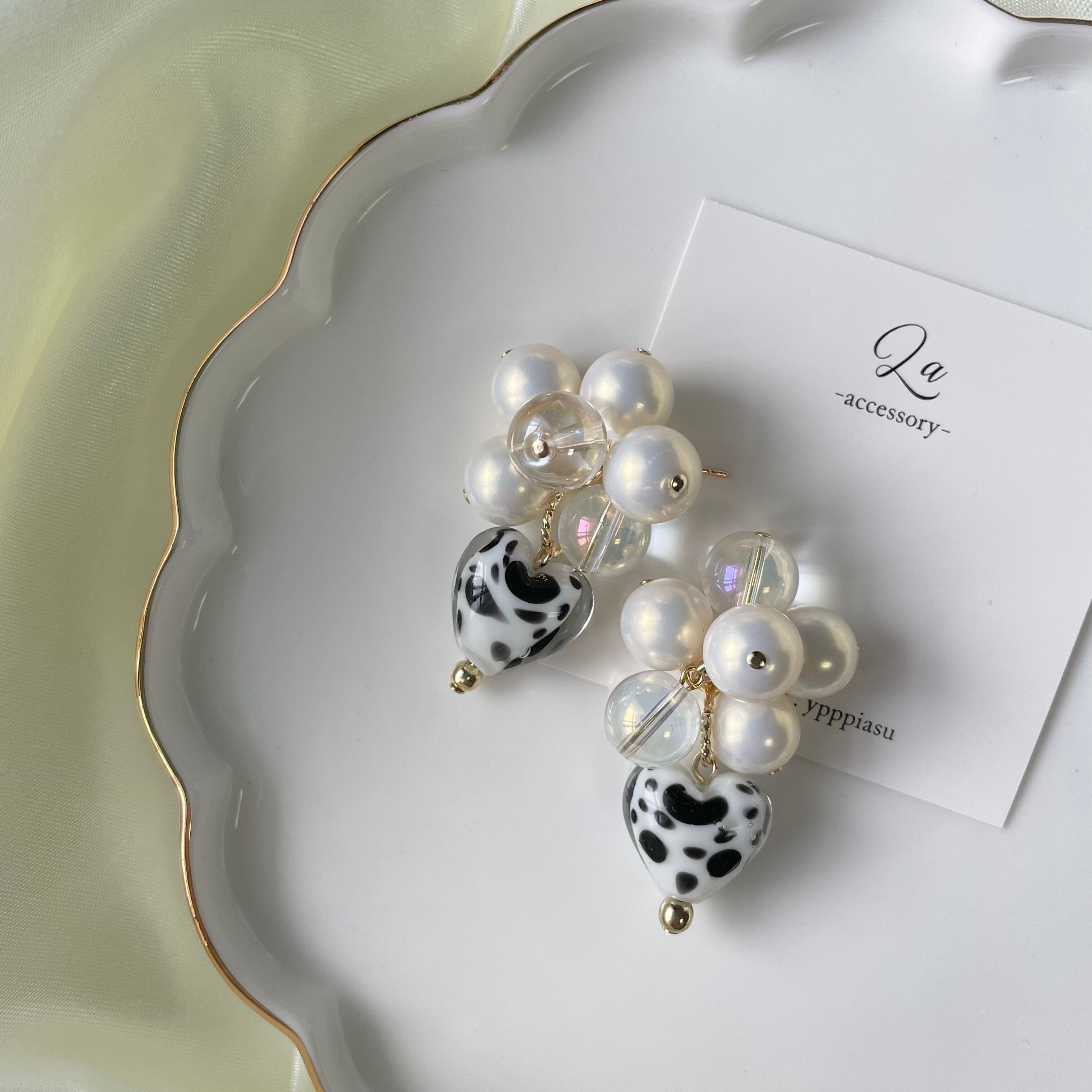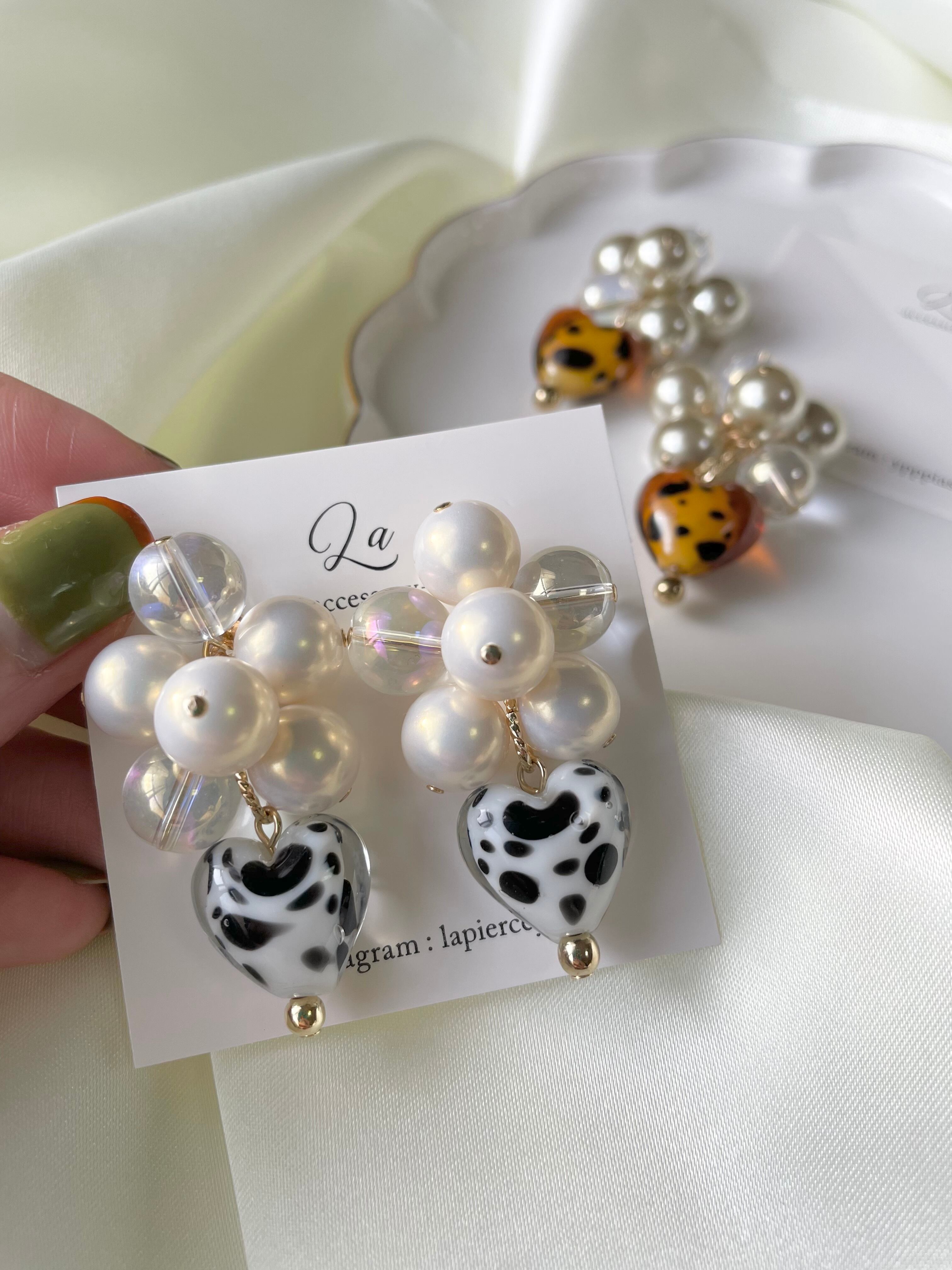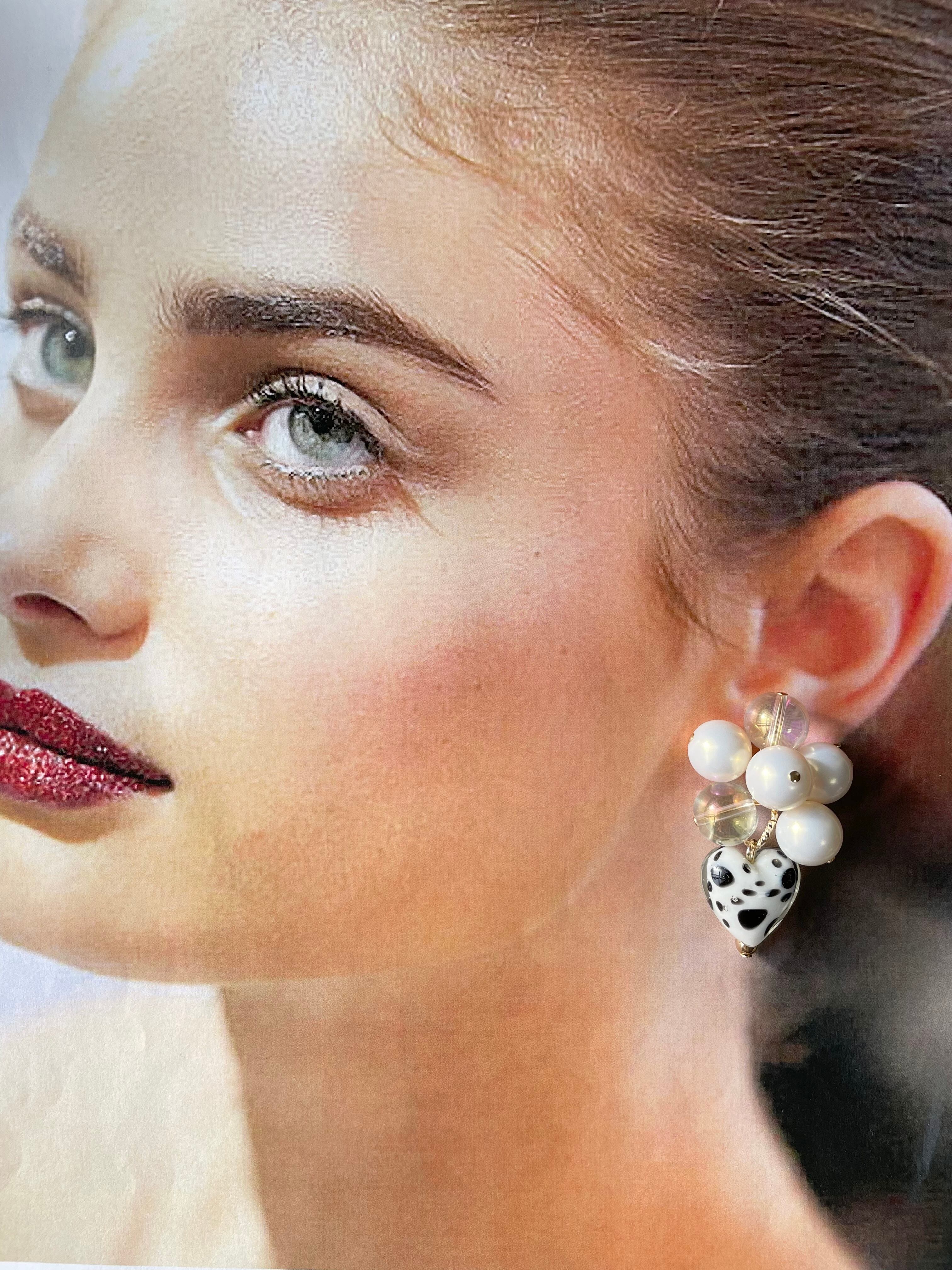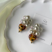 ダルメシアンガラスハートじゃらじゃらピアス