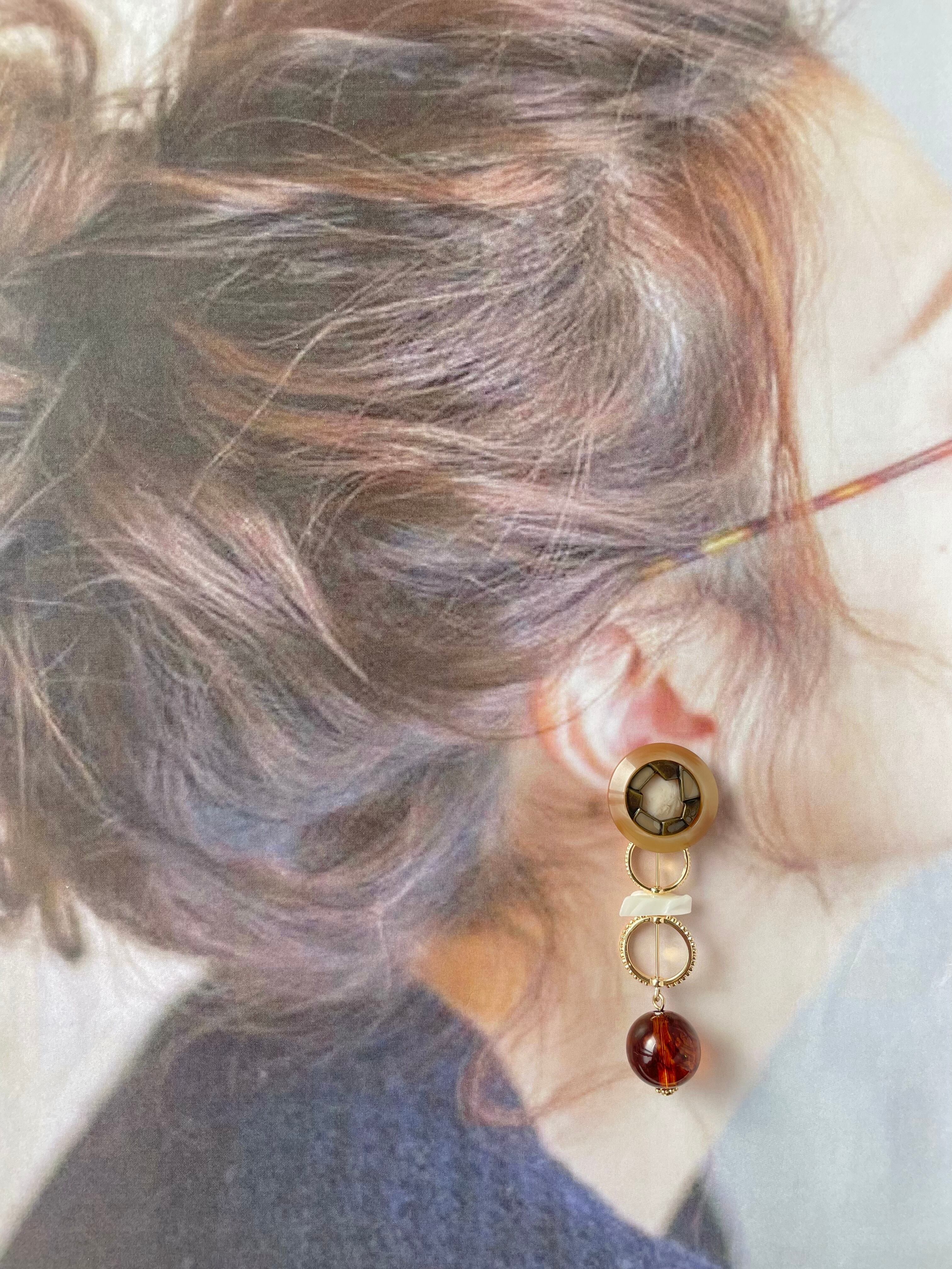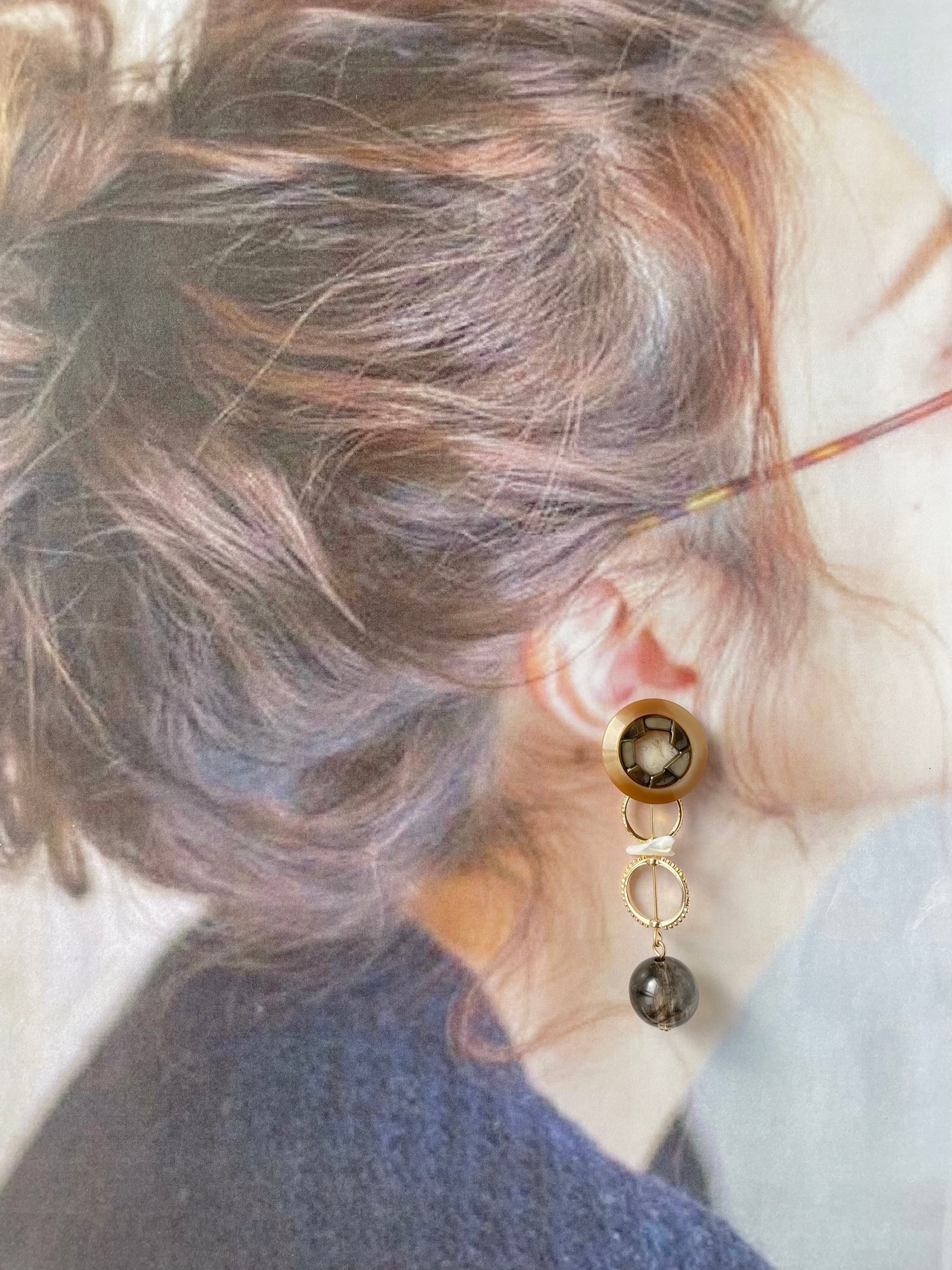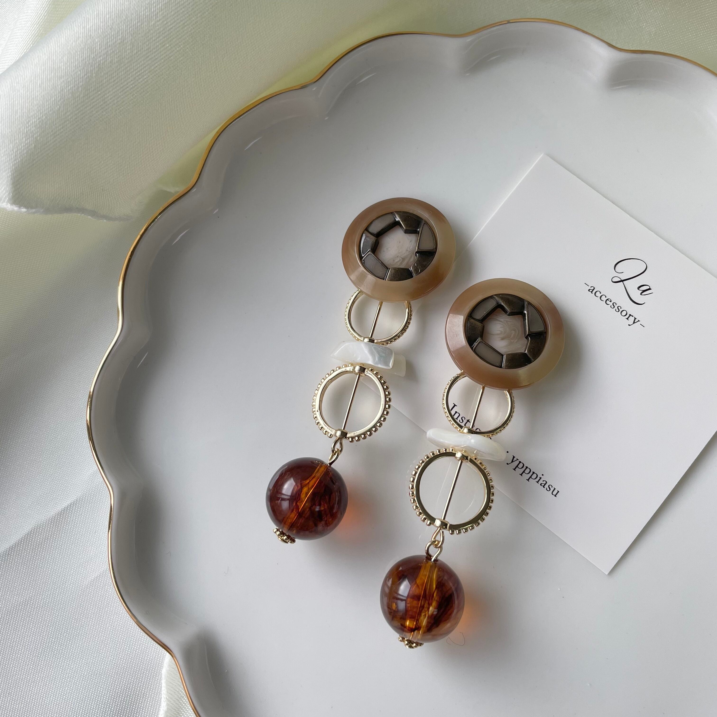 アンティークボタン×ダブルリングピアス