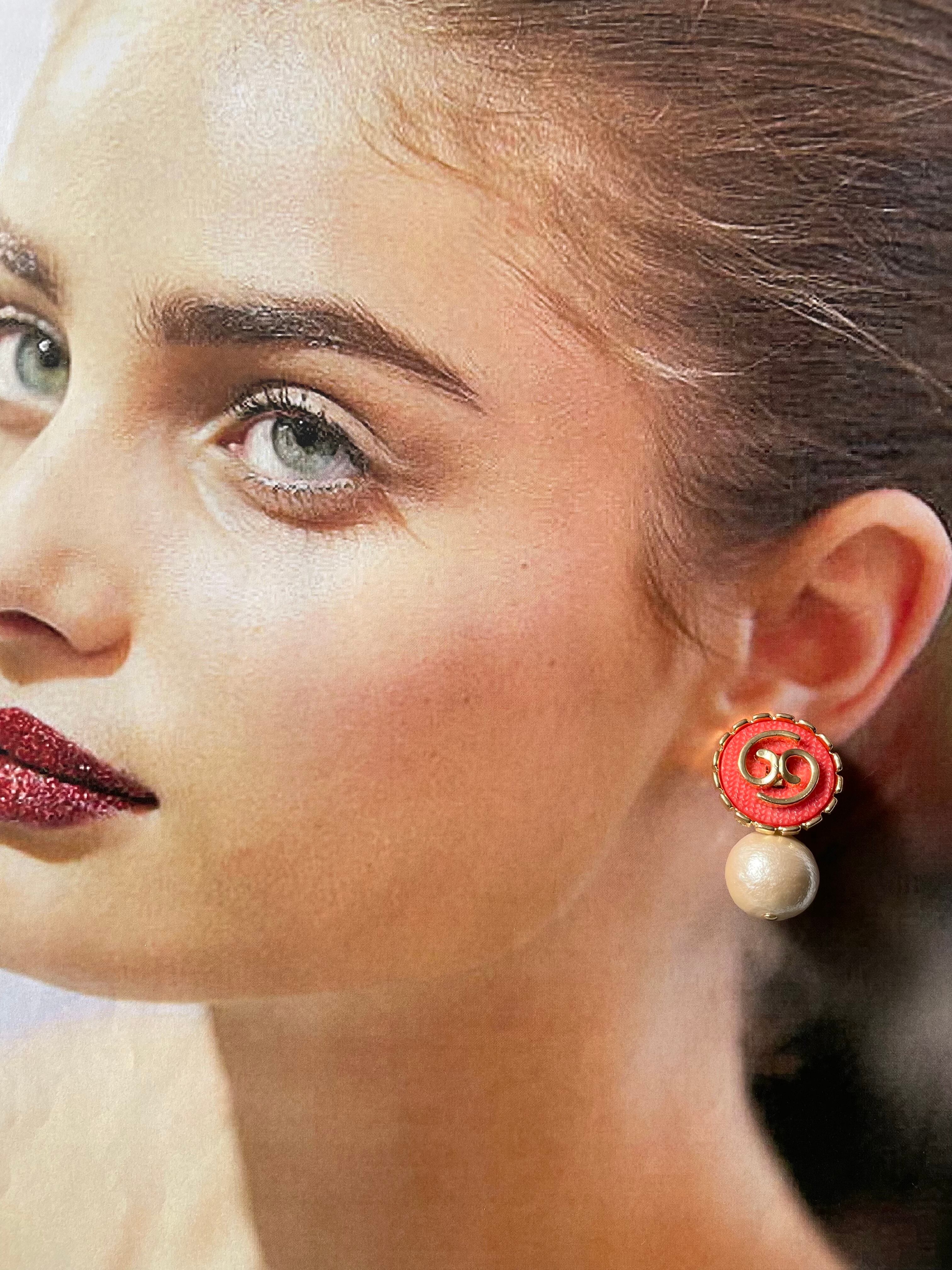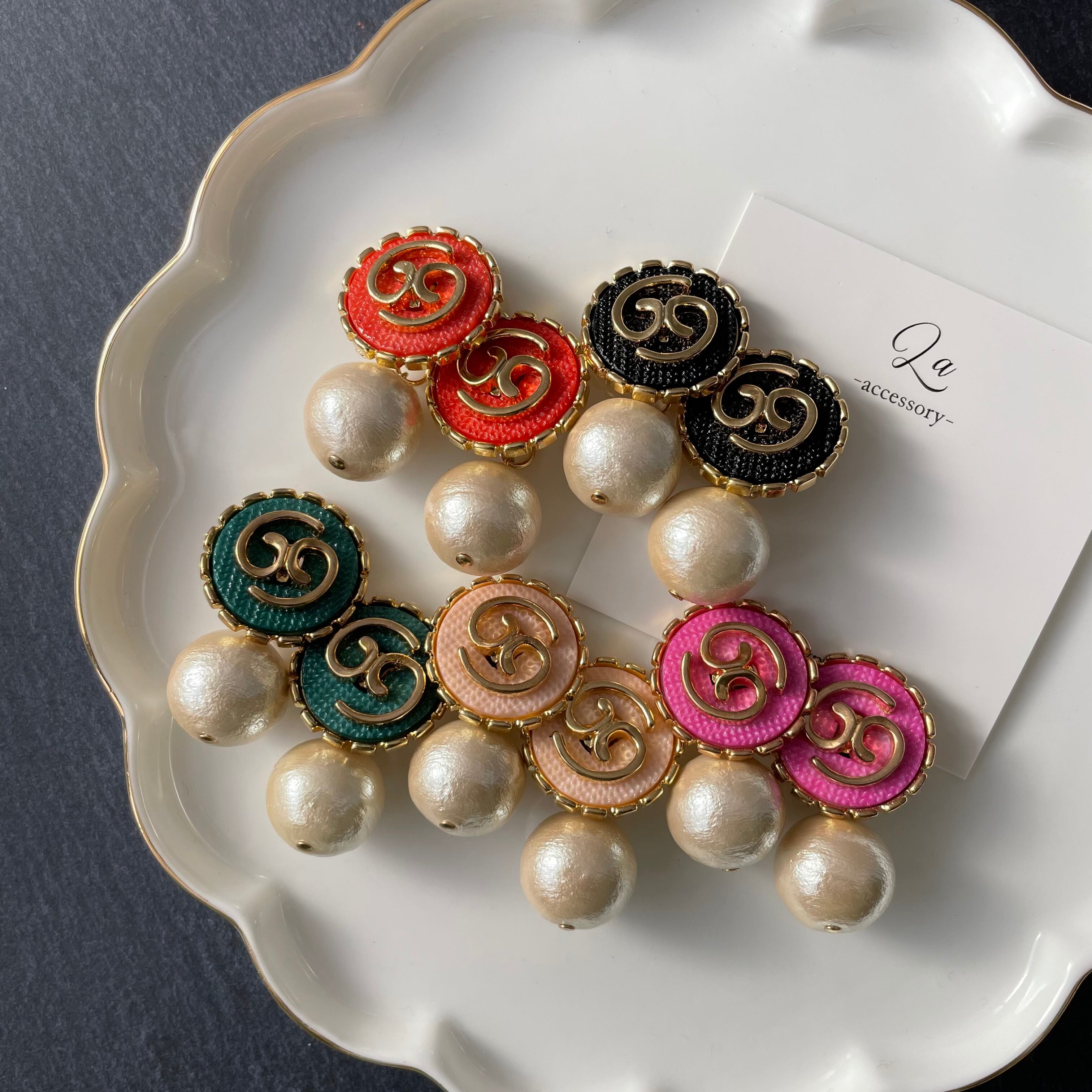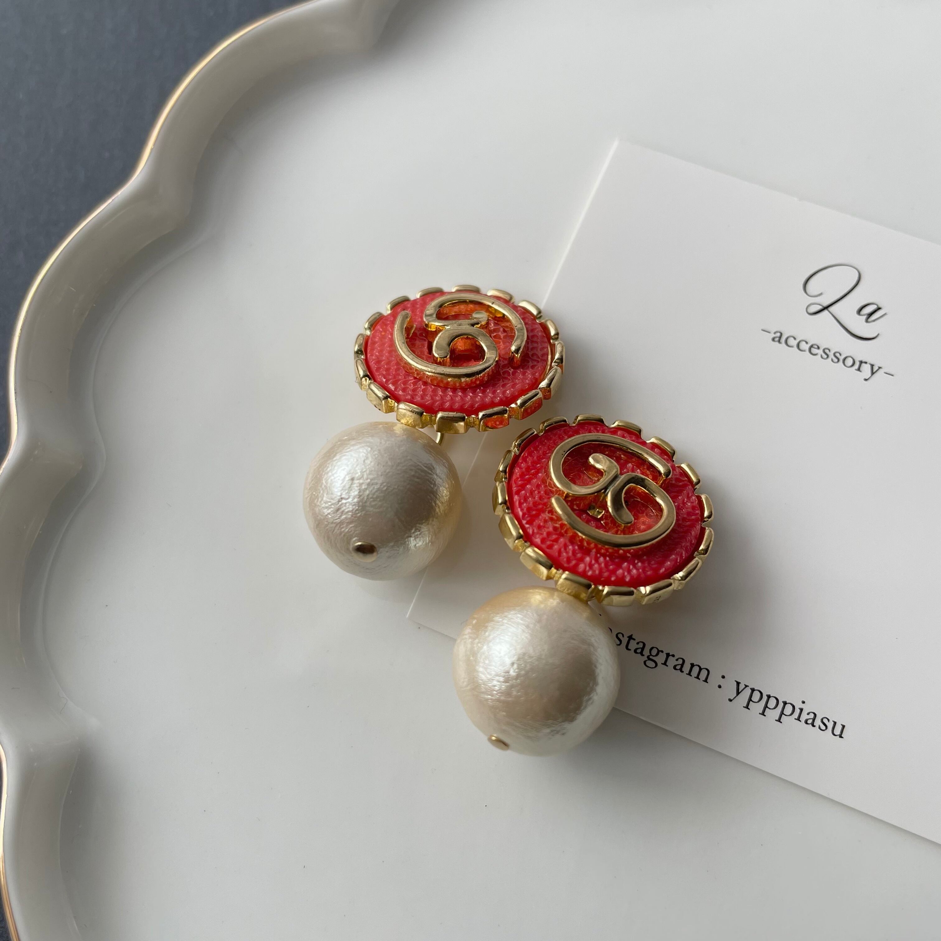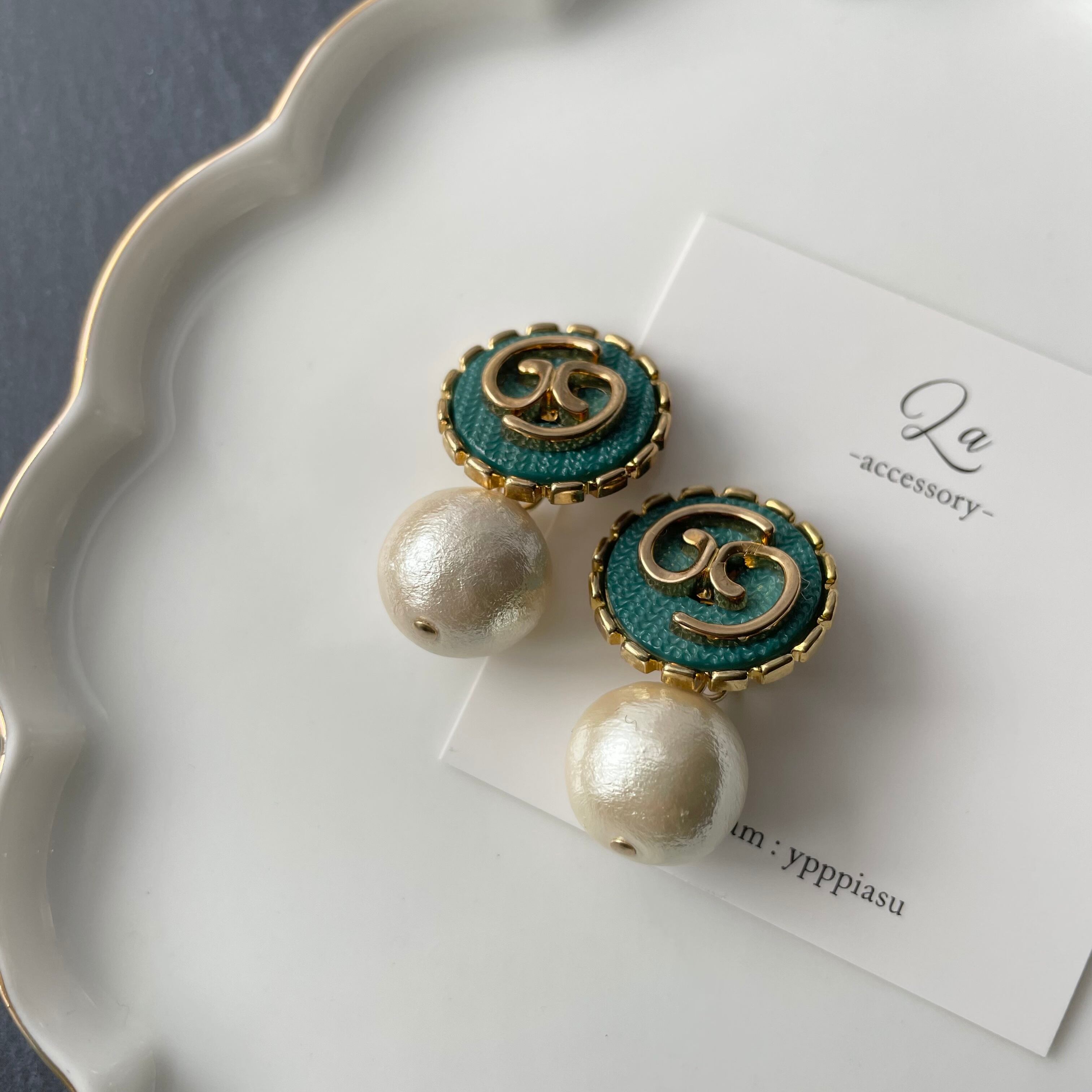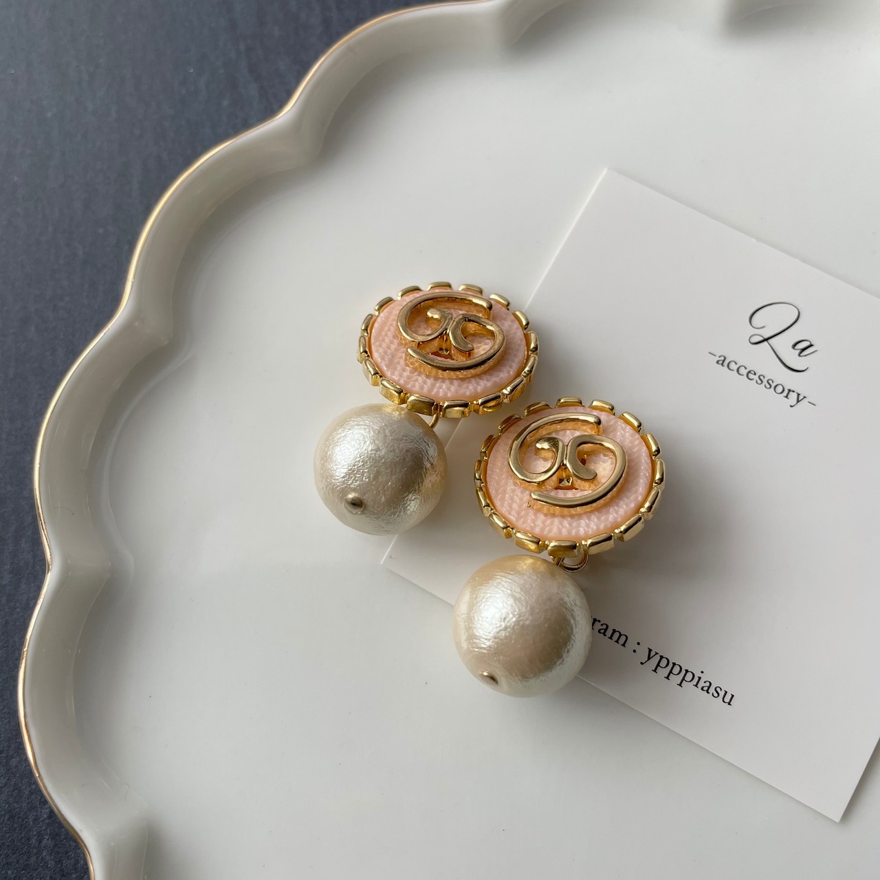 【1点物*】ポーランドボタン×高品質コットンパールピアス
