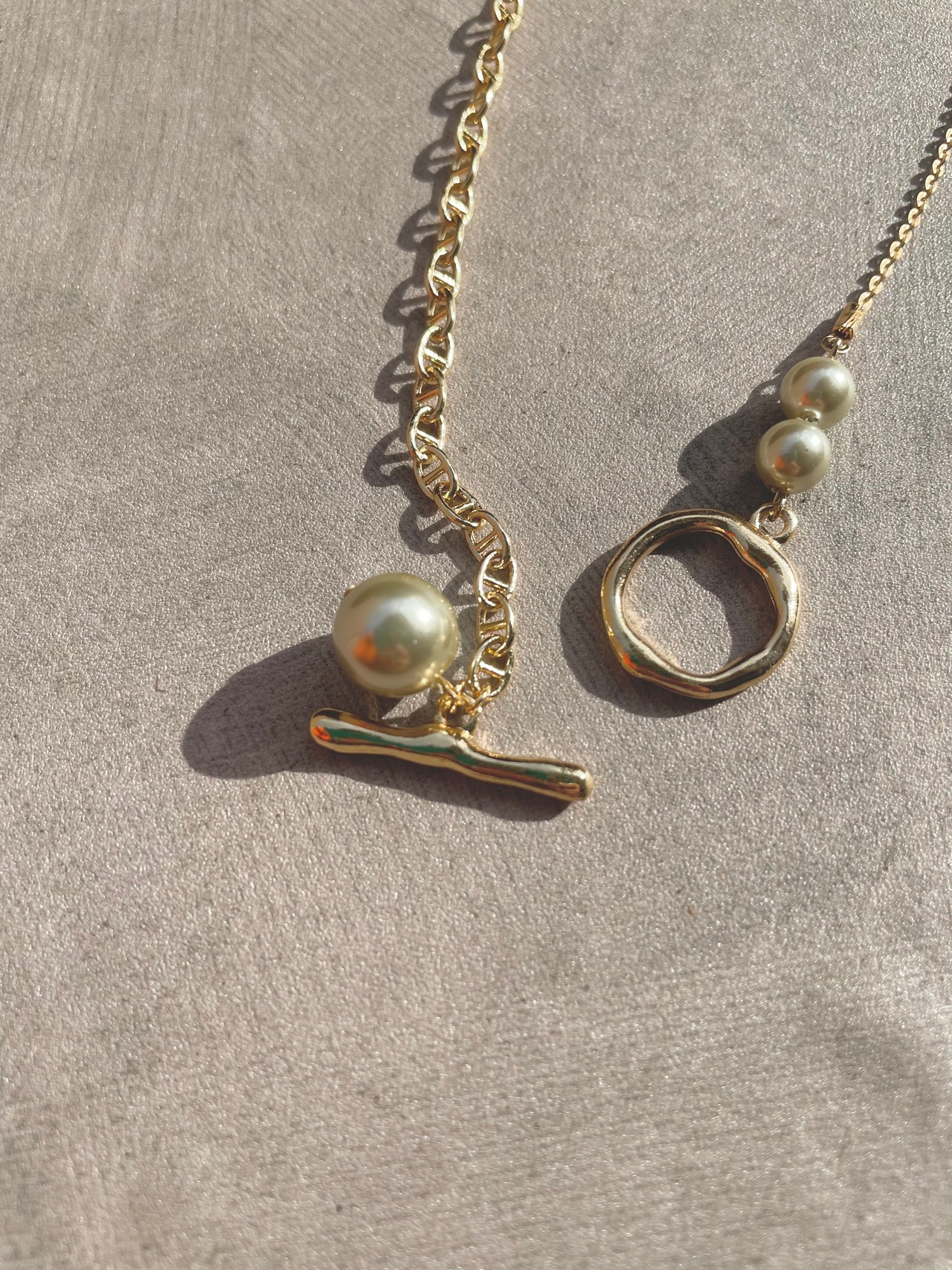 2種類のチェーンやパールを使用して、オリジナルのデザインにしました( ⁎ᵕᴗᵕ⁎ )