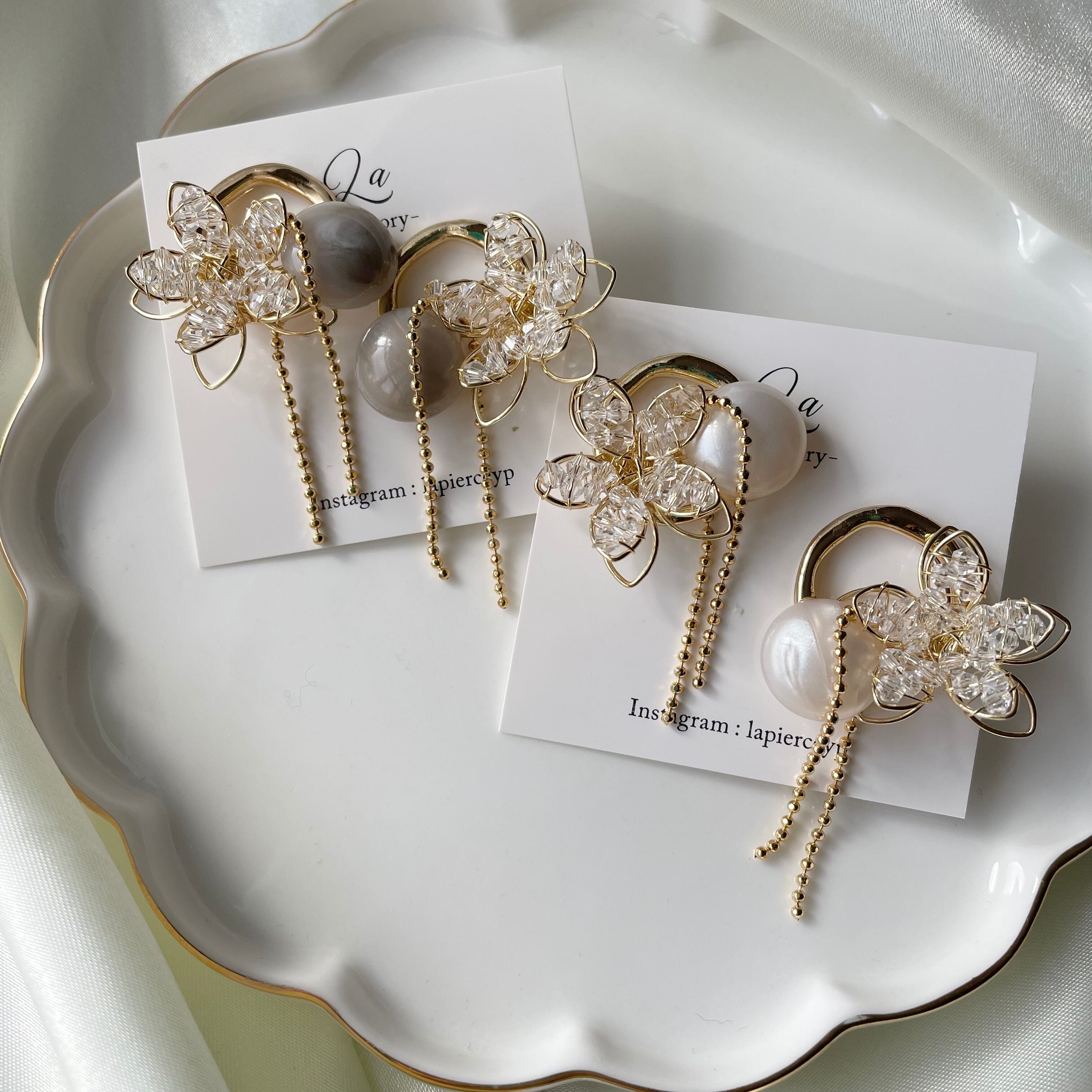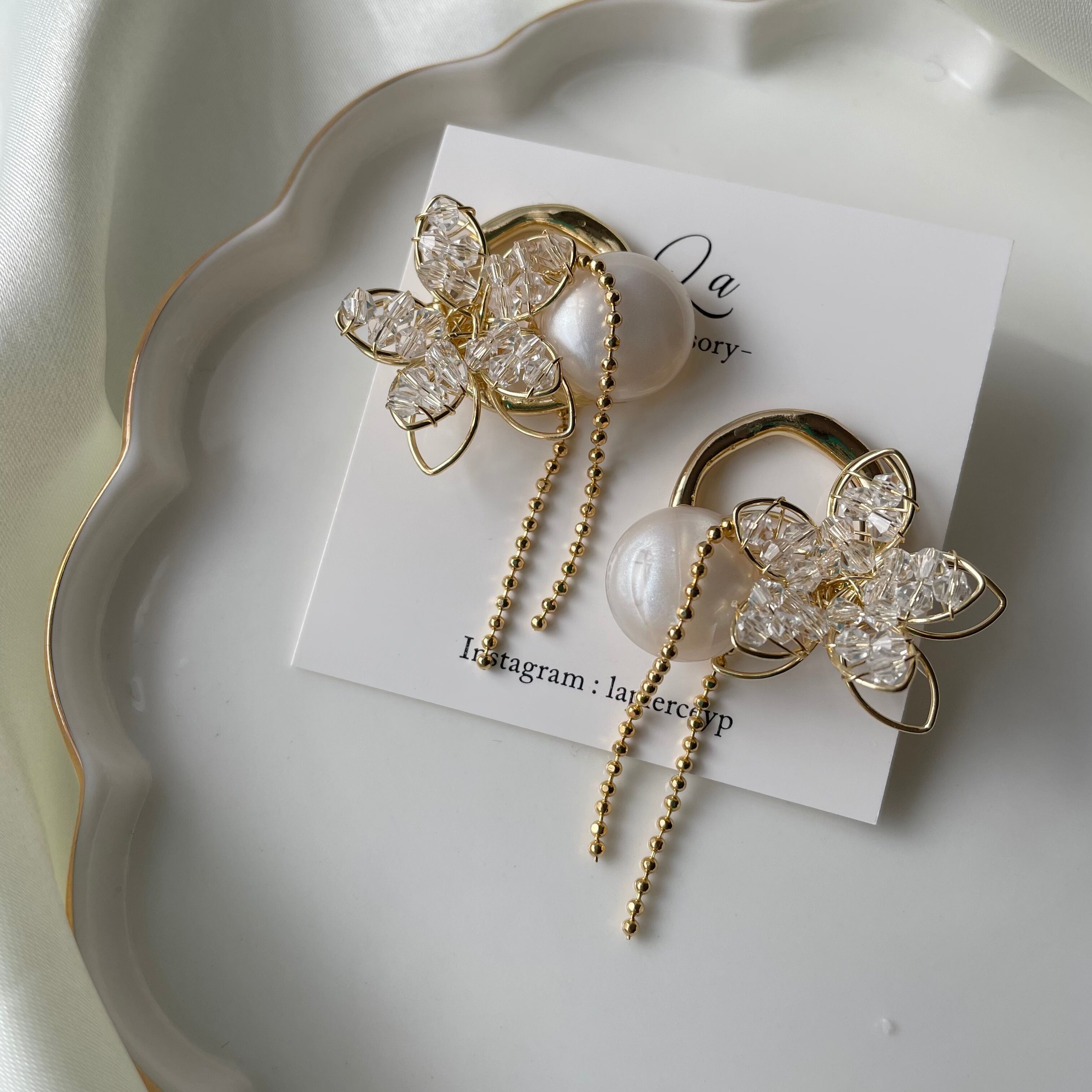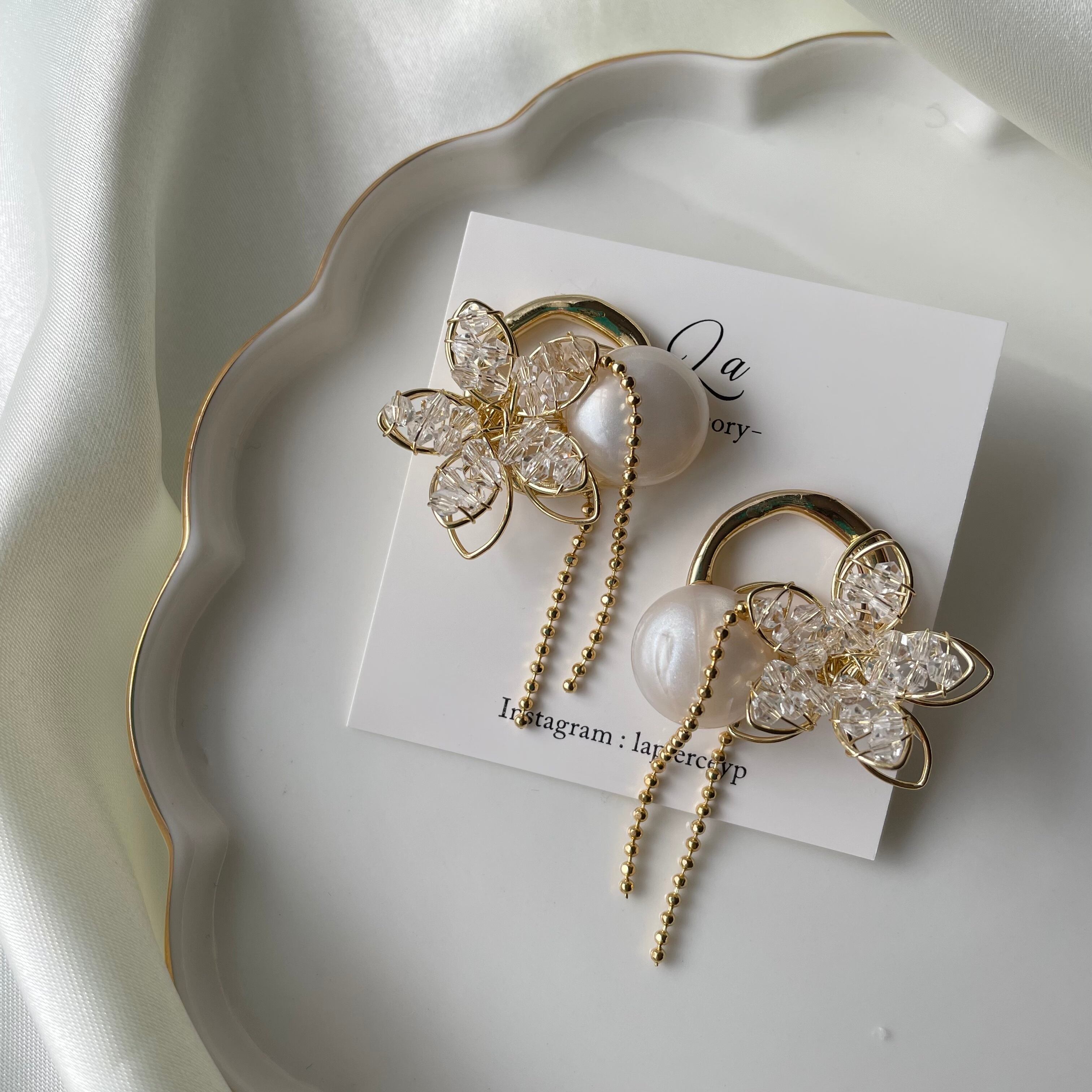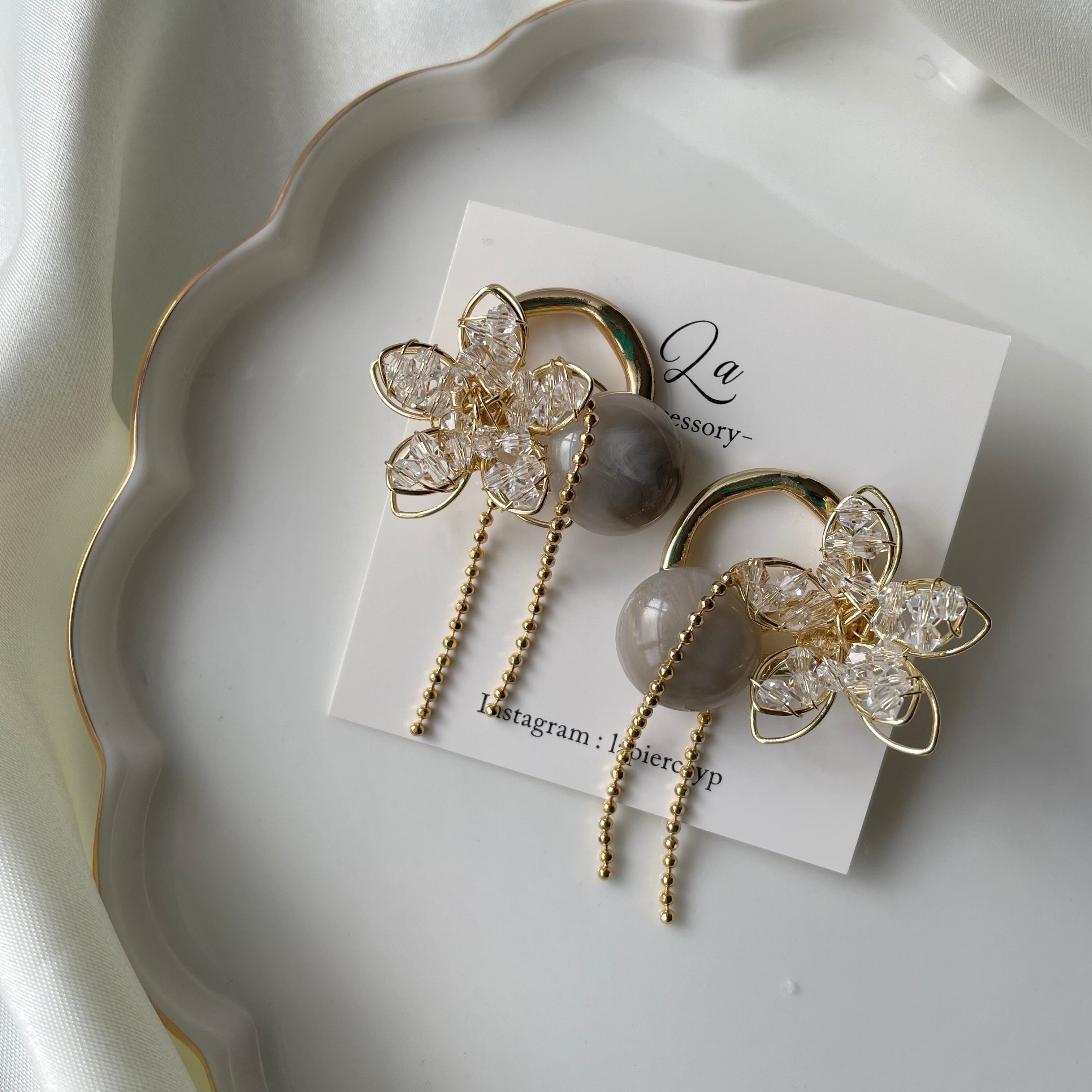 【silver925製 金具変更不可*】 ワイヤーフラワー&ラウンドピアス