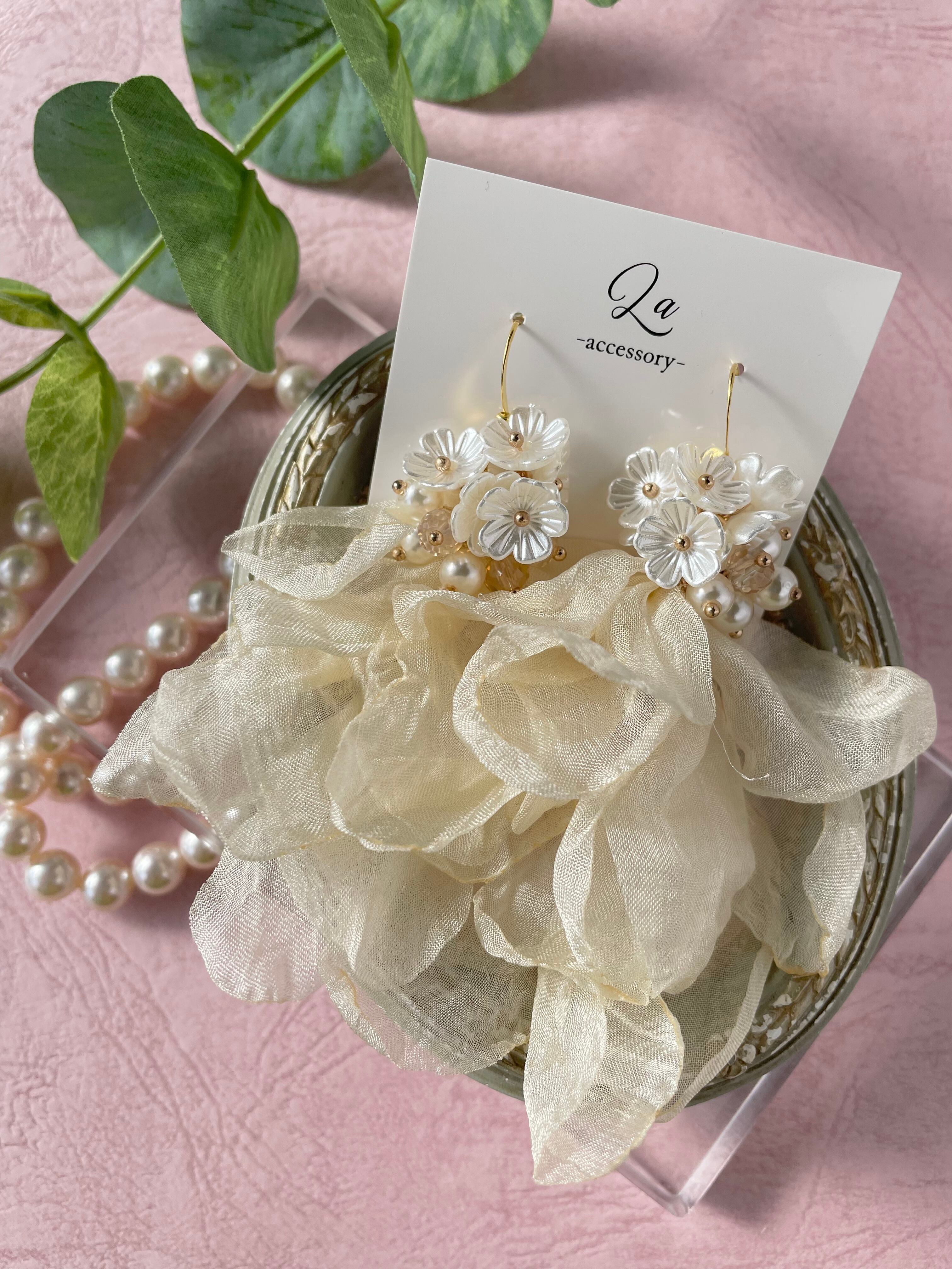 普段使いはもちろん、前撮りや結婚式などの華やかな場にも大活躍する大ぶりピアス♡