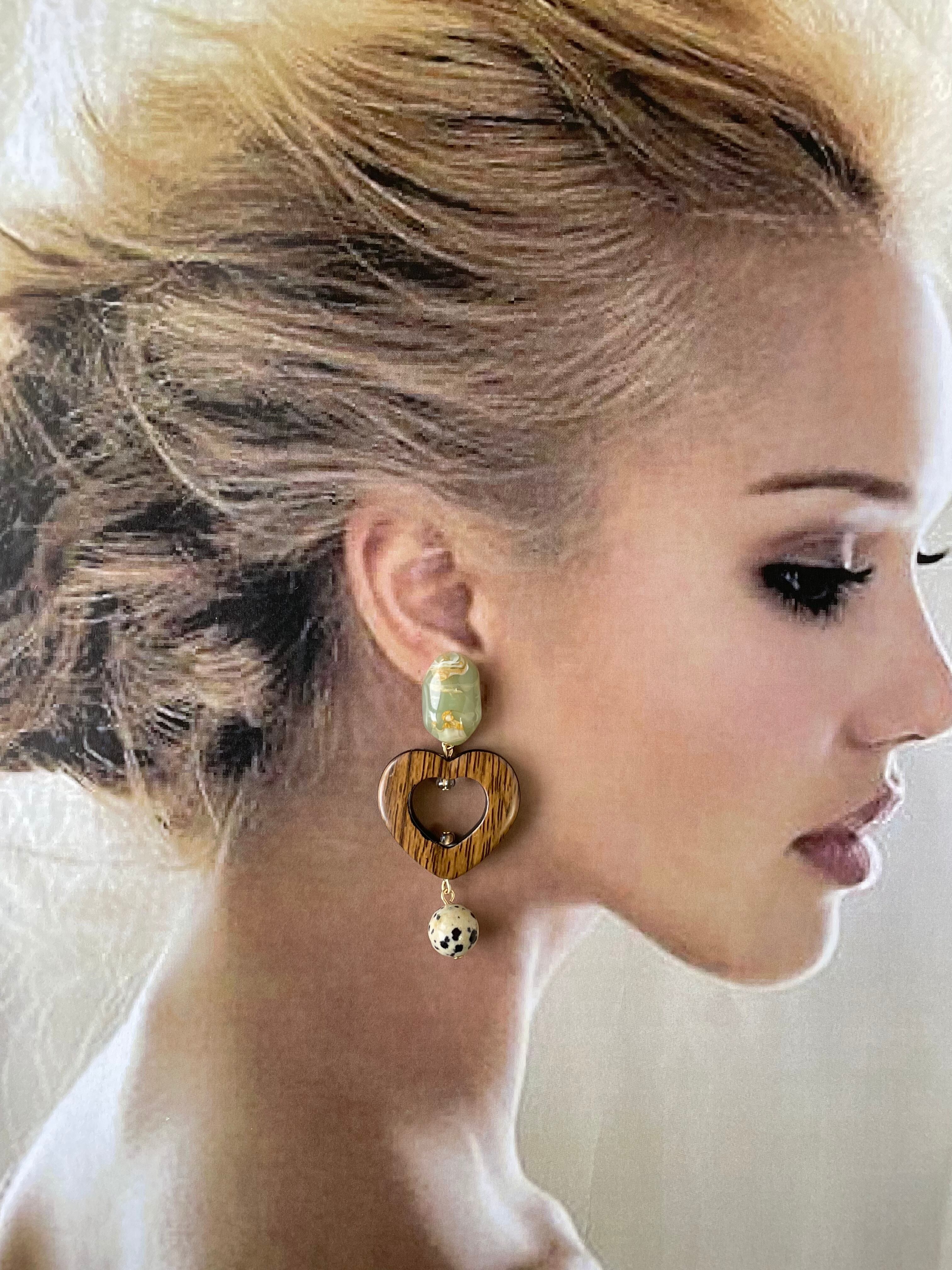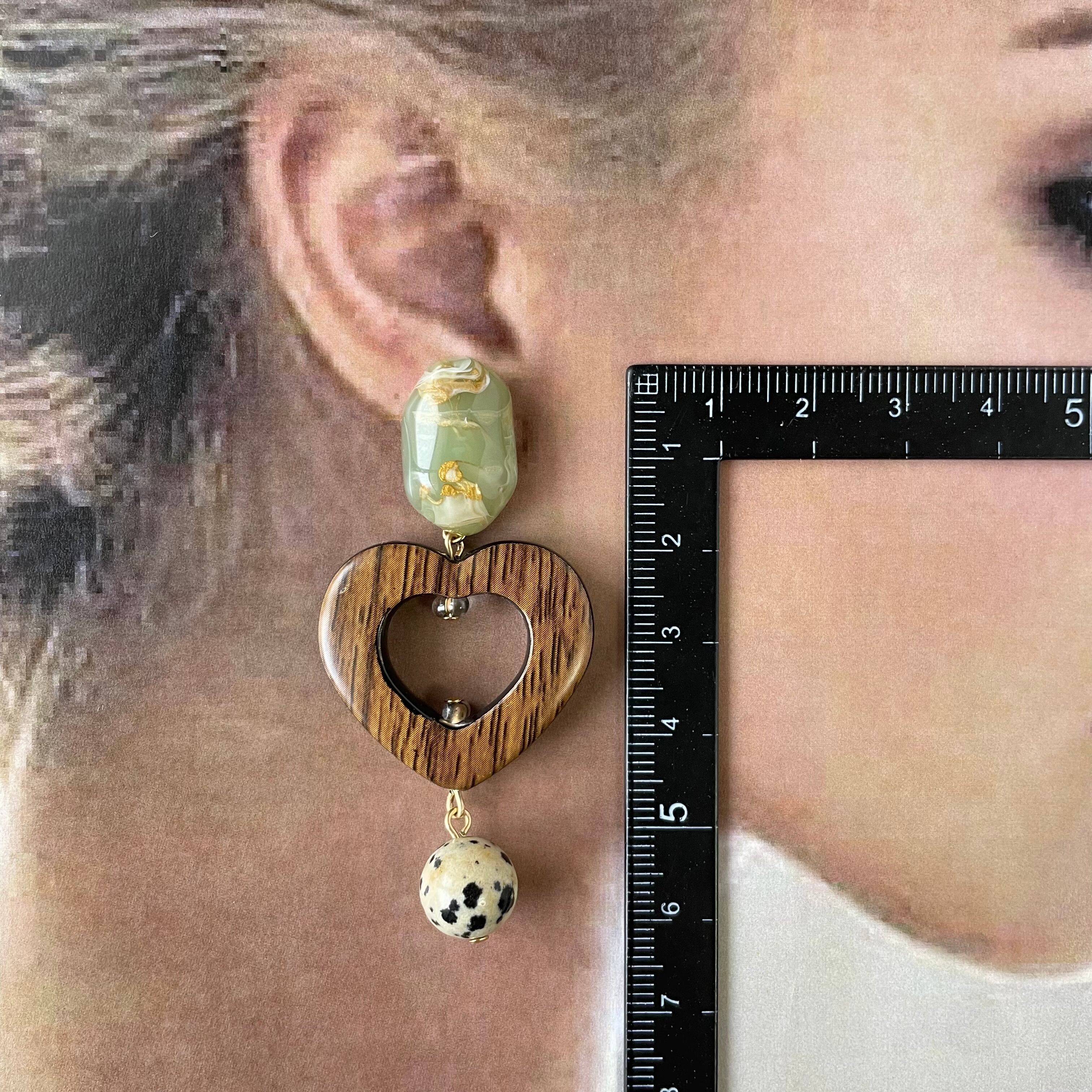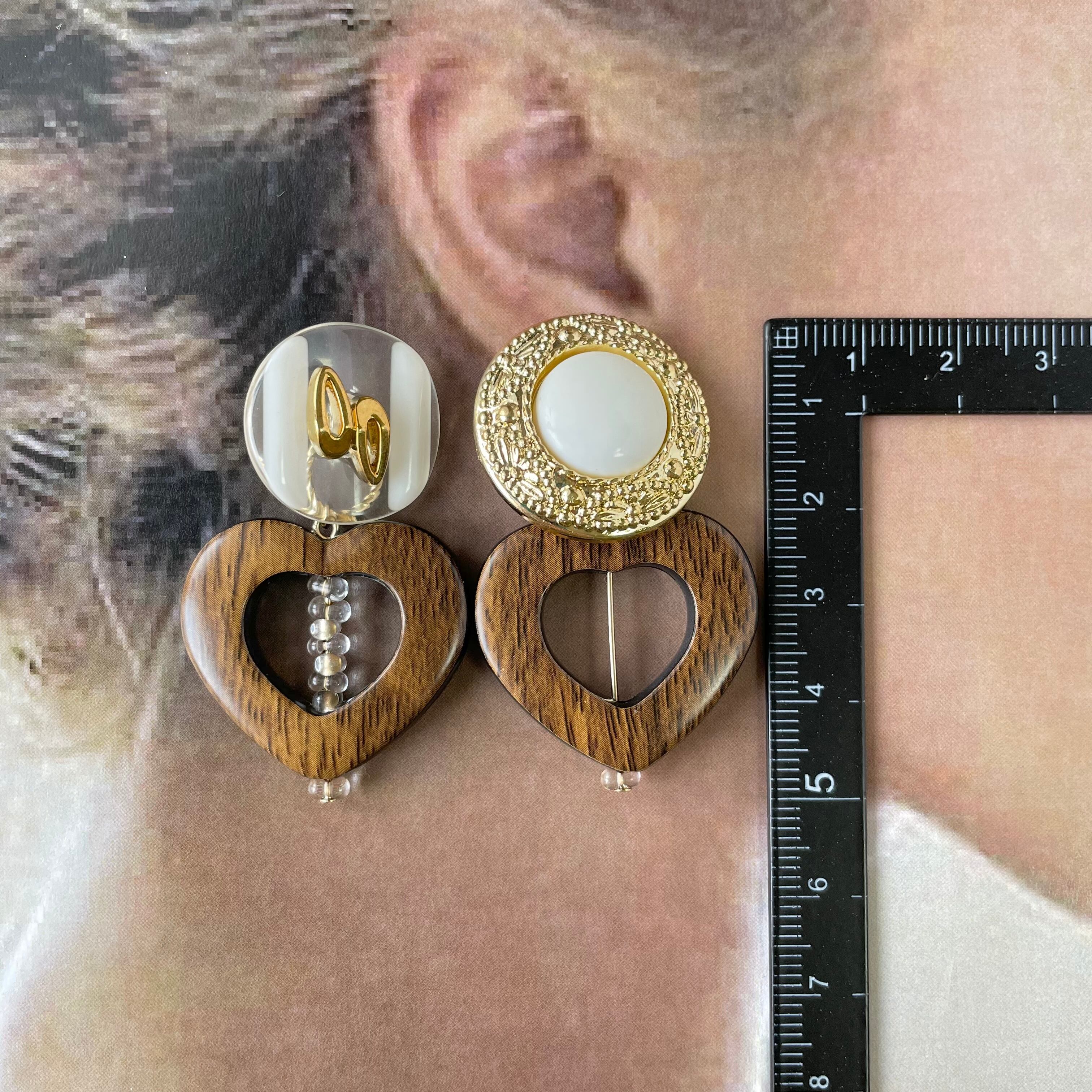 【ピアスのみ 樹脂可*】アンティークスタイルウッドハートピアス