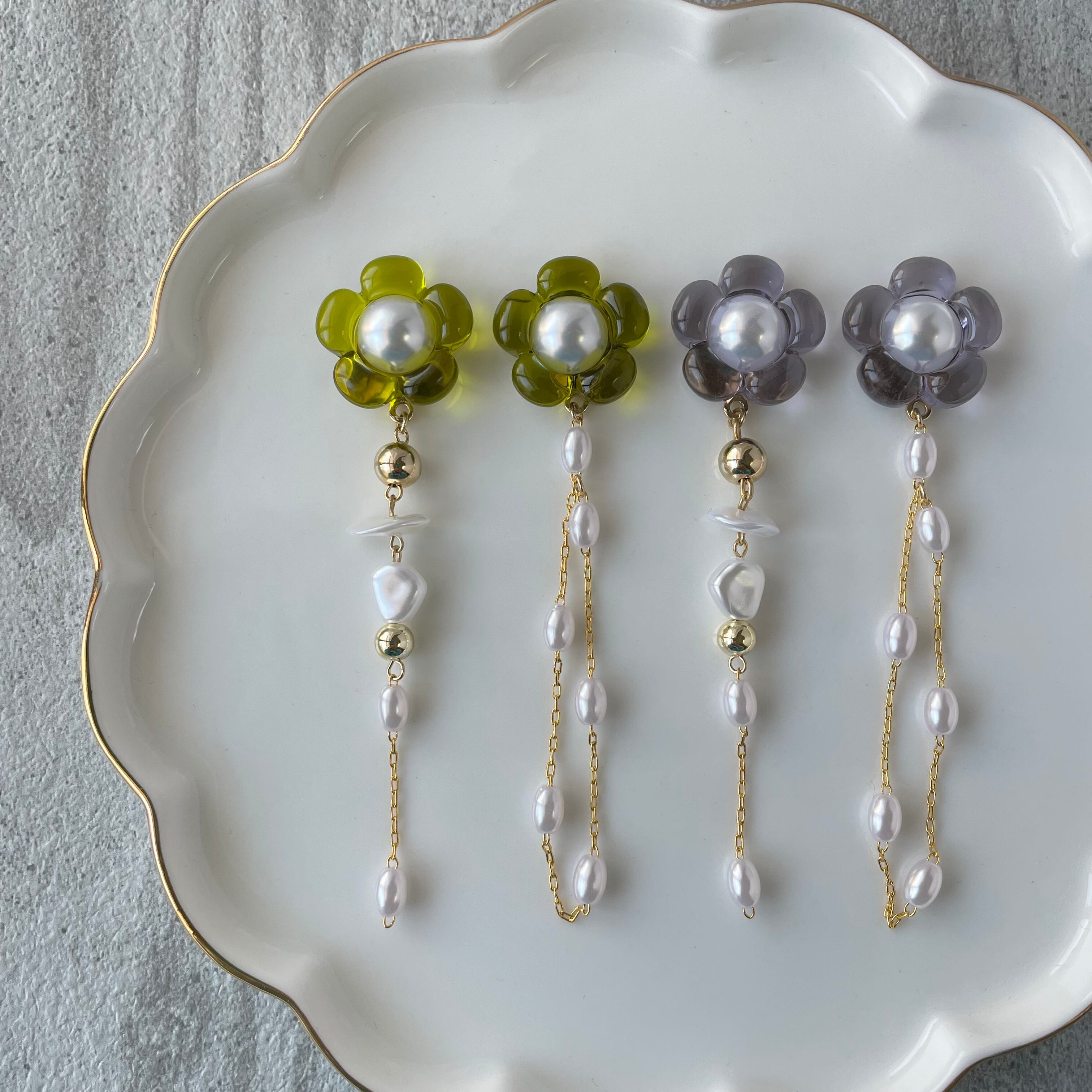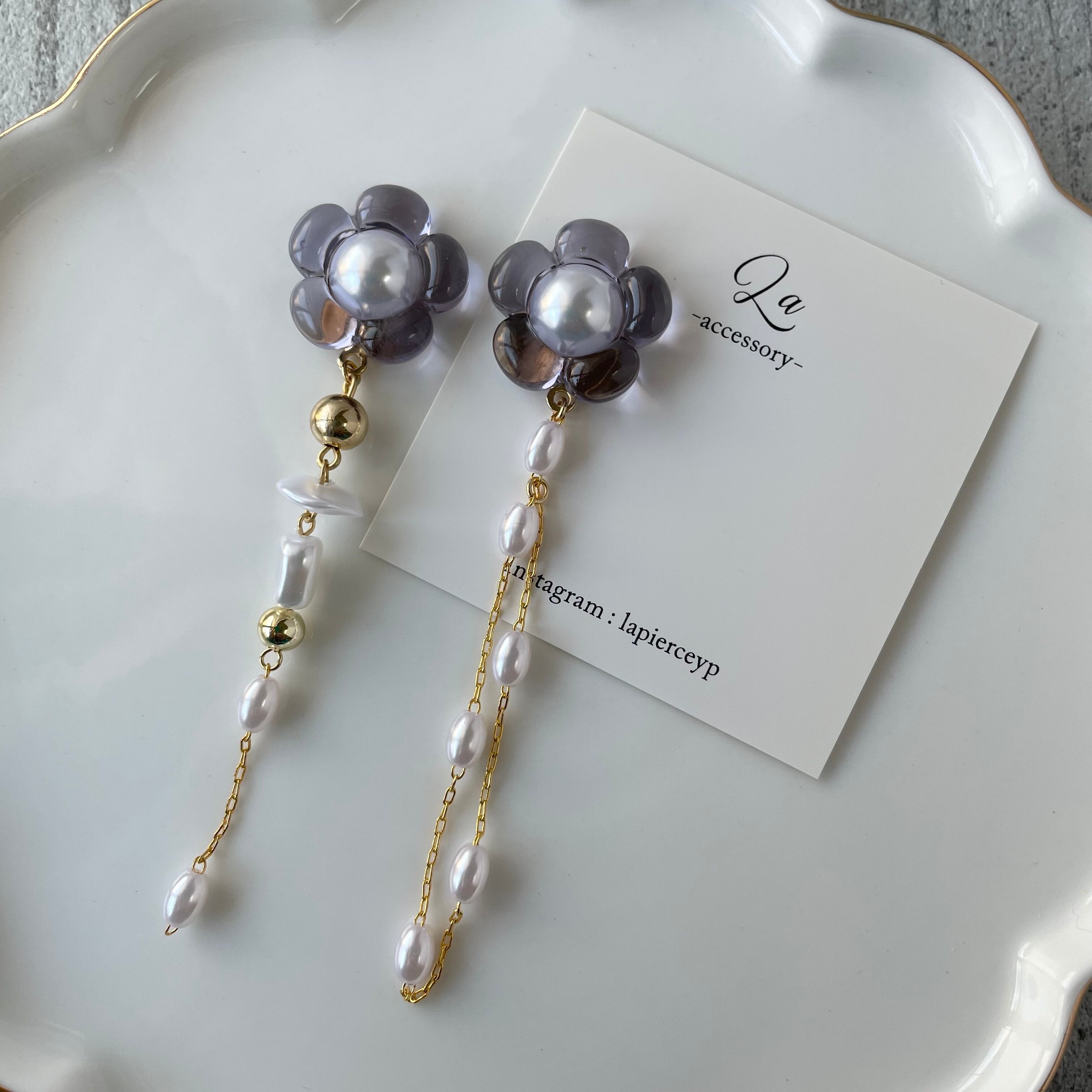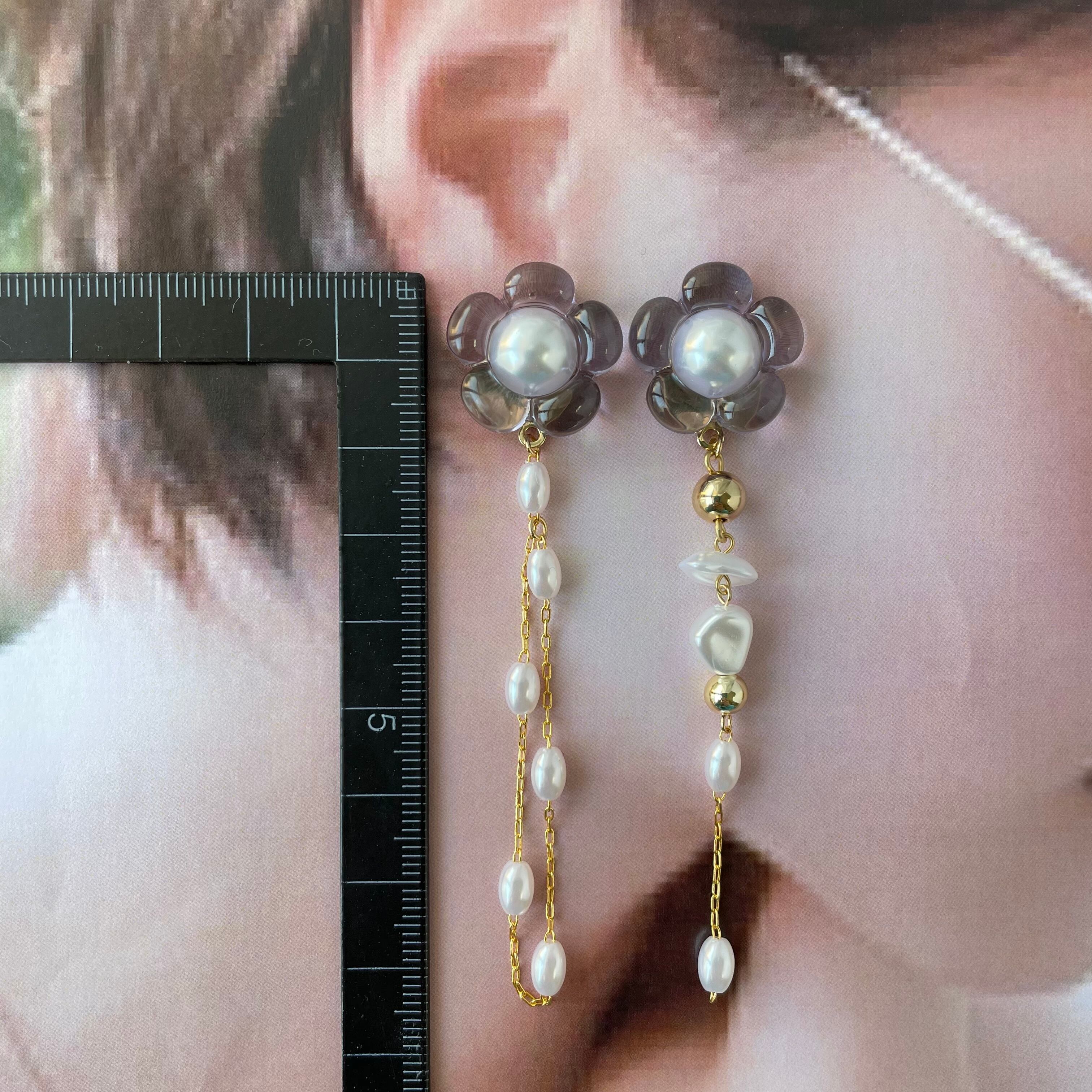 ちゅるんフラワーアシメ16kgチェーンピアス